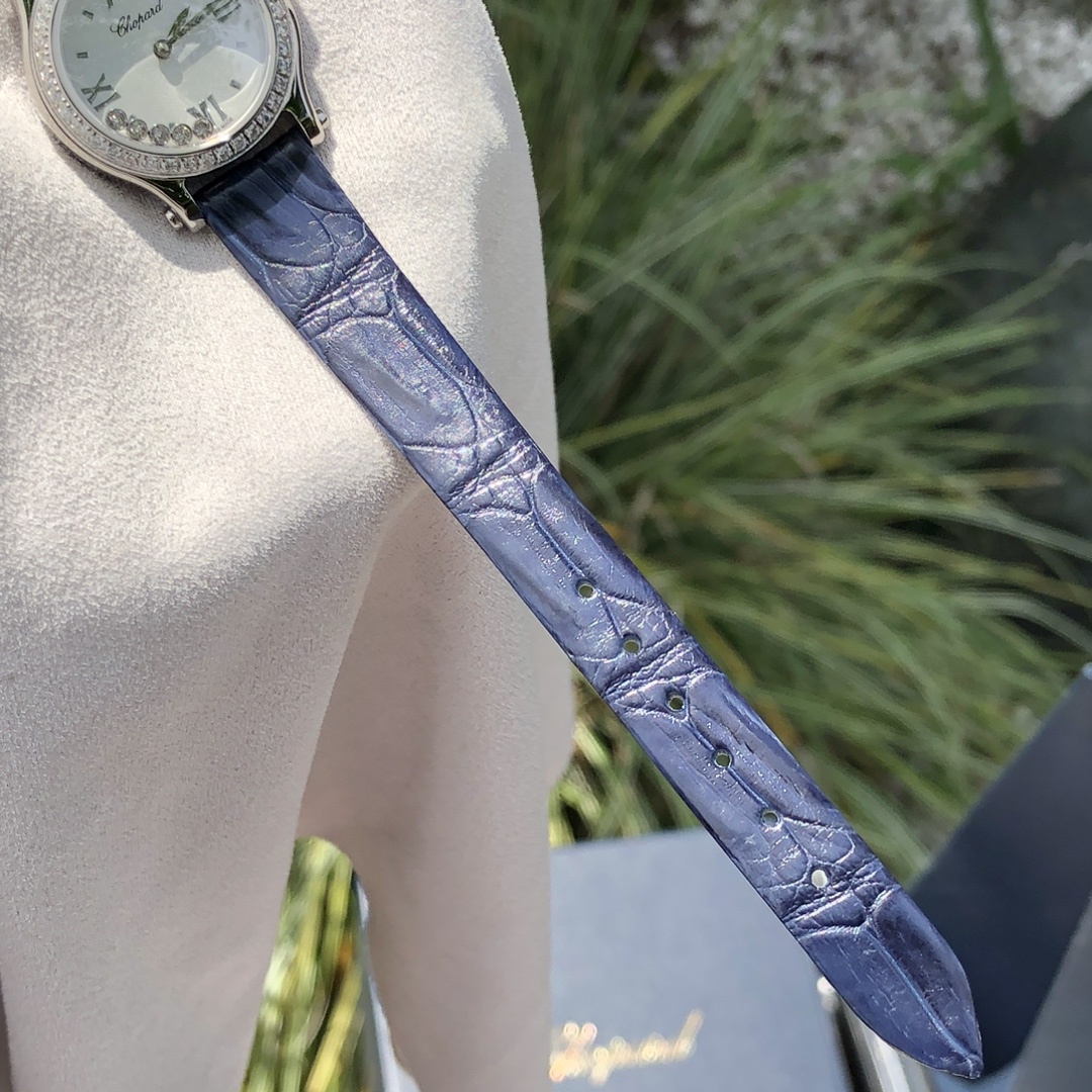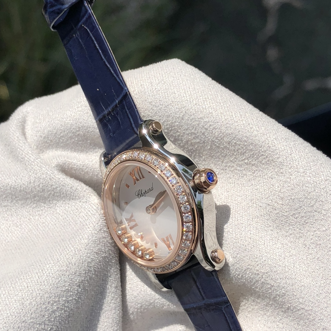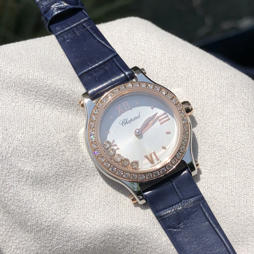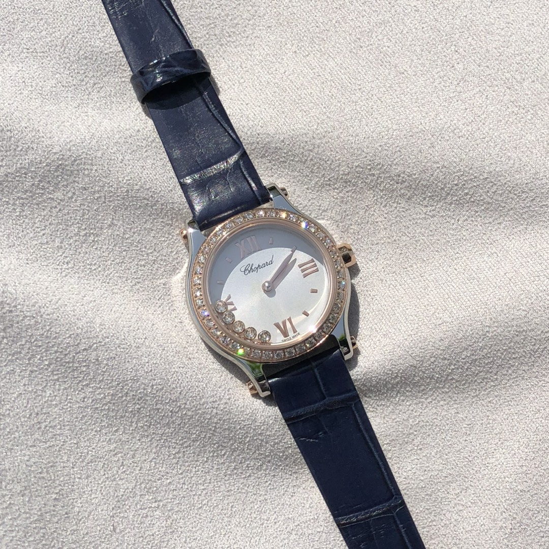 2024最新最新款萧邦Happy Sport 堪称制表艺术中的柔美风格杰作,灵动登场‼️ 萧邦在女装腕表方面,把这种创意发挥得尽善尽美.推出了令人无限喜悦的珠宝腕宝系列,以精巧可爱的设计,宣扬开心快乐。这款手表用25mm小巧的外形设计,更能体现设计理念的灵动魅力❗️ 我们这灵动的手表配上40颗1.4mm的闪耀钻石,那更加是清新和优雅的终极原则,配有省检证书,一表一码❗️ 进口的美洲鳄鱼皮,为了更好的部位裁切,损耗极大,一大张鳄鱼皮原材料,做不了几副表带❗️ 双层蓝宝石玻璃,耐磨耐刮,高透,是一块好表必不可少的❗️ 配有全套包装,送礼自带,不二之选‼️