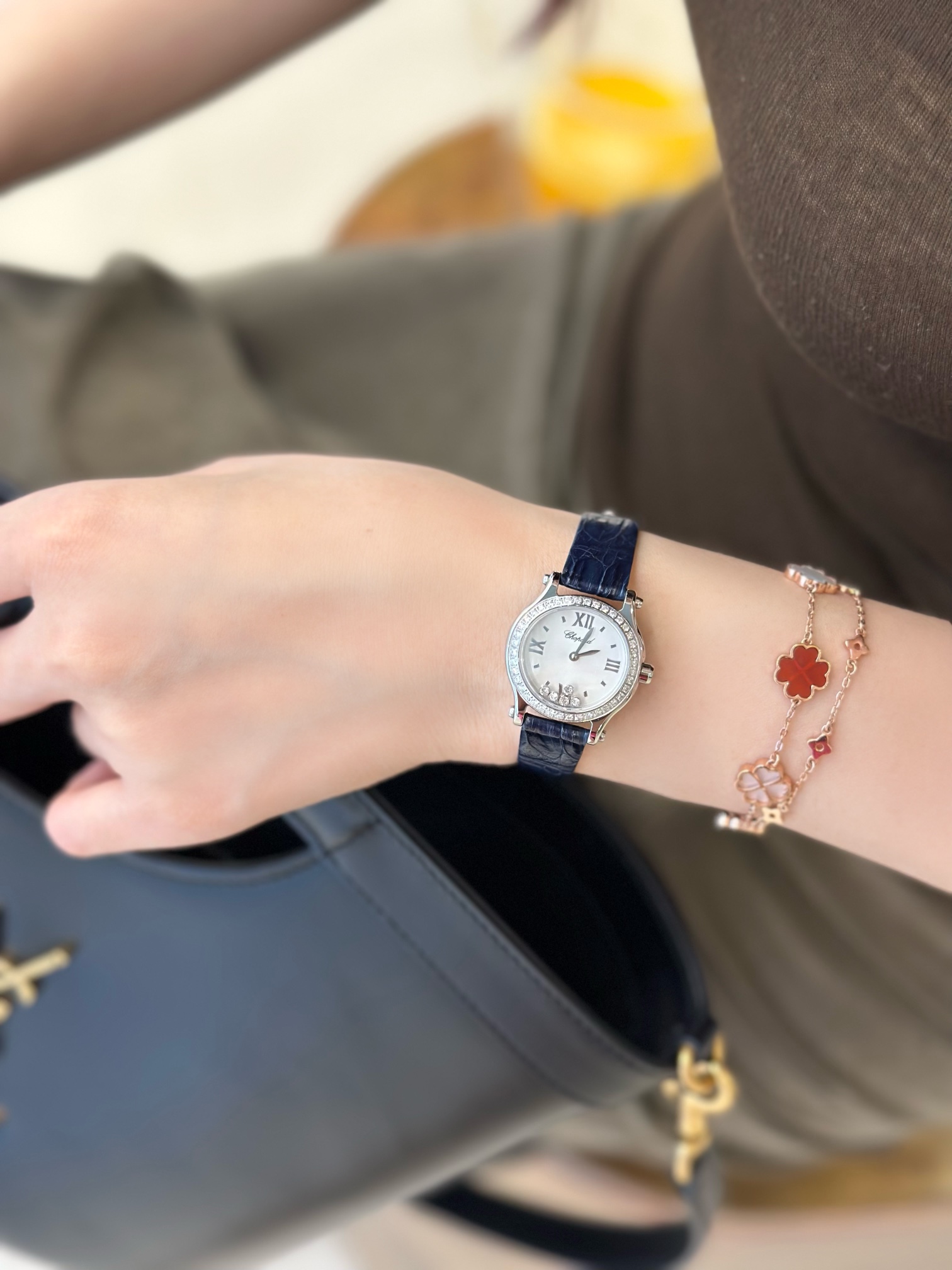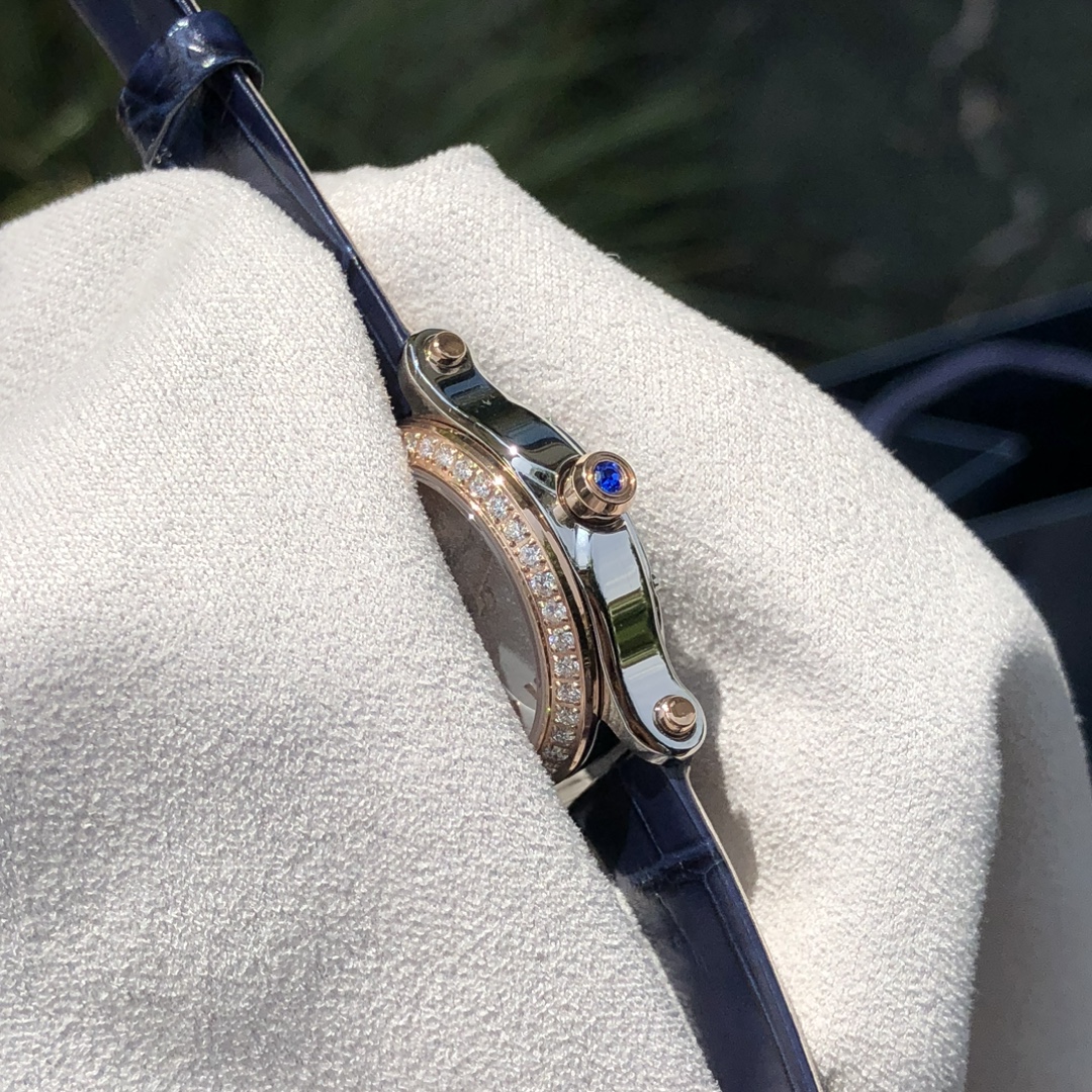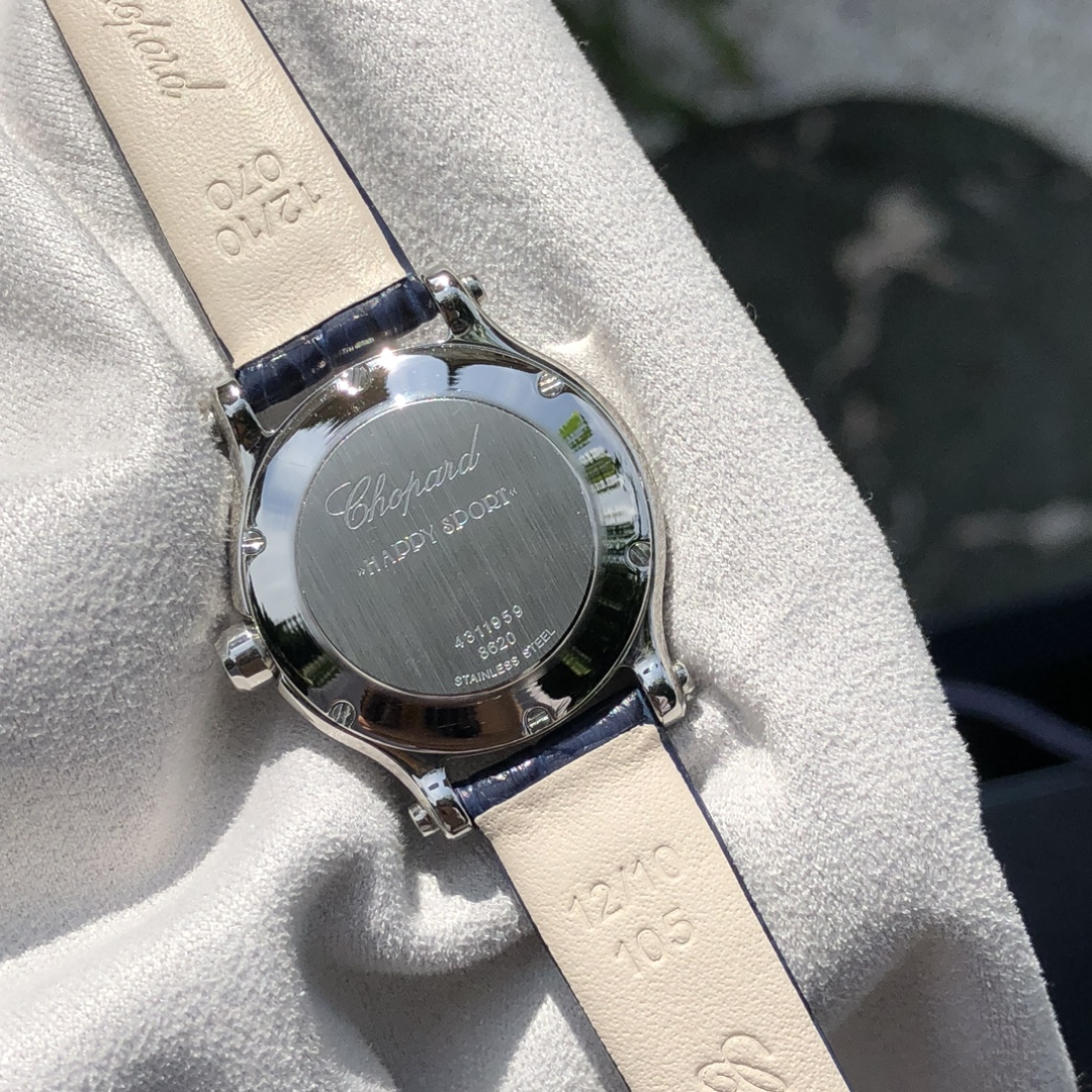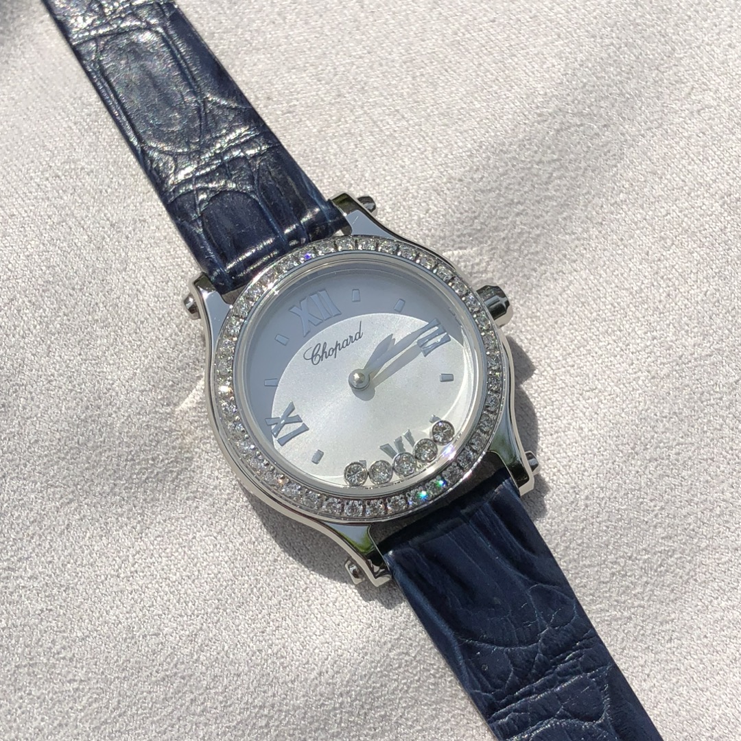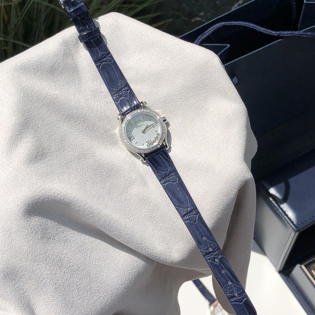 2024最新最新款萧邦Happy Sport 堪称制表艺术中的柔美风格杰作,灵动登场‼️ 萧邦在女装腕表方面,把这种创意发挥得尽善尽美.推出了令人无限喜悦的珠宝腕宝系列,以精巧可爱的设计,宣扬开心快乐。这款手表用25mm小巧的外形设计,更能体现设计理念的灵动魅力❗️ 我们这灵动的手表配上40颗1.4mm的闪耀钻石,那更加是清新和优雅的终极原则,配有省检证书,一表一码❗️ 进口的美洲鳄鱼皮,为了更好的部位裁切,损耗极大,一大张鳄鱼皮原材料,做不了几副表带❗️ 双层蓝宝石玻璃,耐磨耐刮,高透,是一块好表必不可少的❗️ 配有全套包装,送礼自带,不二之选‼️