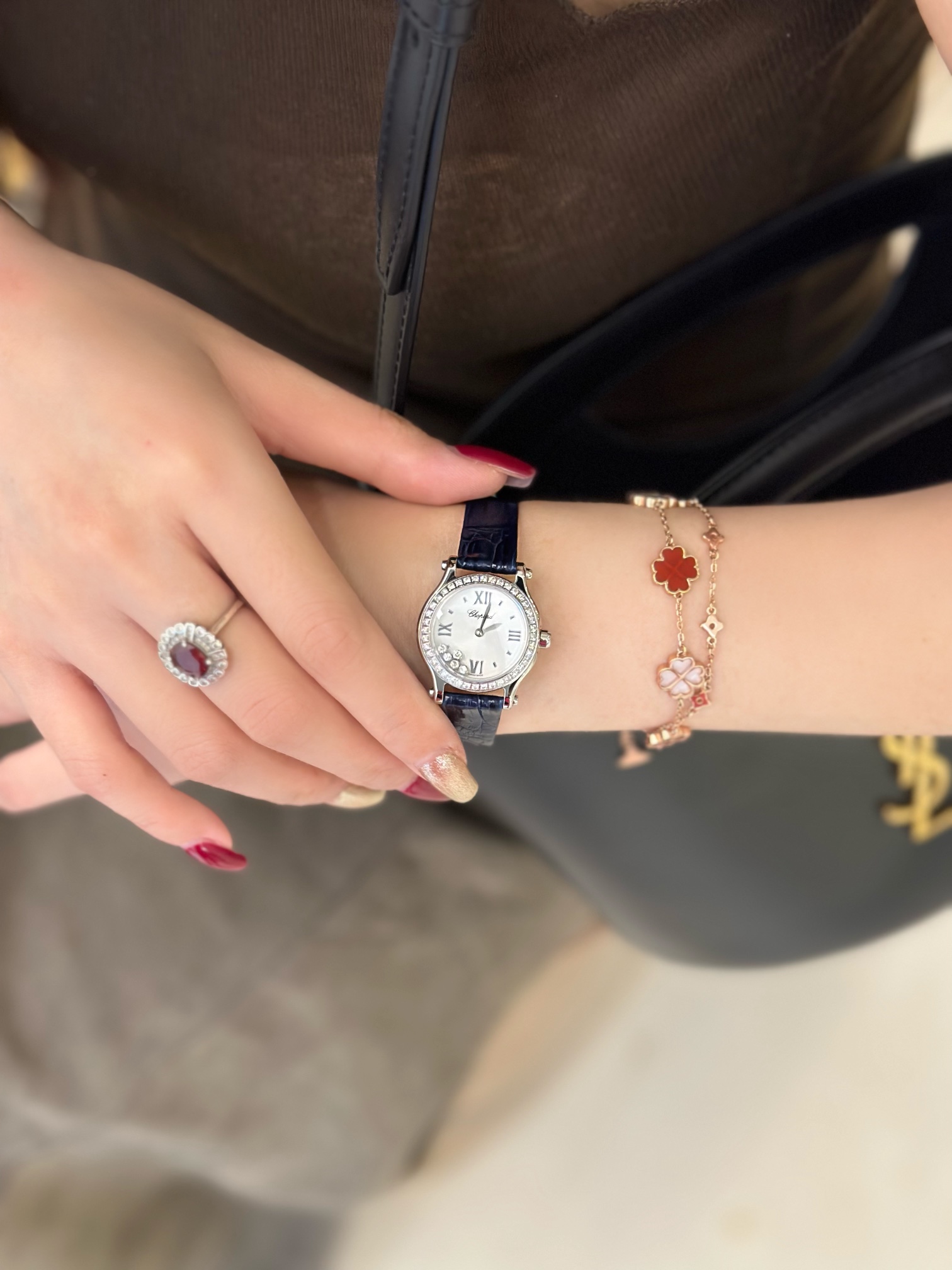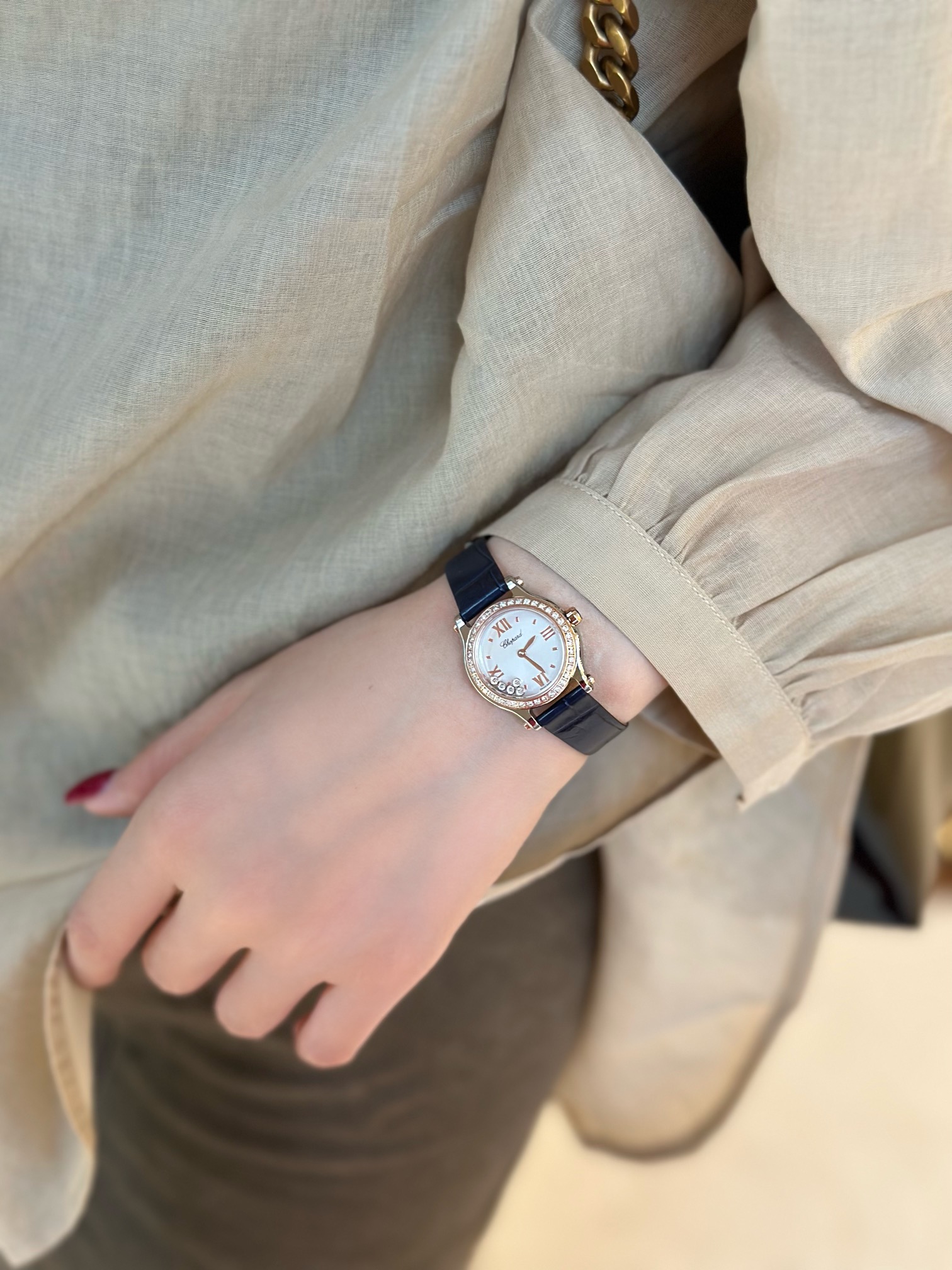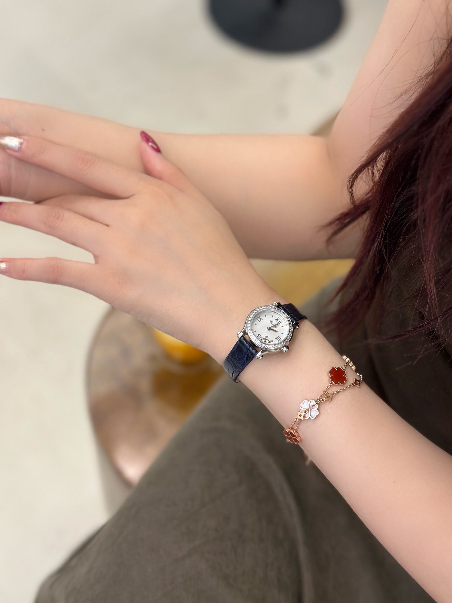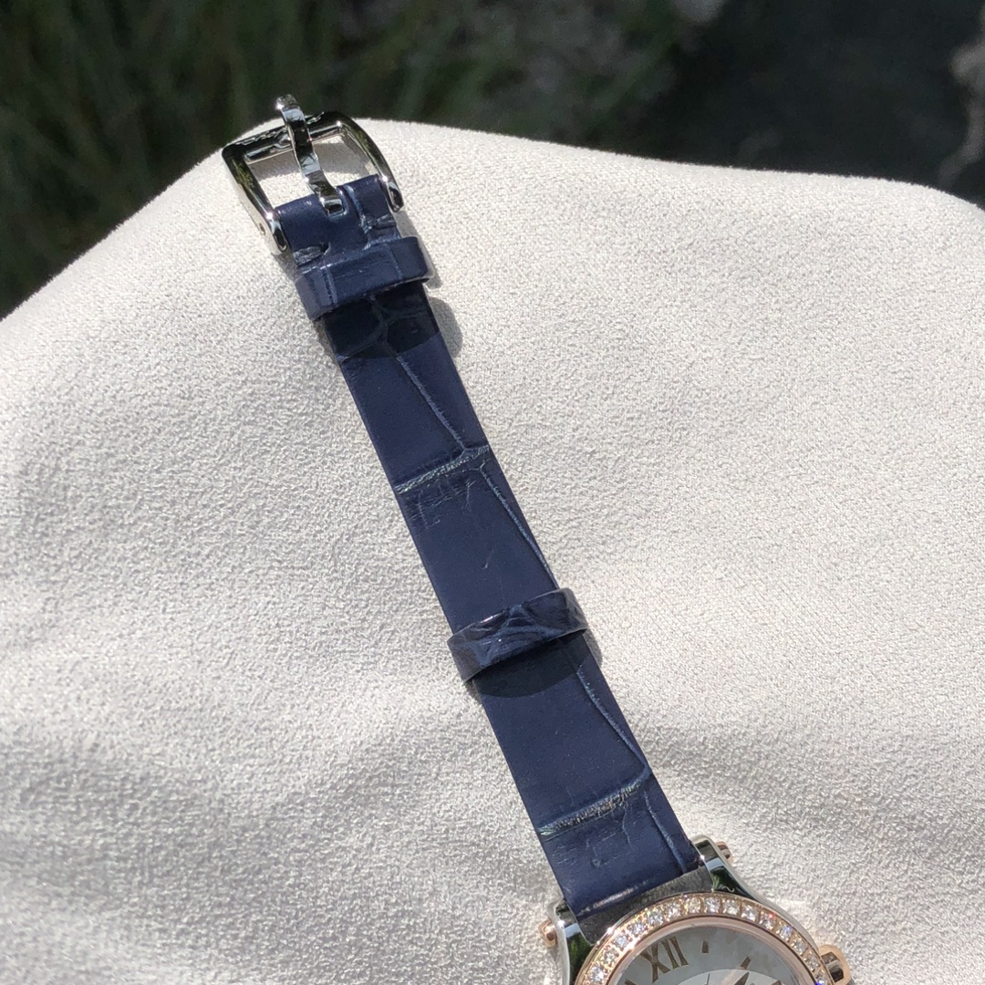 2024最新最新款萧邦Happy Sport 堪称制表艺术中的柔美风格杰作,灵动登场‼️ 萧邦在女装腕表方面,把这种创意发挥得尽善尽美.推出了令人无限喜悦的珠宝腕宝系列,以精巧可爱的设计,宣扬开心快乐。这款手表用25mm小巧的外形设计,更能体现设计理念的灵动魅力❗️ 我们这灵动的手表配上40颗1.4mm的闪耀钻石,那更加是清新和优雅的终极原则,配有省检证书,一表一码❗️ 进口的美洲鳄鱼皮,为了更好的部位裁切,损耗极大,一大张鳄鱼皮原材料,做不了几副表带❗️ 双层蓝宝石玻璃,耐磨耐刮,高透,是一块好表必不可少的❗️ 配有全套包装,送礼自带,不二之选‼️