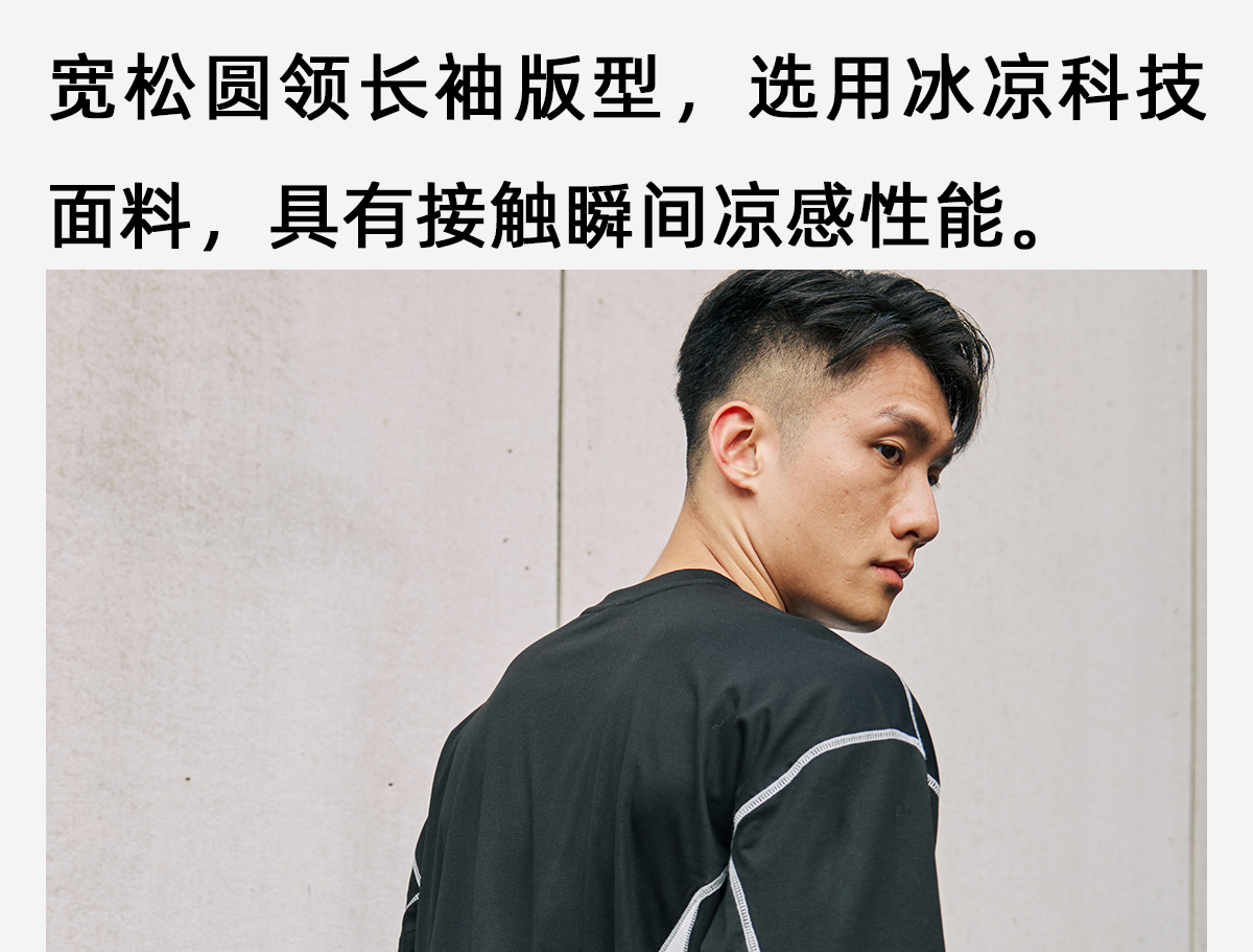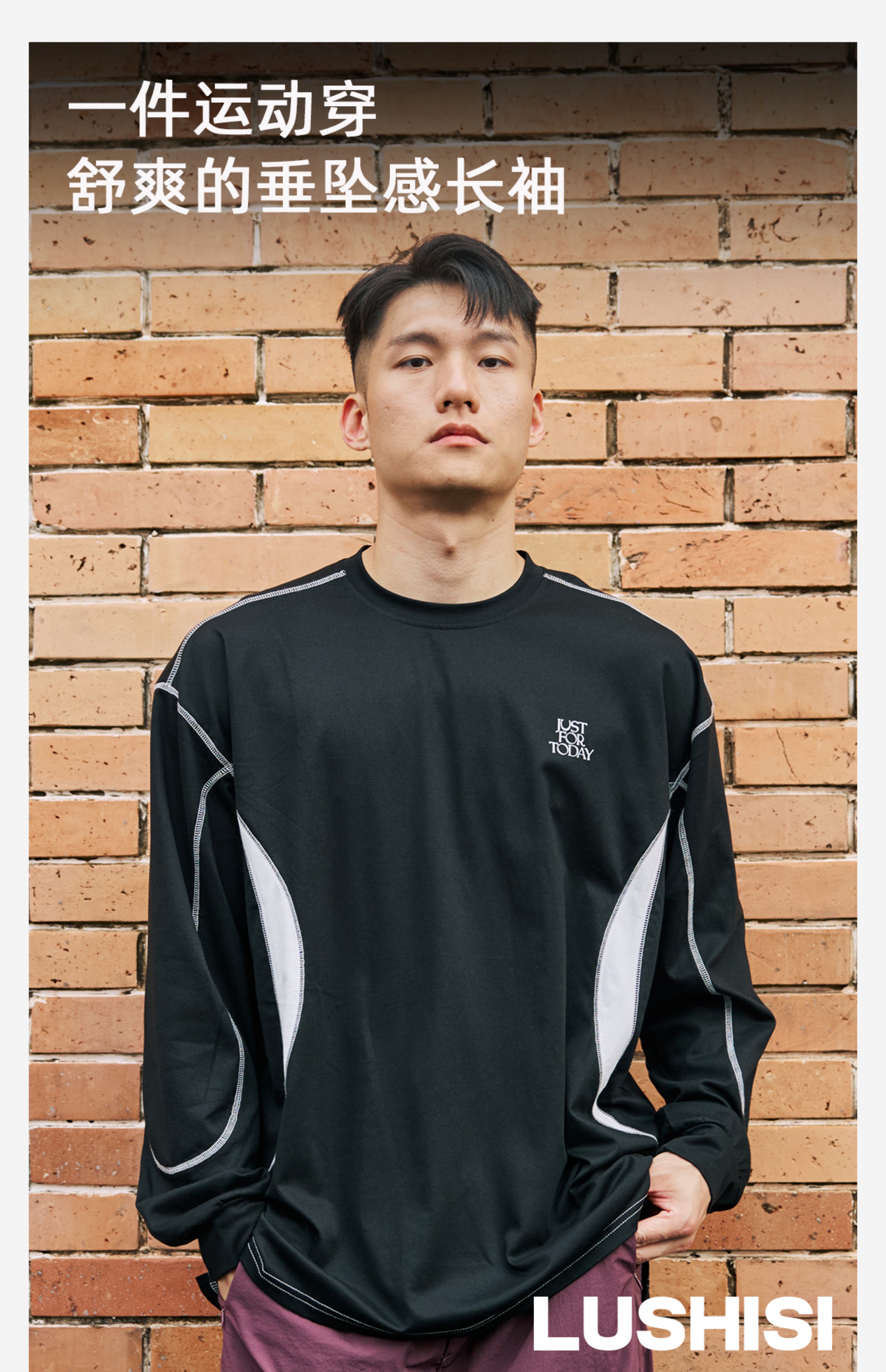 录士LUSHISI曜蚀主题拼接长绒棉凉感长袖男女款拼接插肩运动长袖