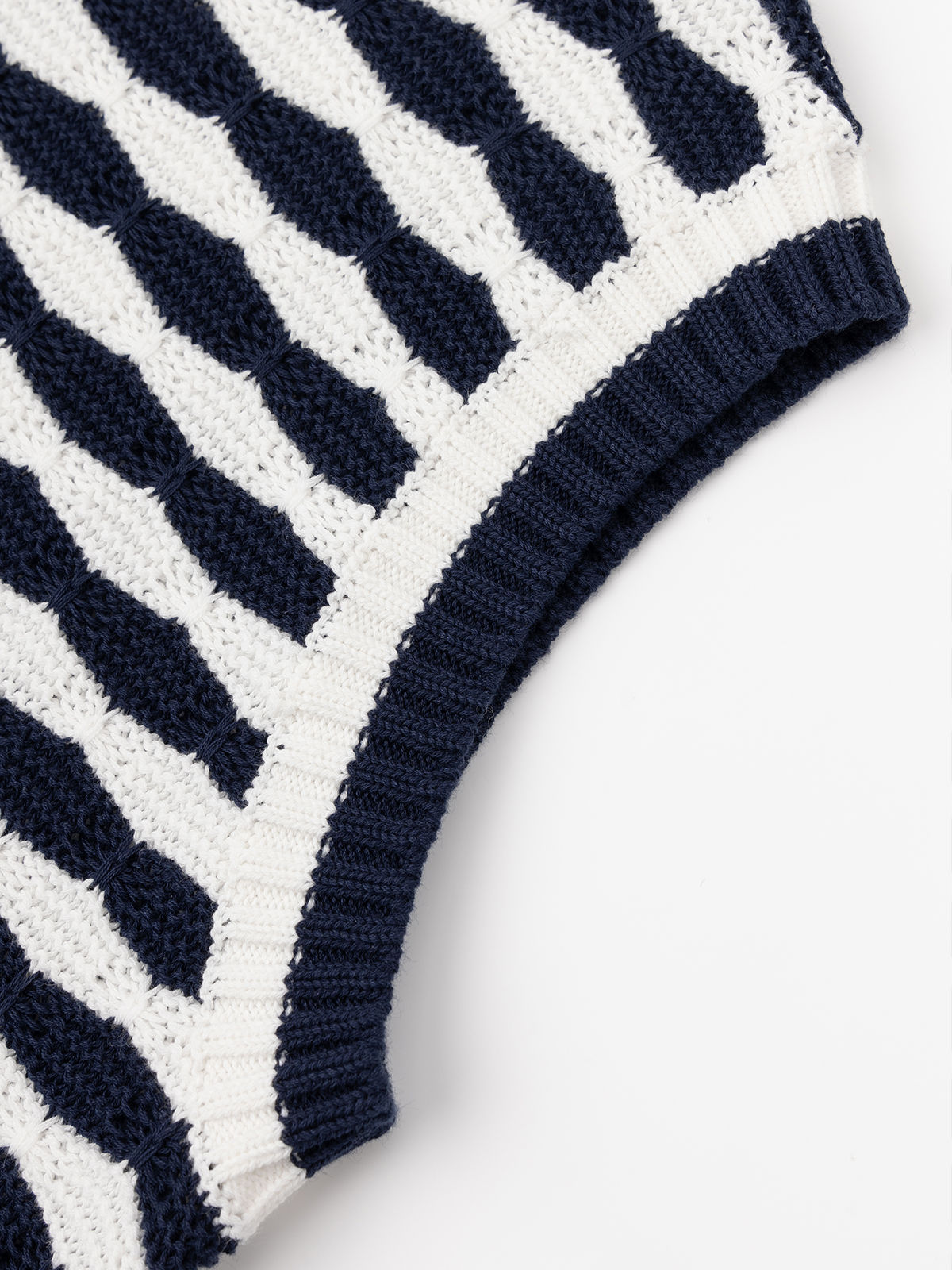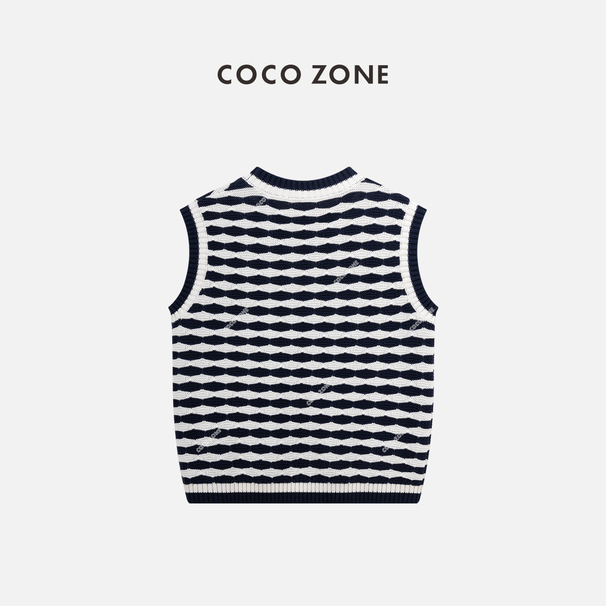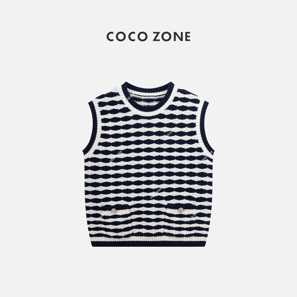 COCO ZONE 撞色圆领背心毛针织衫时尚条纹无袖毛衣CC1A0465