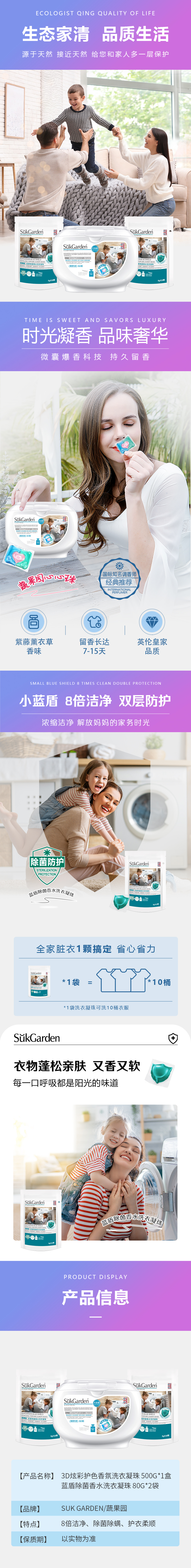 【绮】蔬果园3D洗衣凝珠(浓缩强效型)-10g*50颗*1盒+蔬果园蓝盾蓝风铃香水洗衣凝珠-8g*10颗(袋装)*2袋