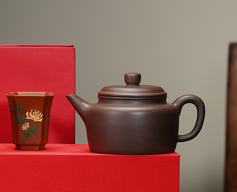 其明亮的色泽和细腻的手感,补充了紫泥壶的沉稳,增添了一抹温暖的色彩。