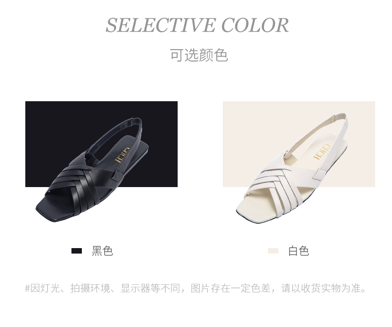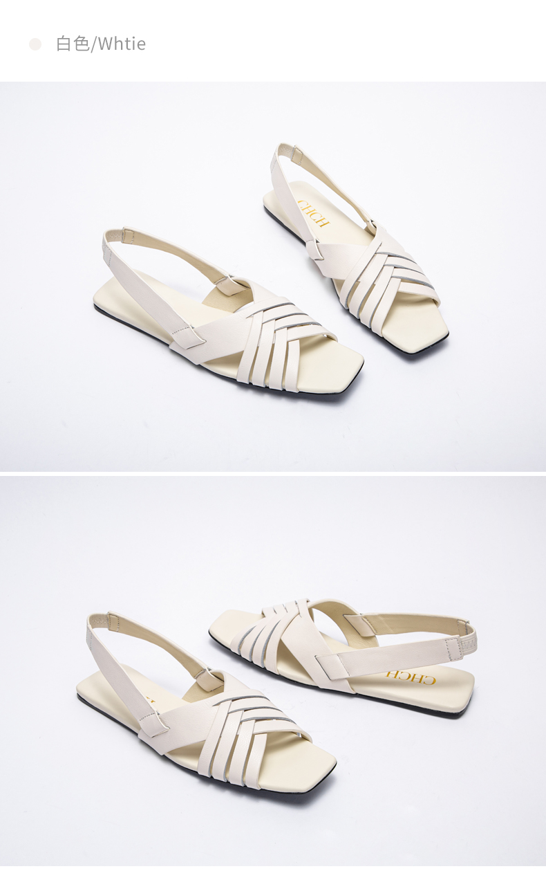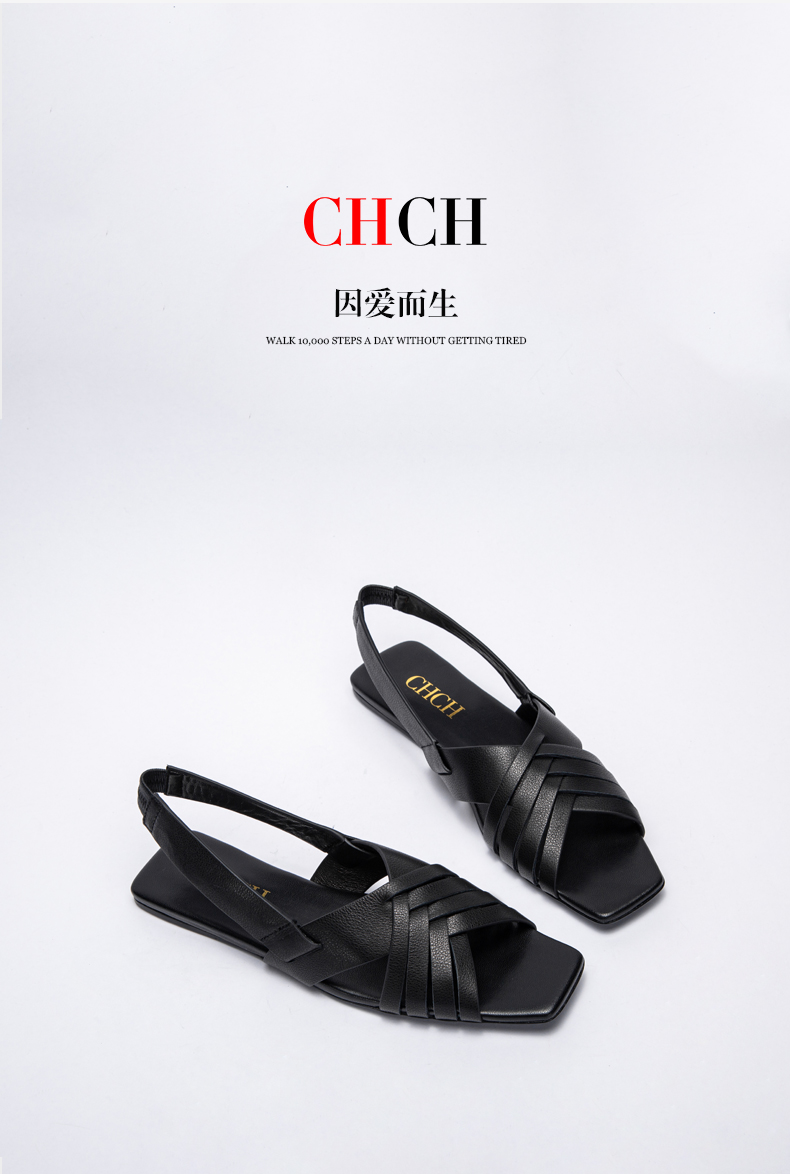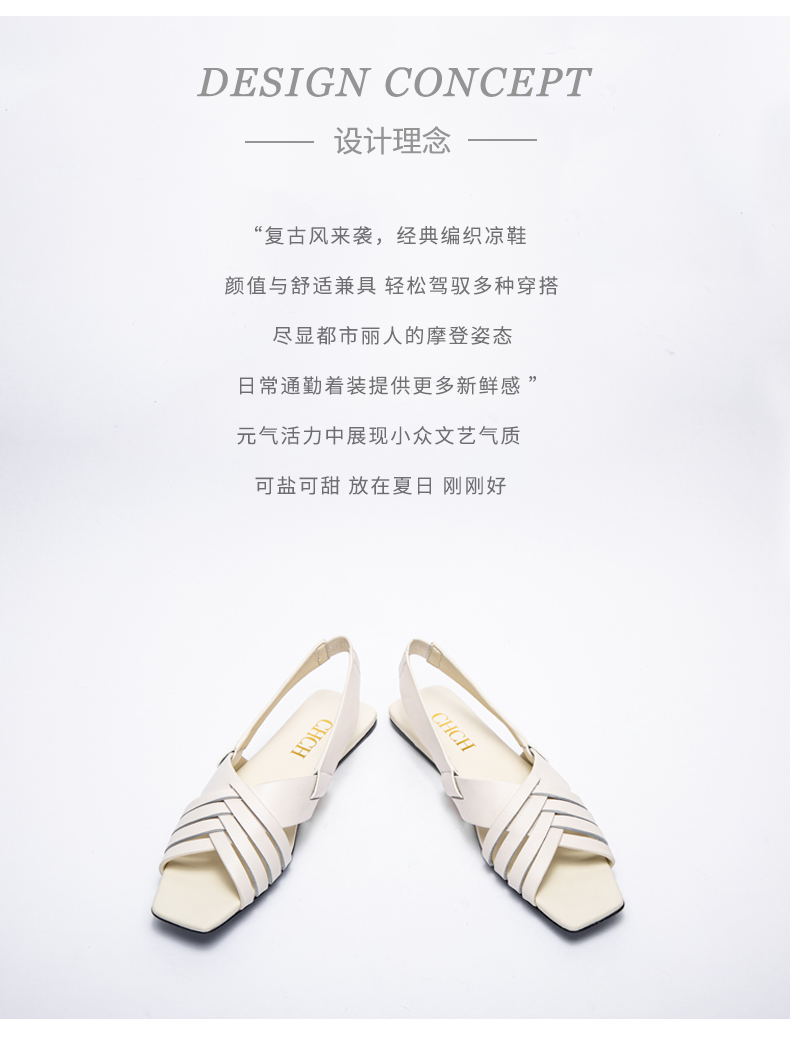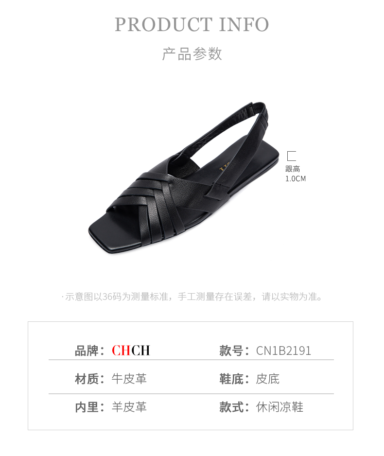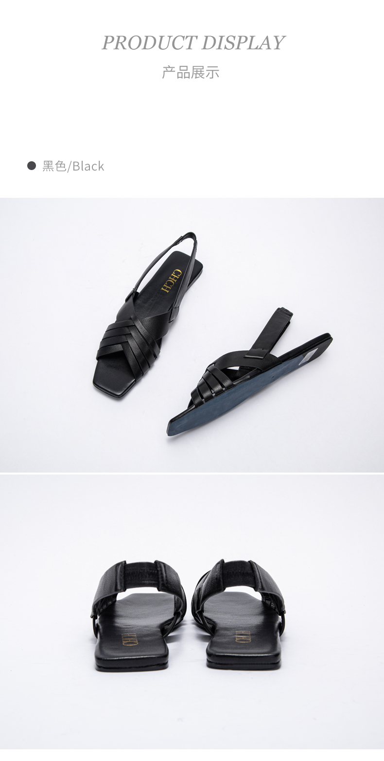 CHCH编织凉鞋女2024夏季新款真皮露趾方头经典缕空罗马鞋女鞋