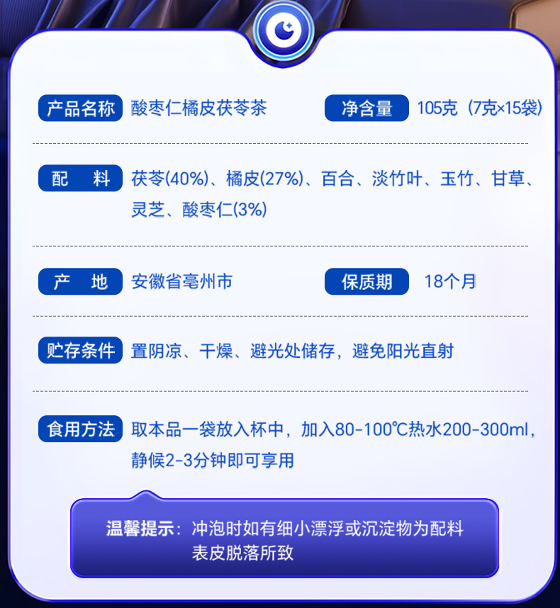 雷允上酸枣仁橘皮茯苓茶105g(7g*15袋)/盒