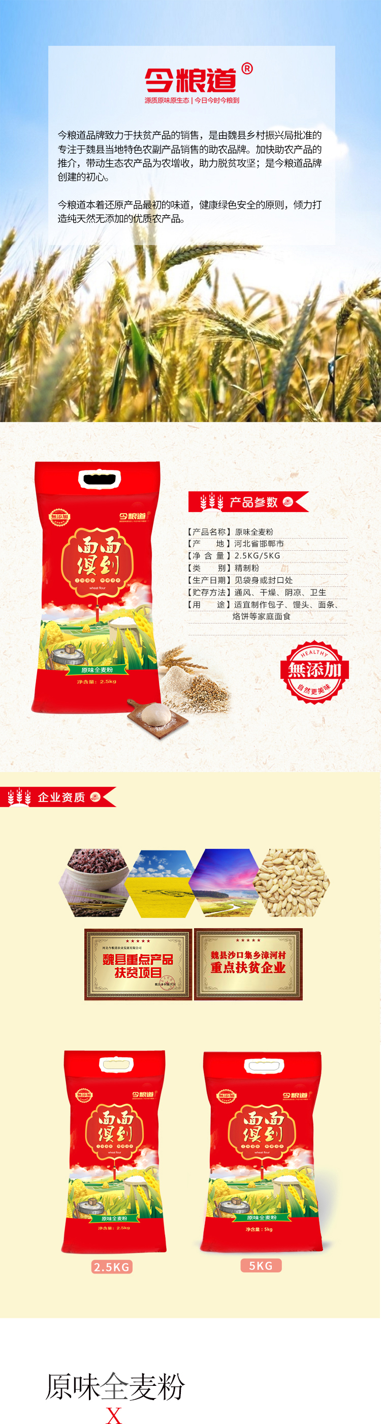 今粮道 帮扶助农2.5kg原味麦粉 面面俱到JLD001