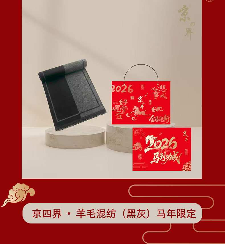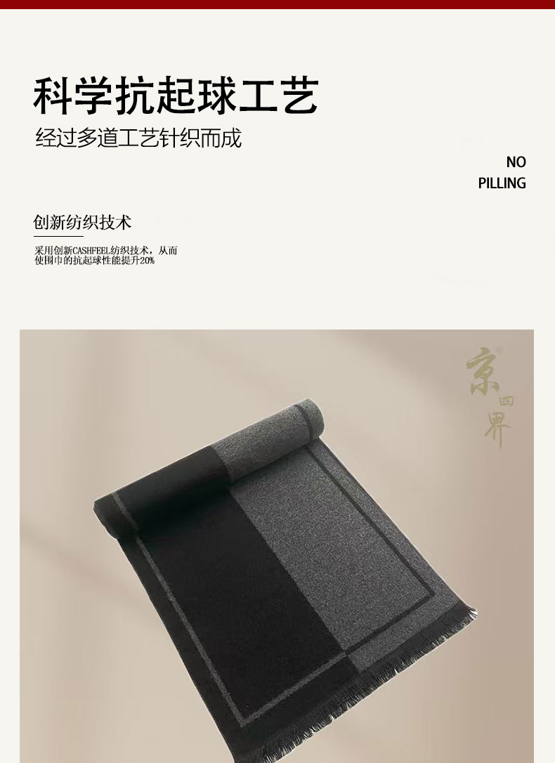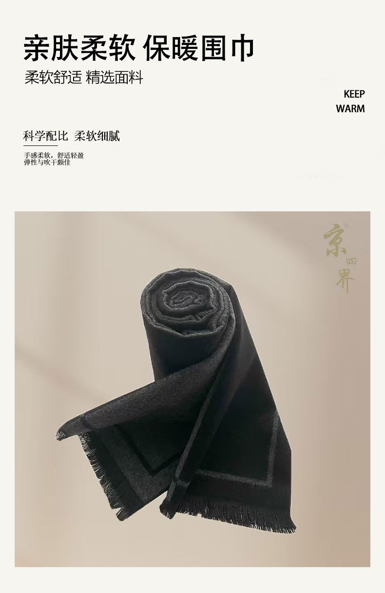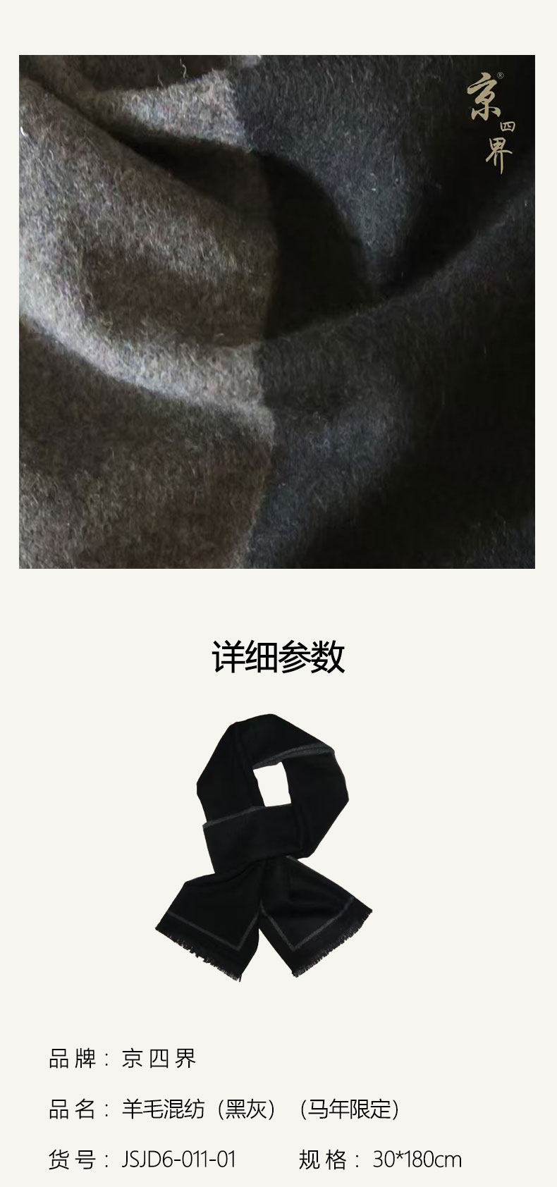 京四界 · 羊毛混纺(黑灰一半) 围巾 JSJD6-011-01