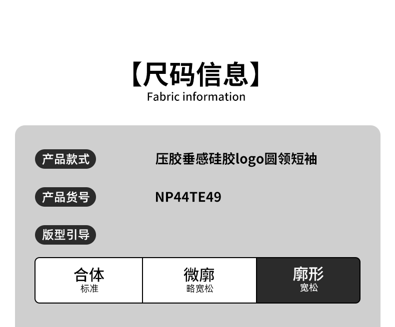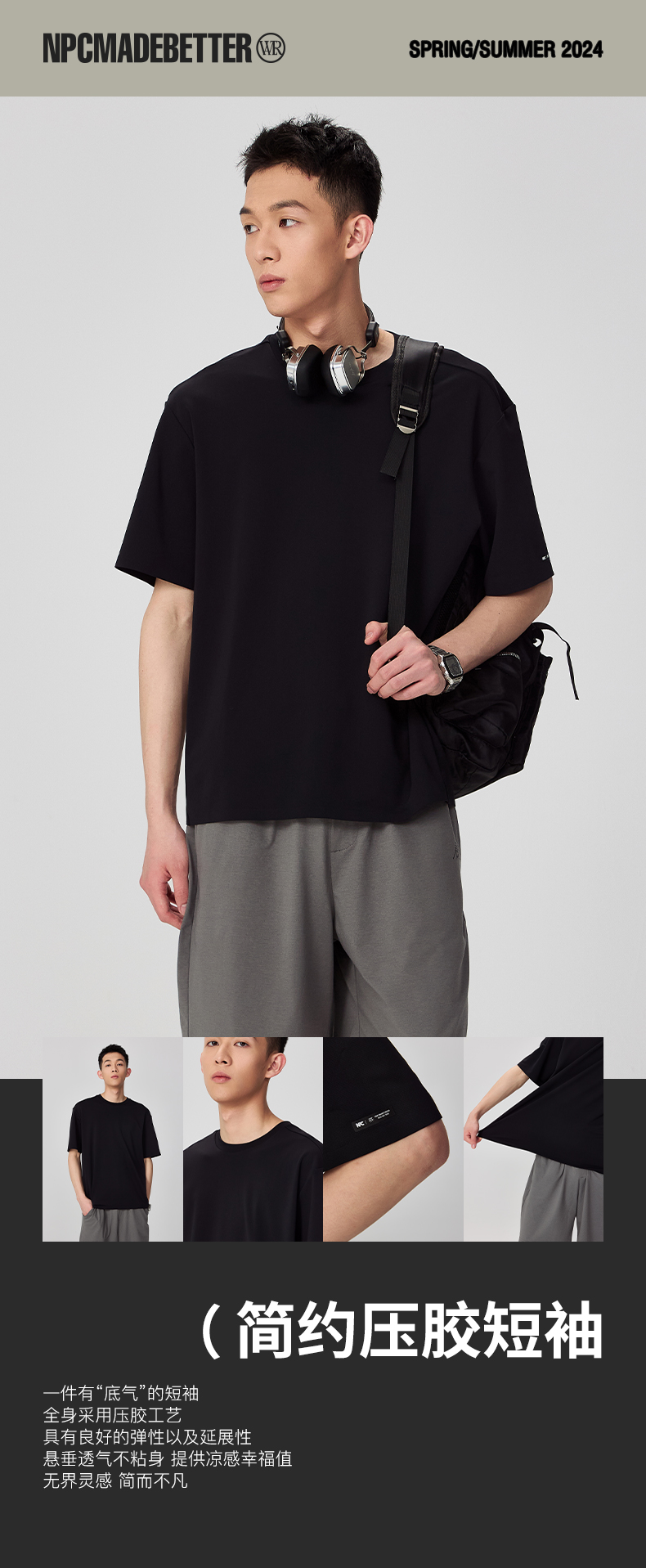 NPC潮牌全衣压胶宽松舒适圆领T恤男潮流硅胶logo户外NP44TE49