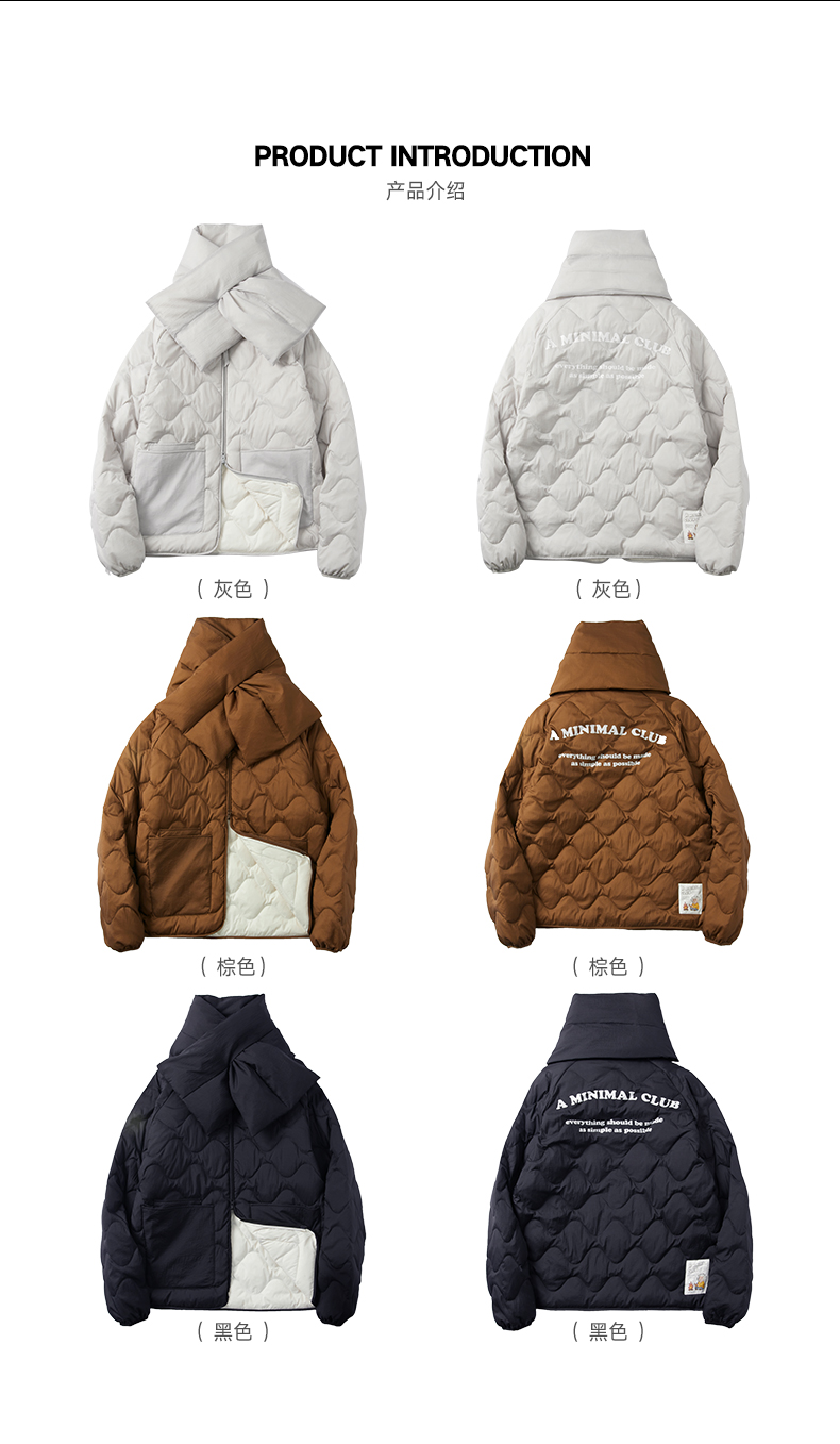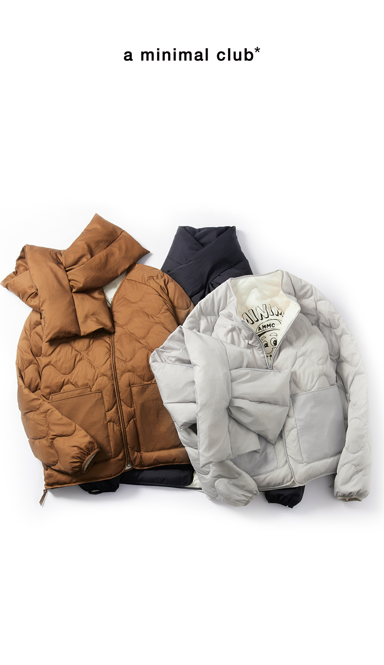 a minimal club复古立体葫芦绗缝90鸭绒羽绒服配围巾AM5BDJ18