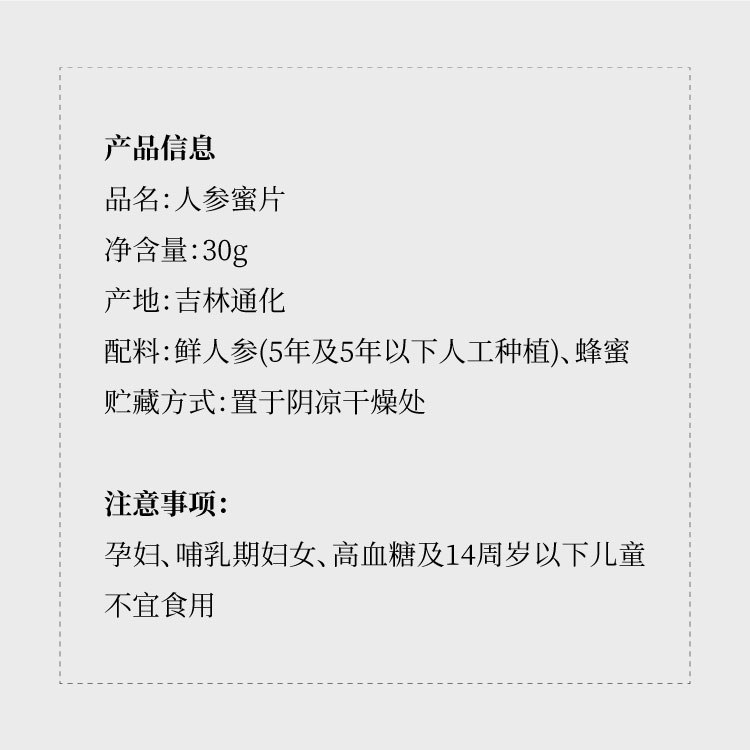 「鲜参蜜片」冷浸工艺 一年仅有一批 每盒30片左右