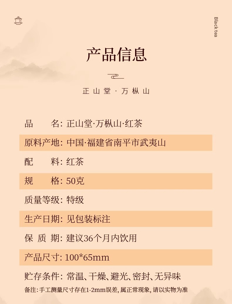 正山堂 万枞山 特级红茶正宗桐木关高山野茶野生茶叶罐装送礼50g