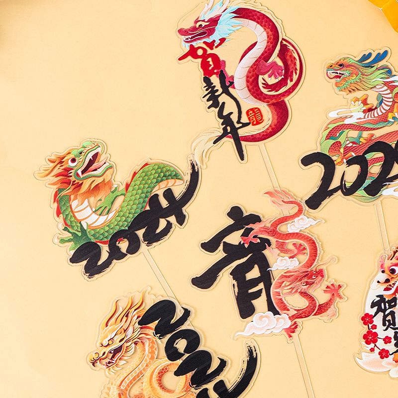 龙年大吉蛋糕装饰品摆件中国风飞龙在天插件贺新年亚克力插牌