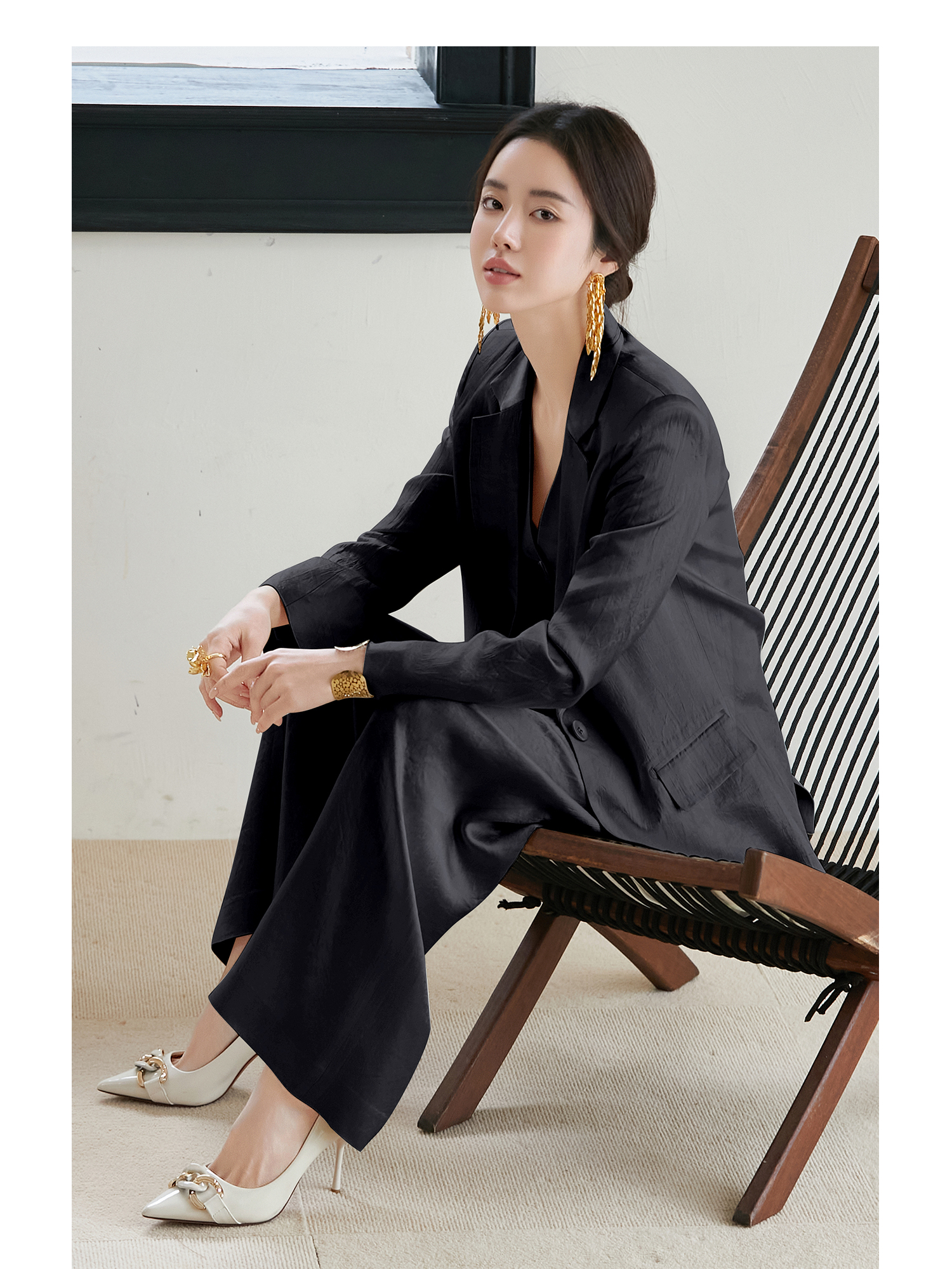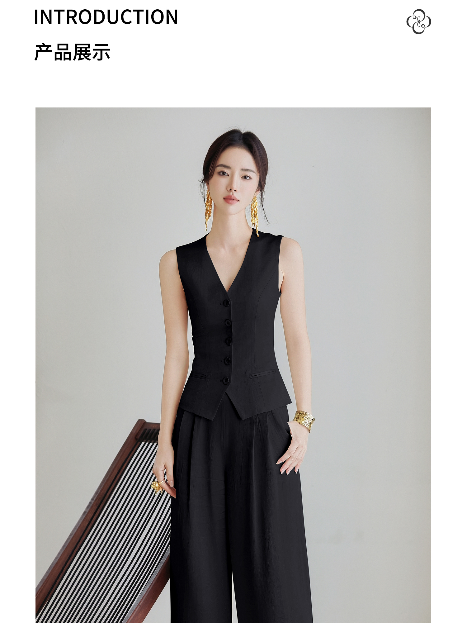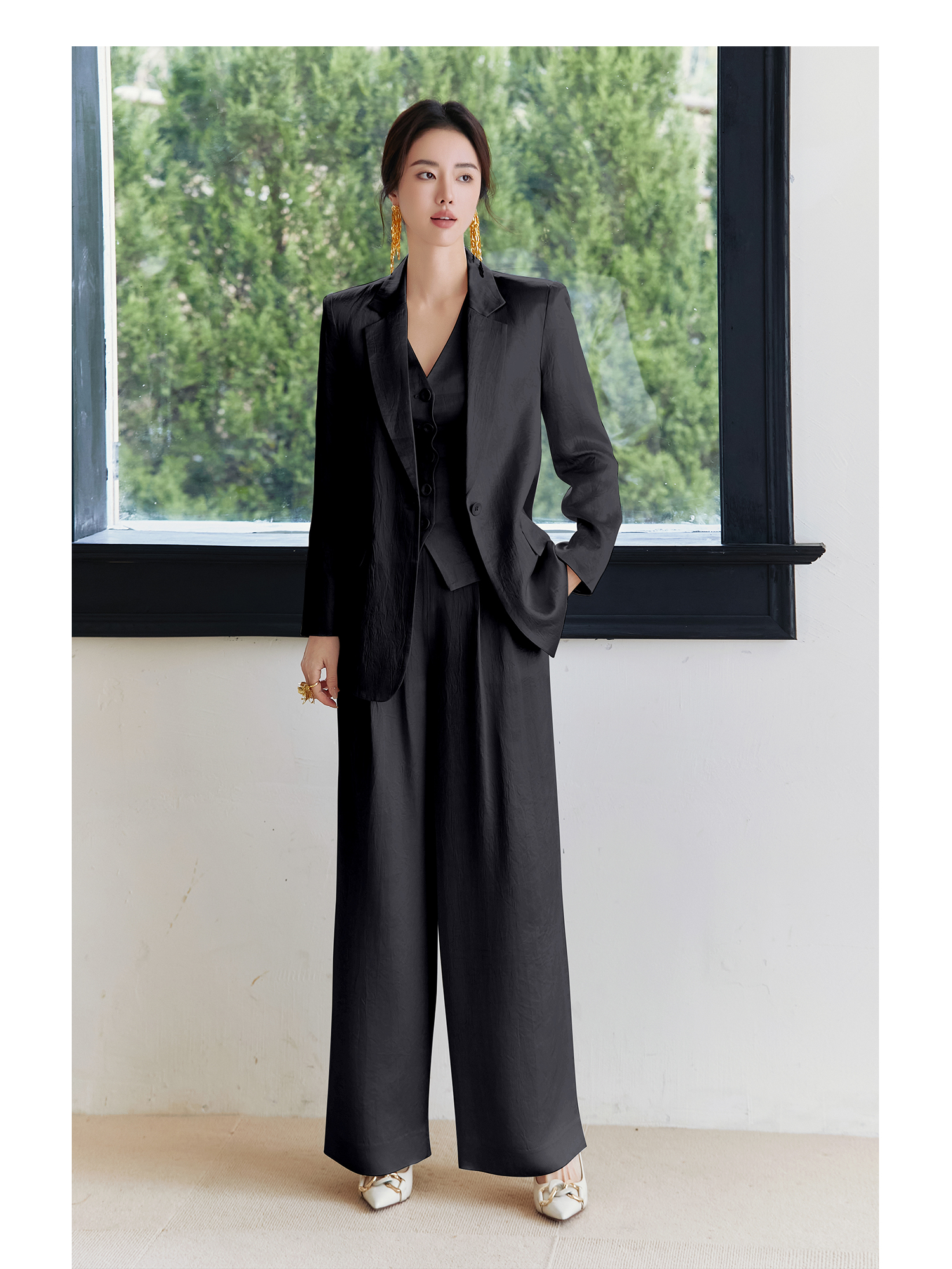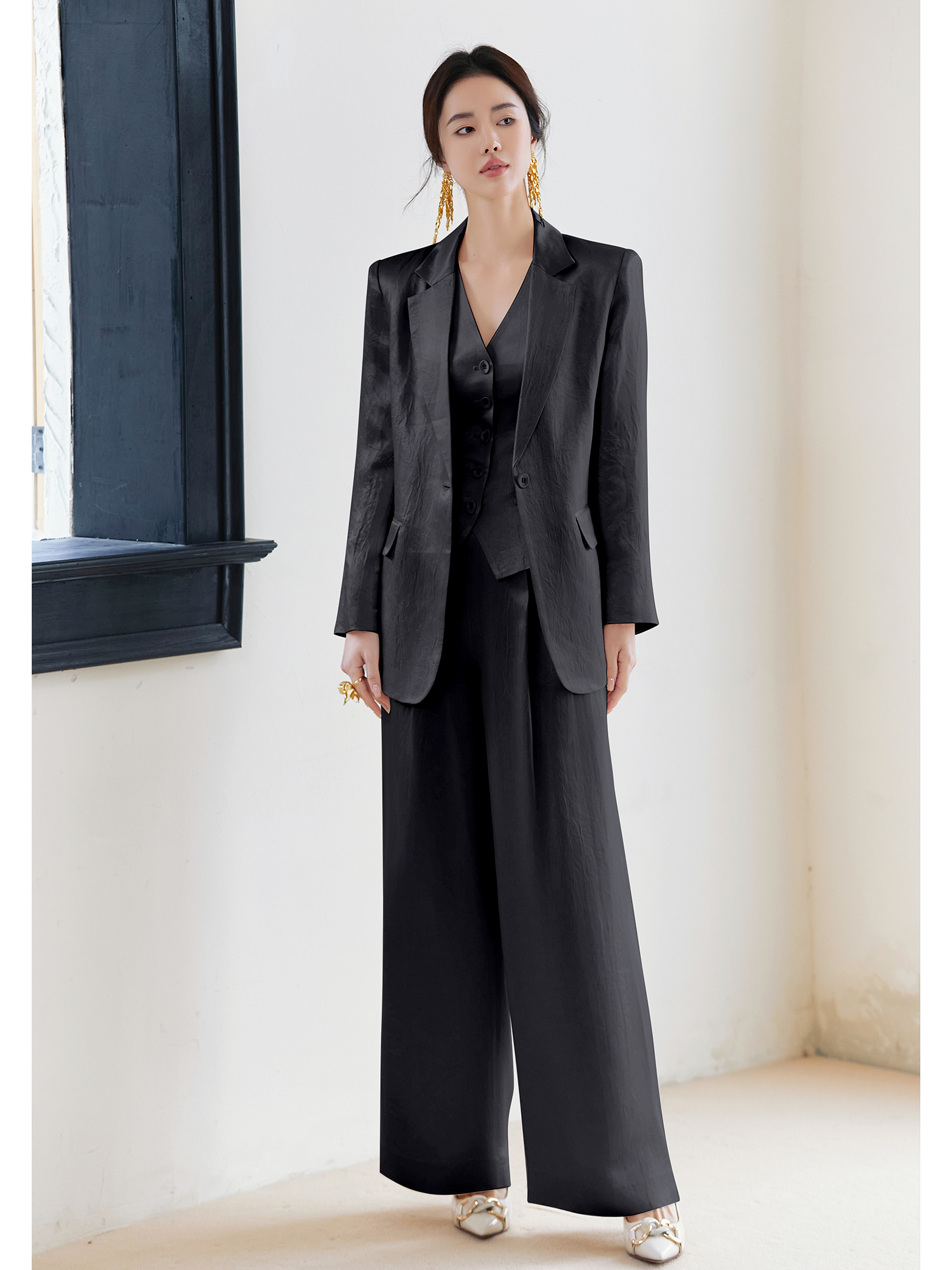 FUYAO扶摇 醋酸提花时尚套装女秋冬休闲宽版西装外套马甲三件套