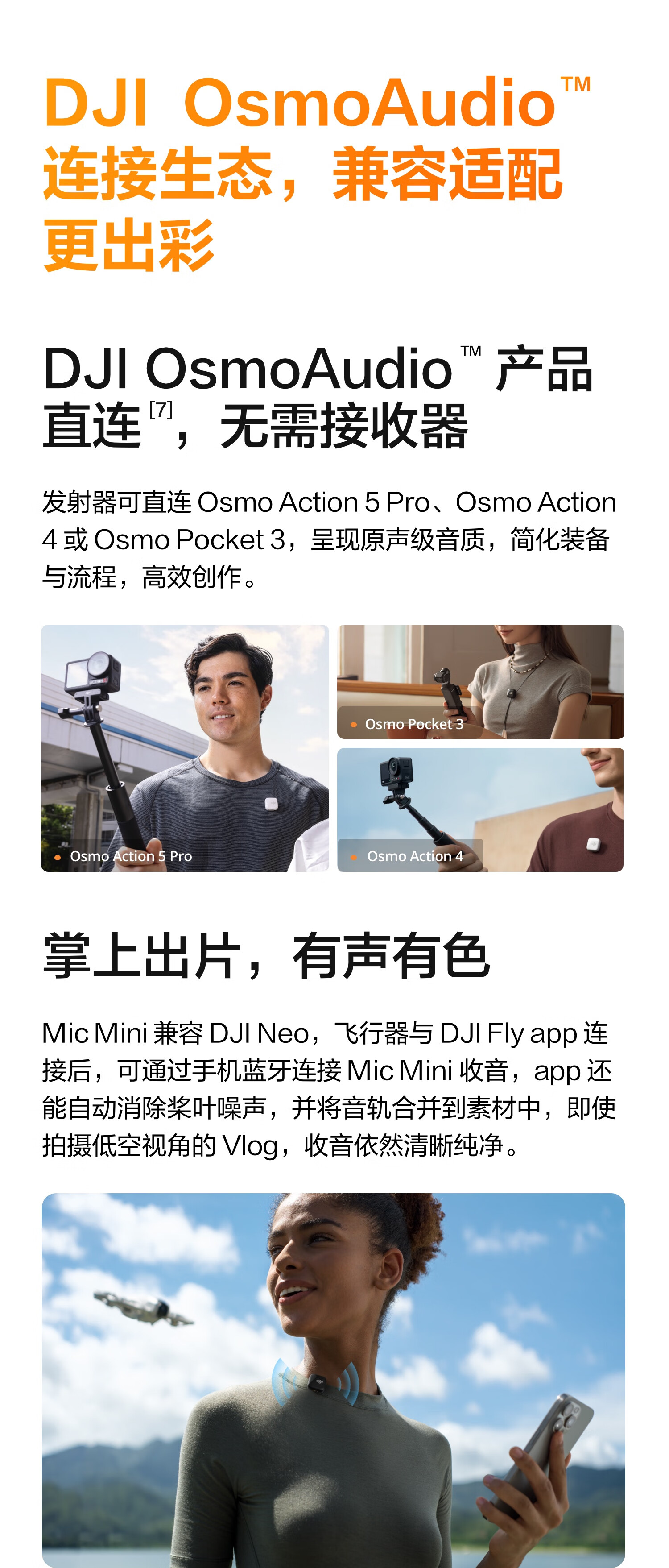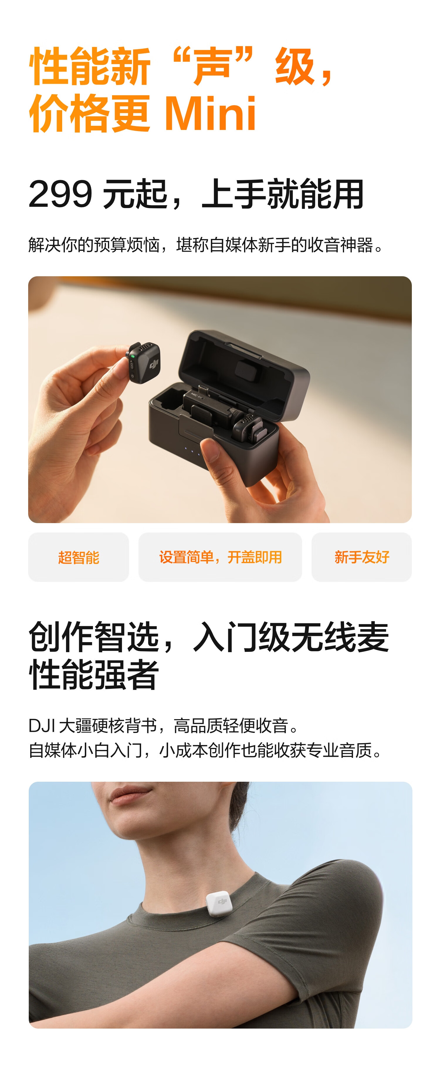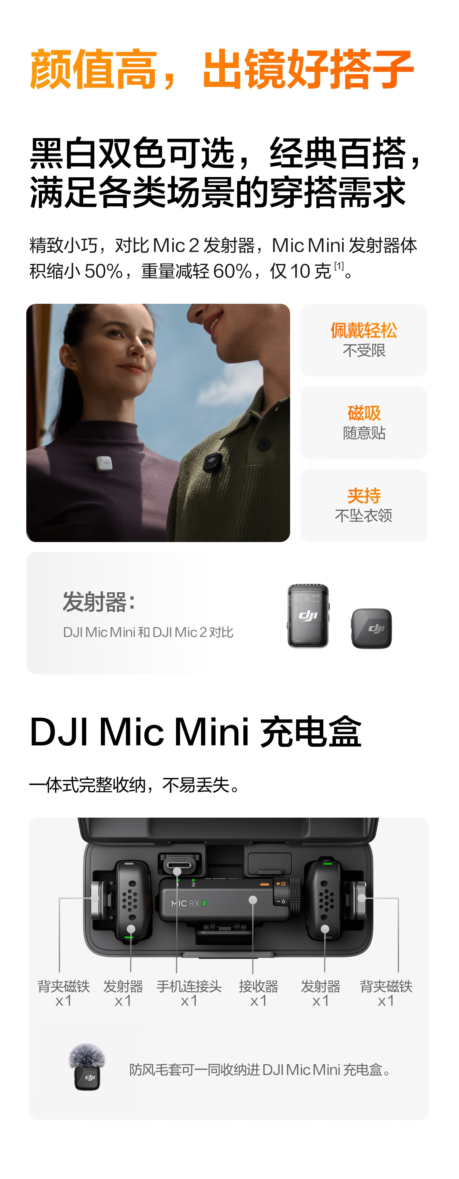 DJI Mic Mini 迷你无线高品音质降噪领夹麦克风户外采访直播vlog手机相机收音麦