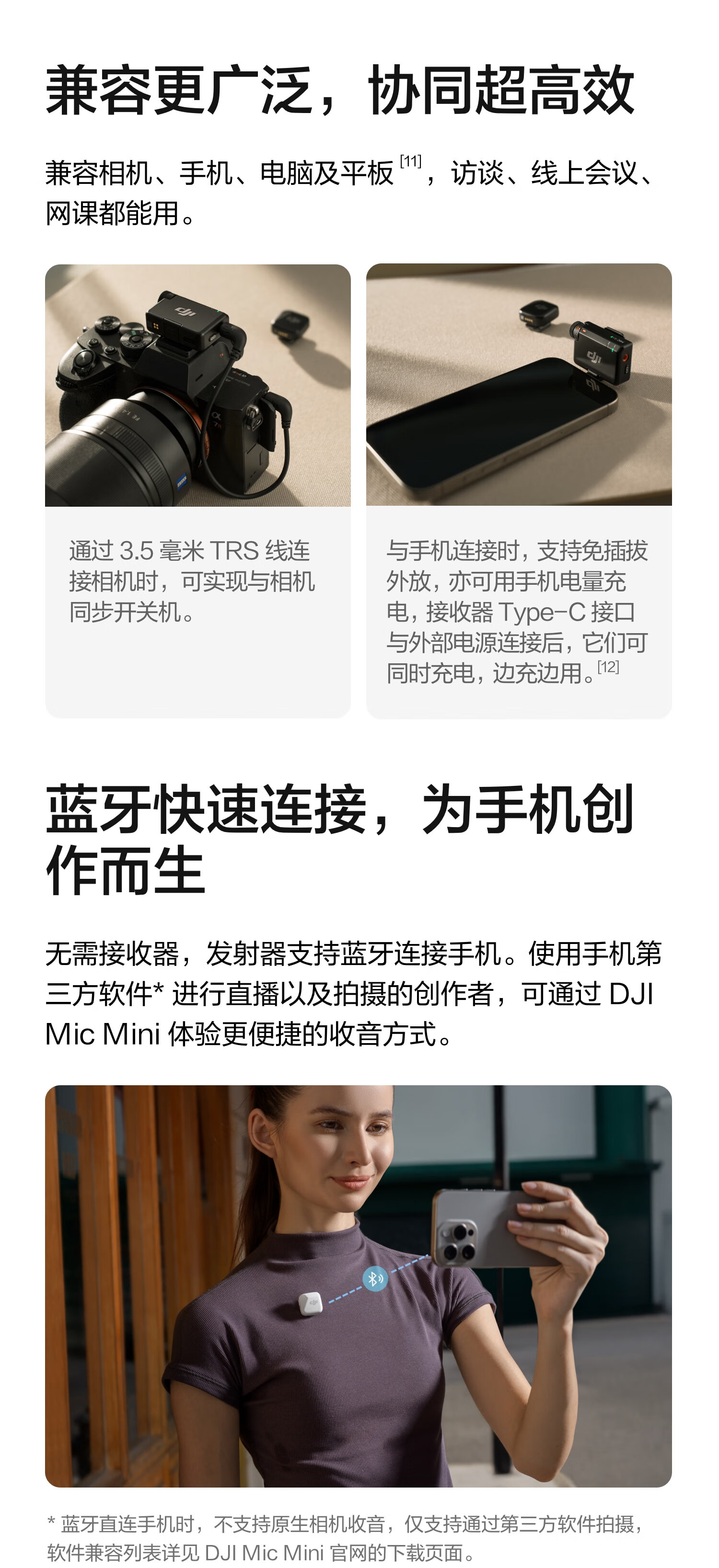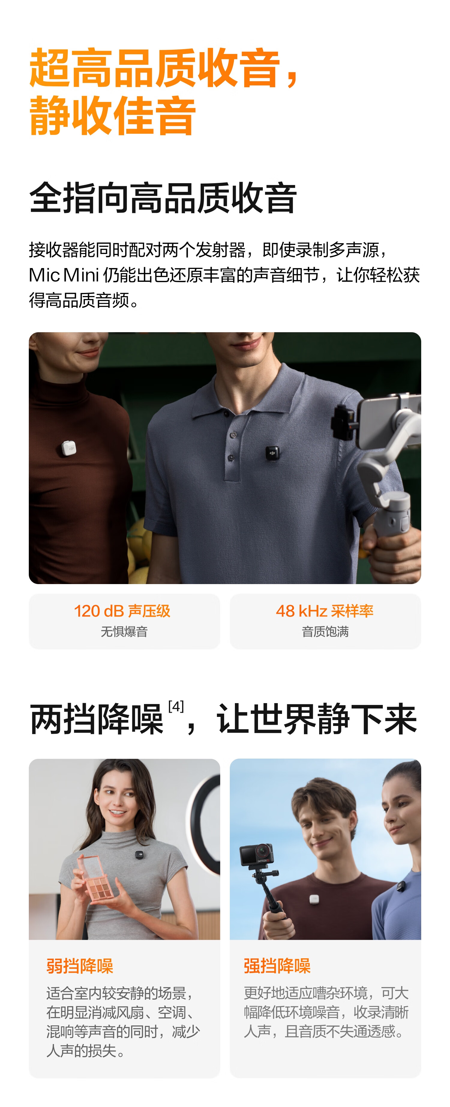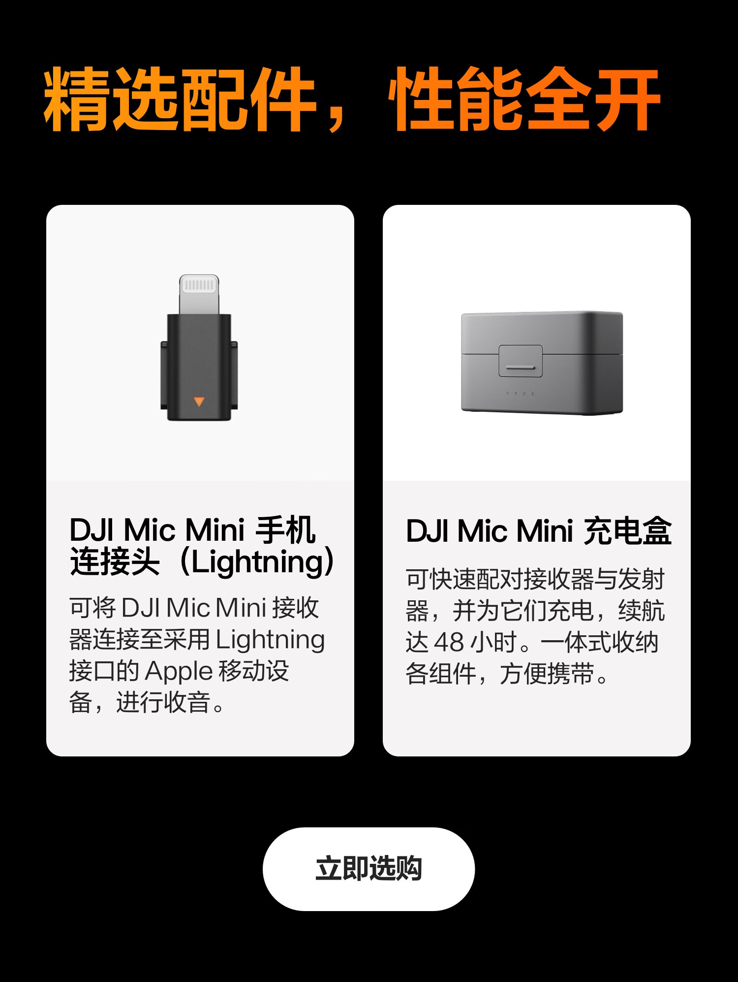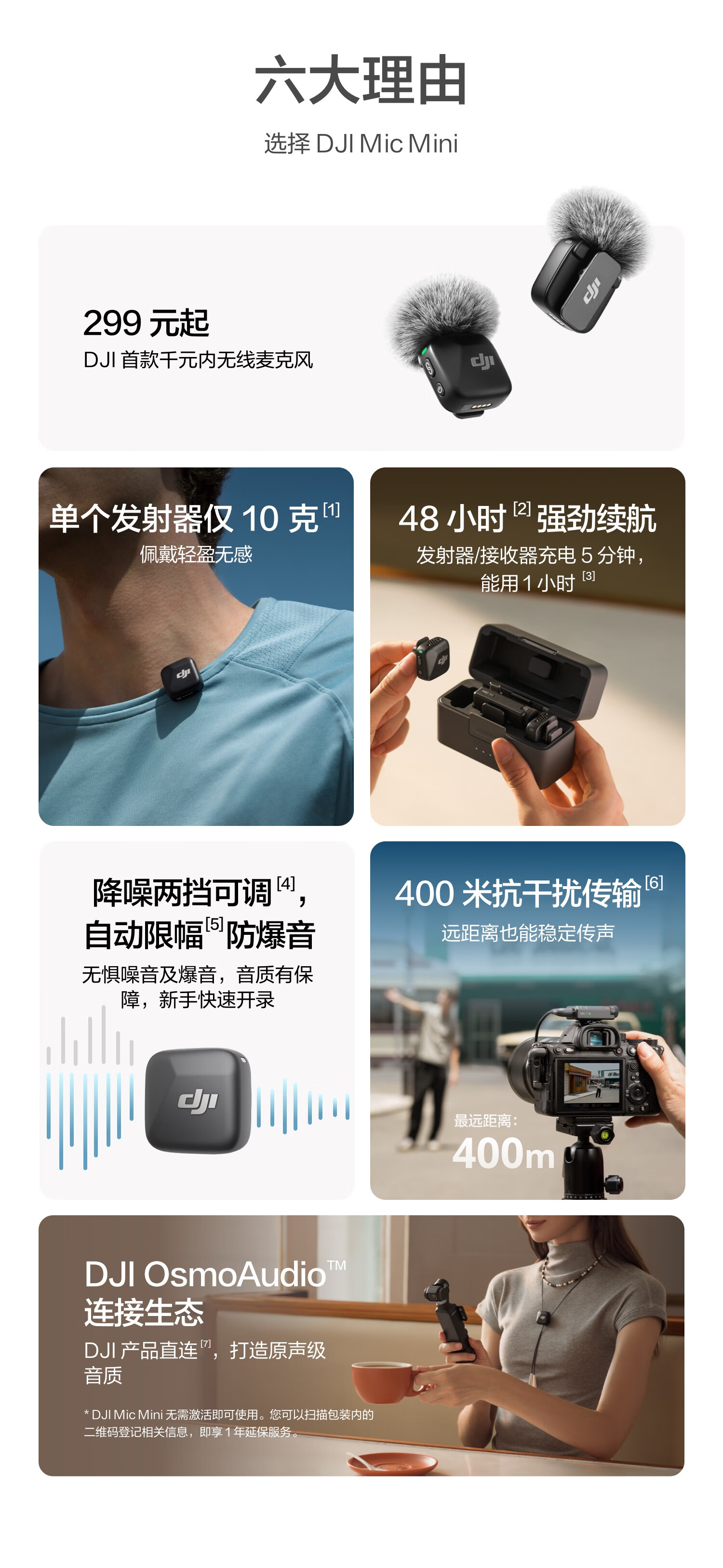DJI Mic Mini 迷你无线高品音质降噪领夹麦克风户外采访直播vlog手机相机收音麦