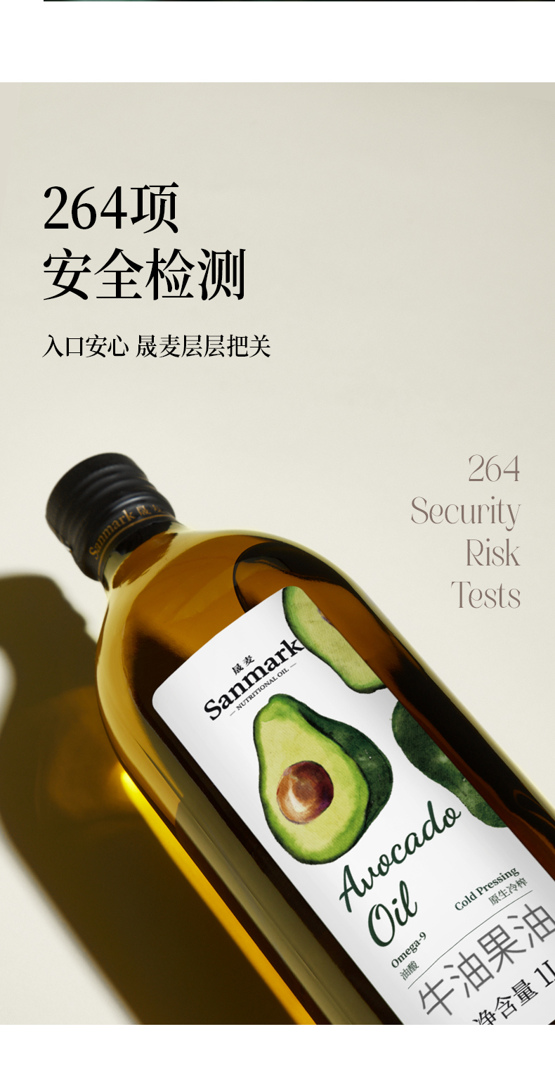 【好吃的】晟麦sanmark 牛油果油 1L家庭装 低温冷榨食用油 鳄梨油 热炒油