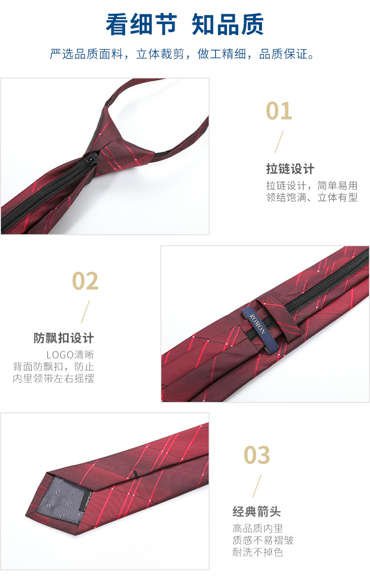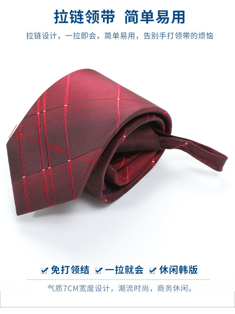 【礼盒款】罗蒙7厘米拉链领带婚礼婚庆百搭舒适时尚有型男士领带