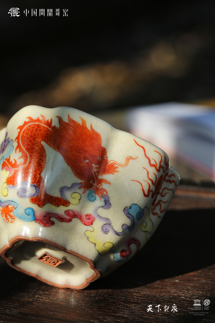 问鼎哥窑传世款葵扇杯(祥龙戏珠)