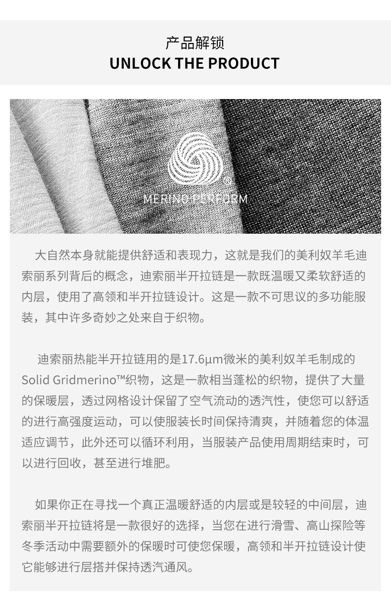 HOUDINI胡丁尼 Desoli 迪索丽女户外秋冬保暖半拉链羊毛长袖打底衫 840023