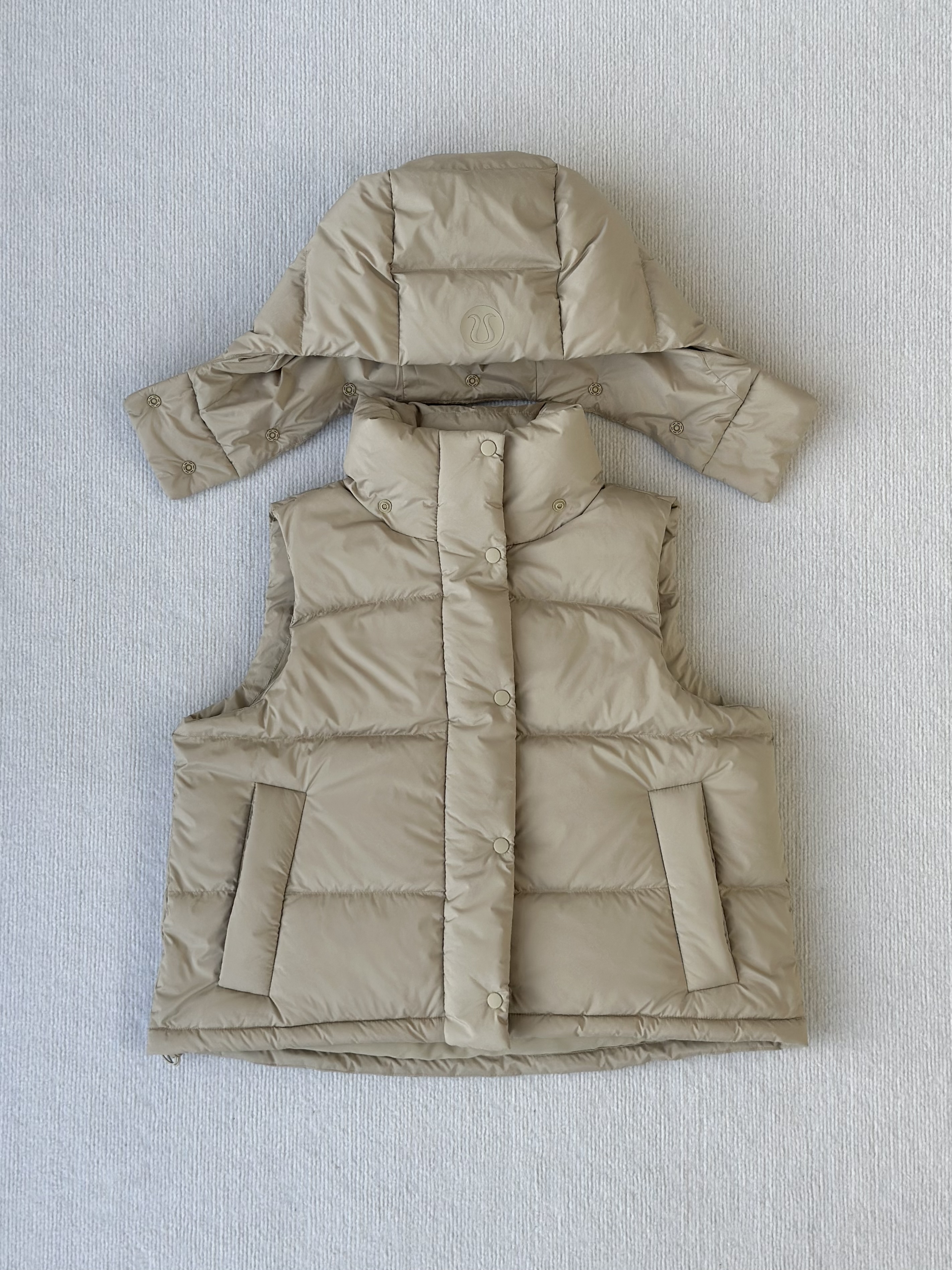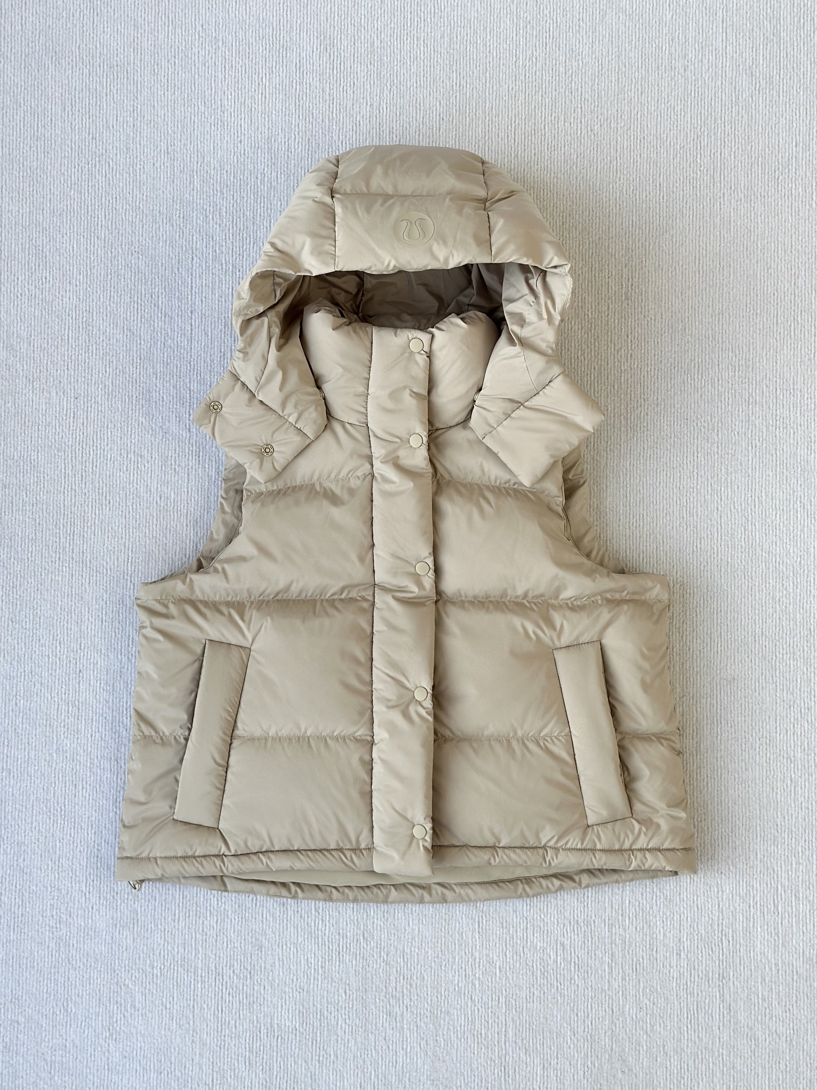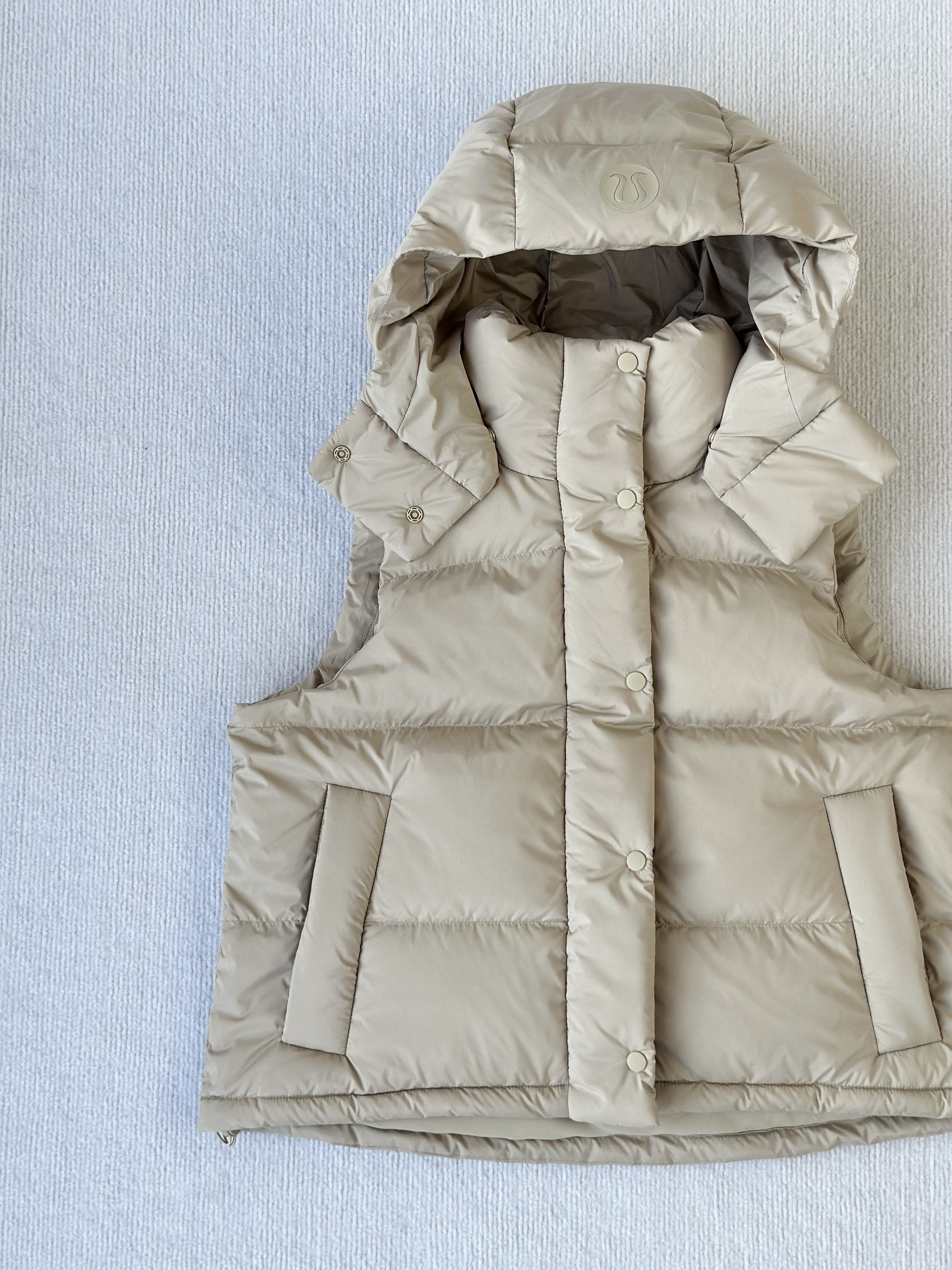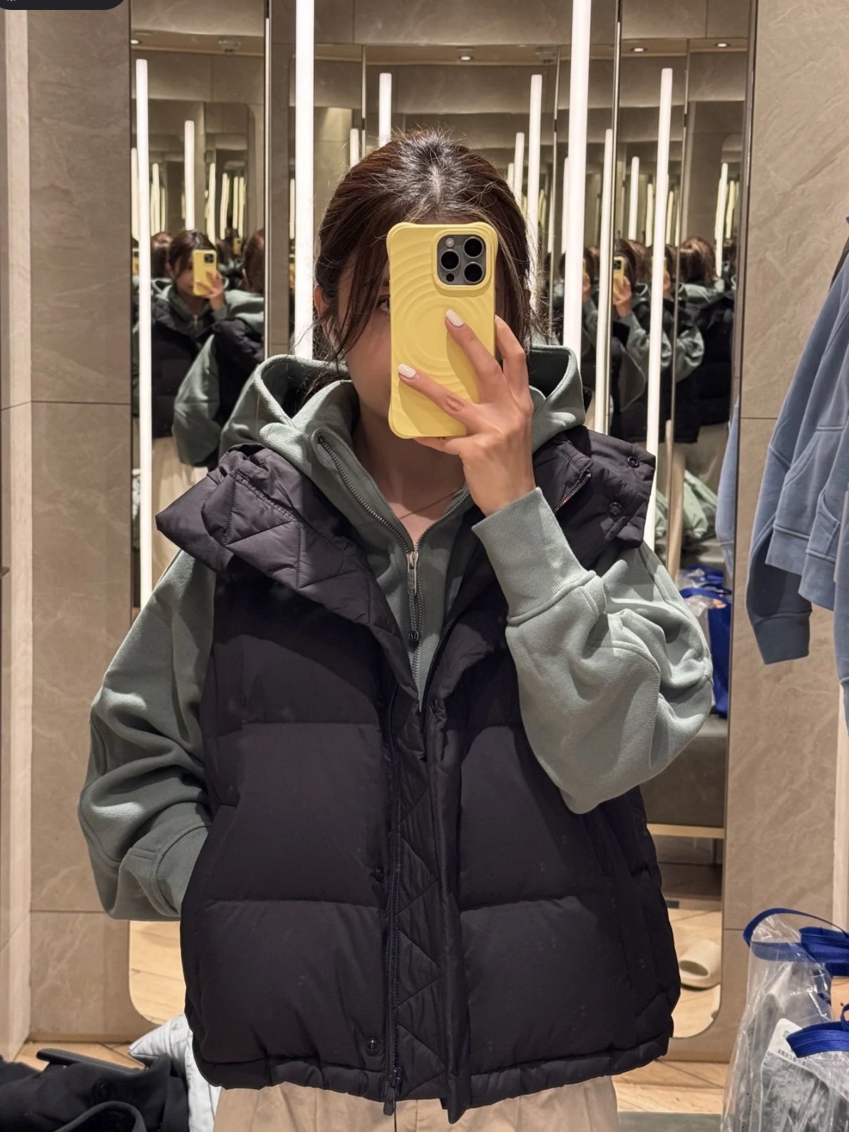 LULU 泡芙4格80绒鹅绒短款马甲 帽子可拆卸