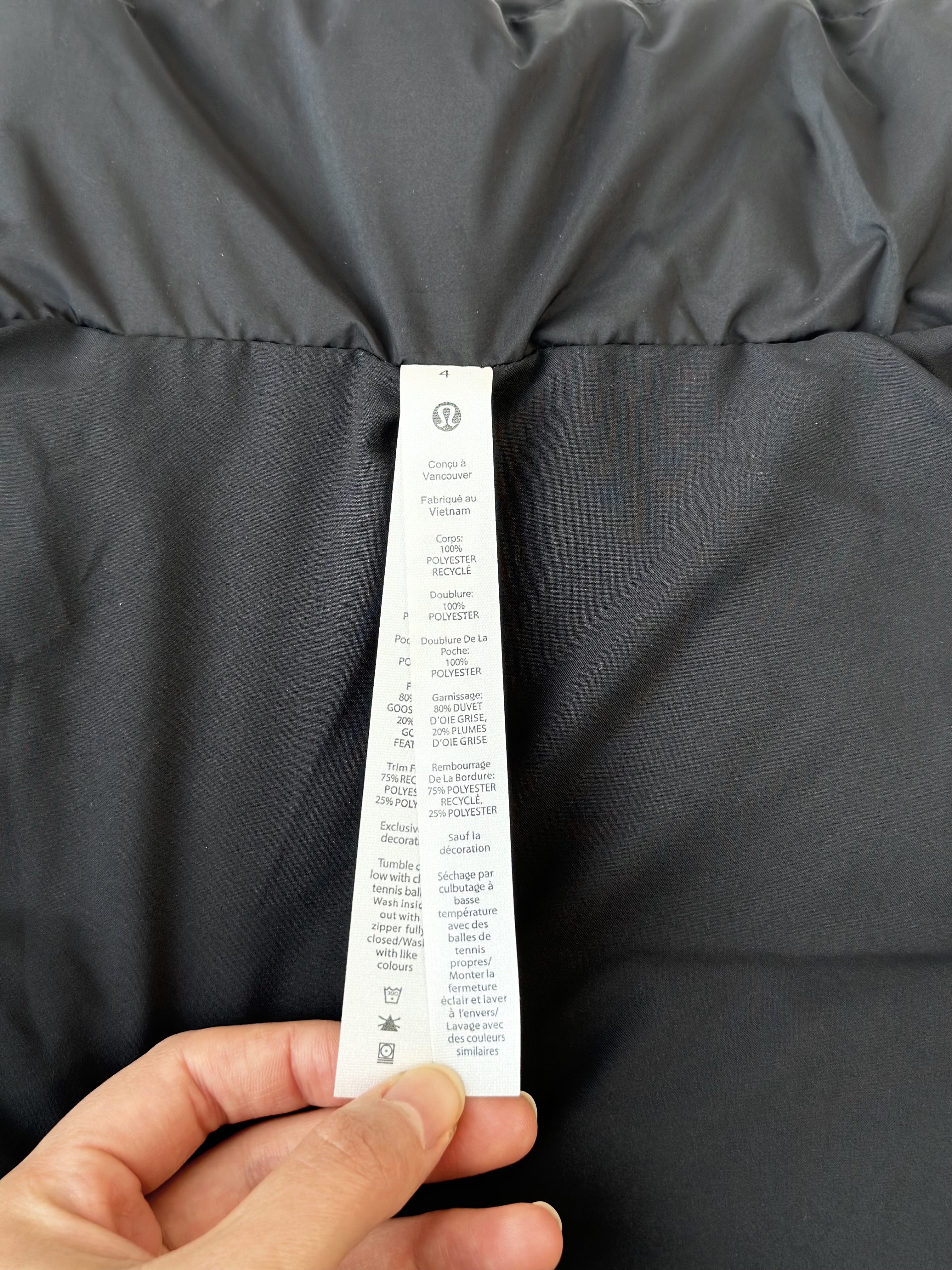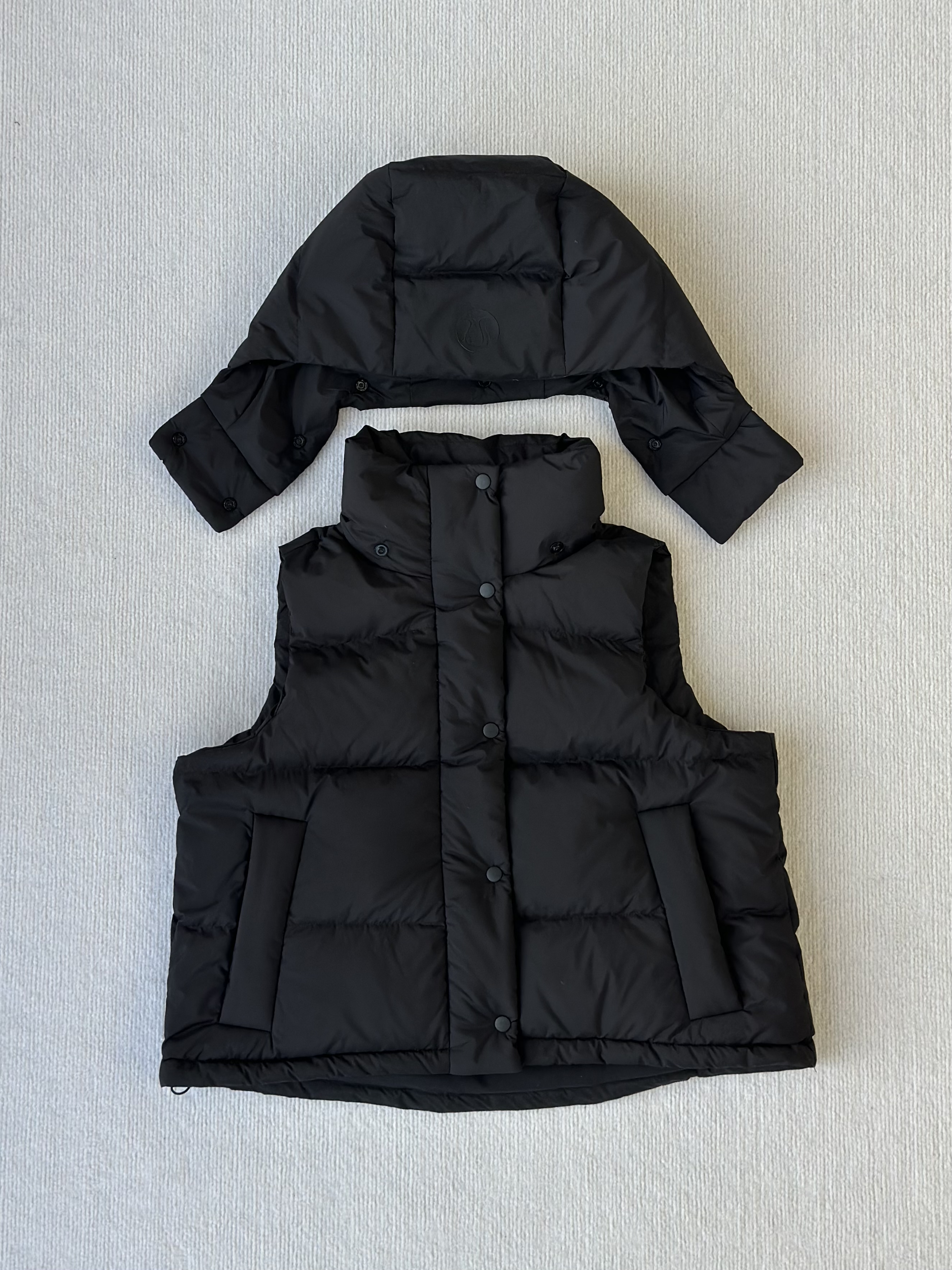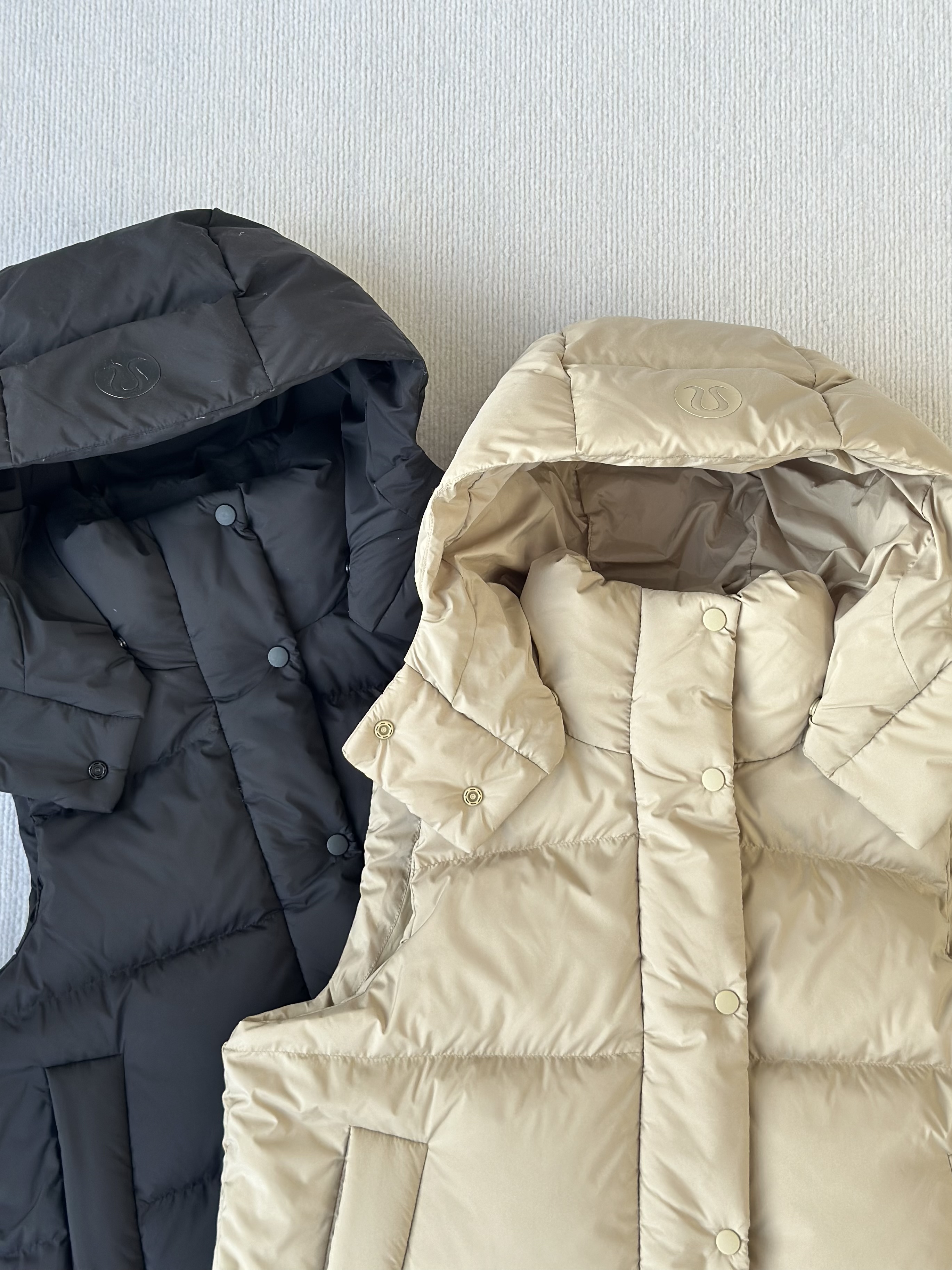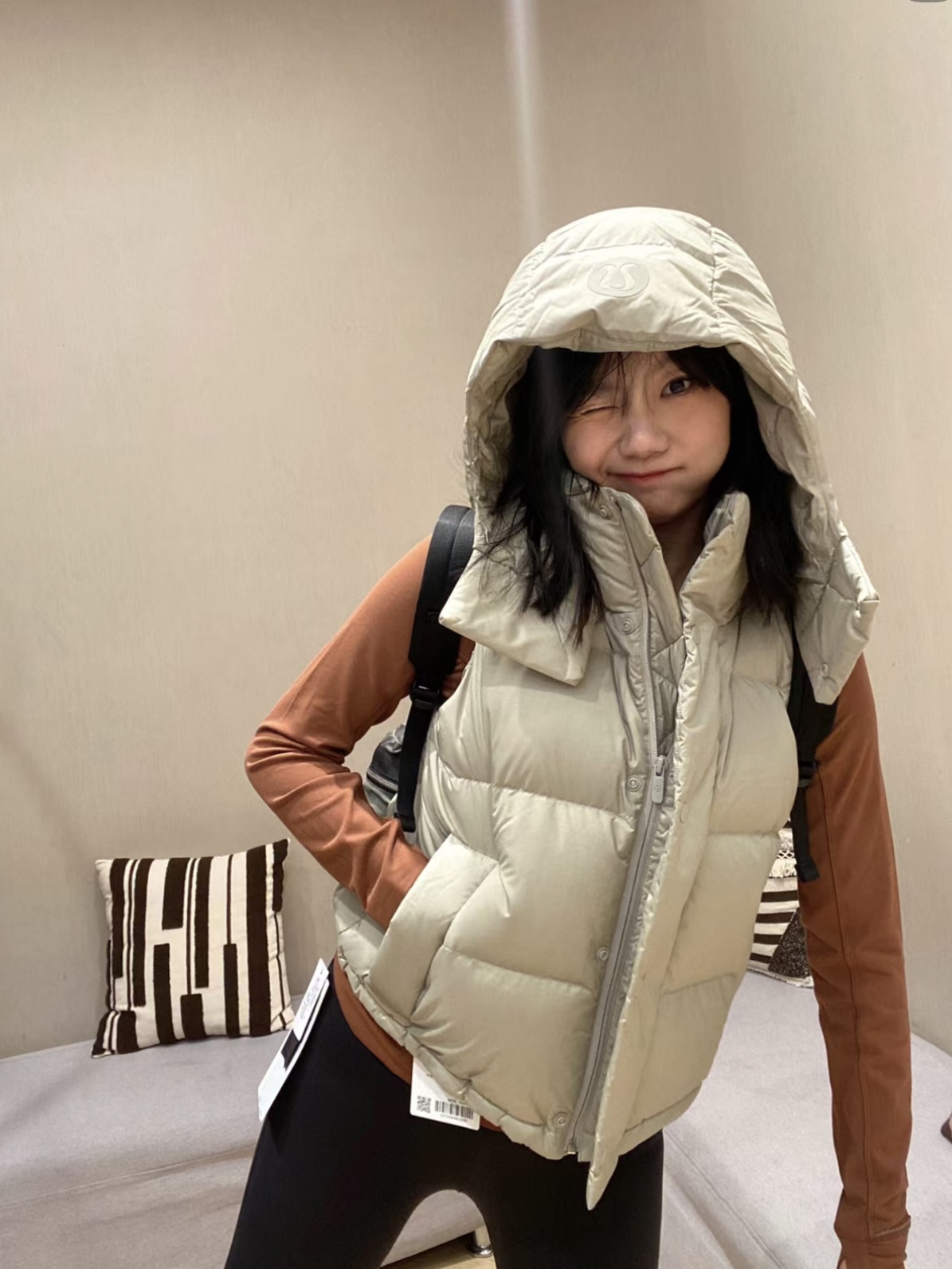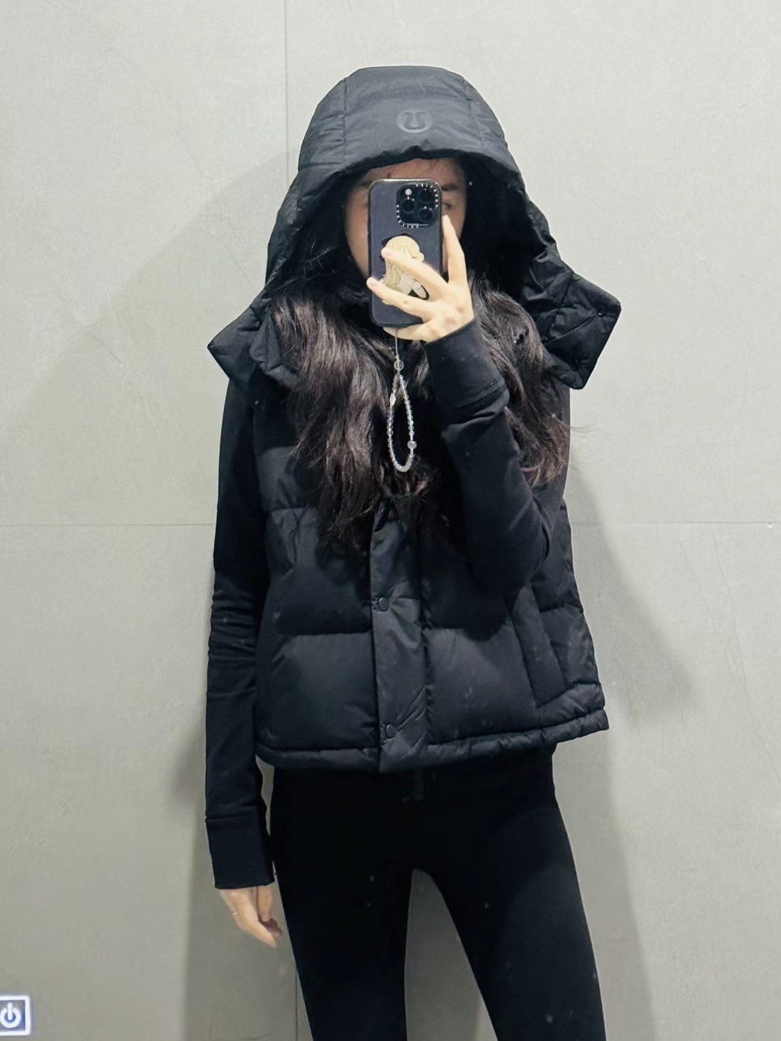 LULU 泡芙4格80绒鹅绒短款马甲 帽子可拆卸