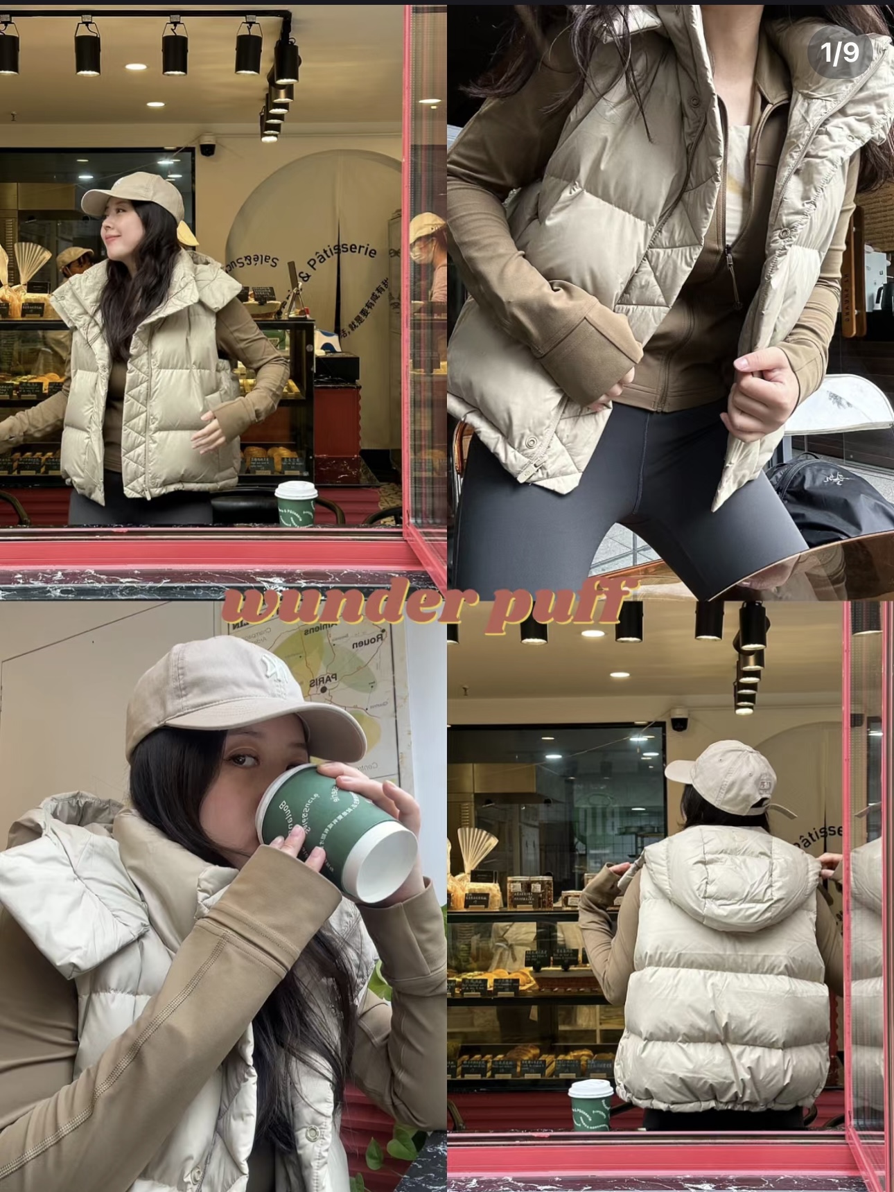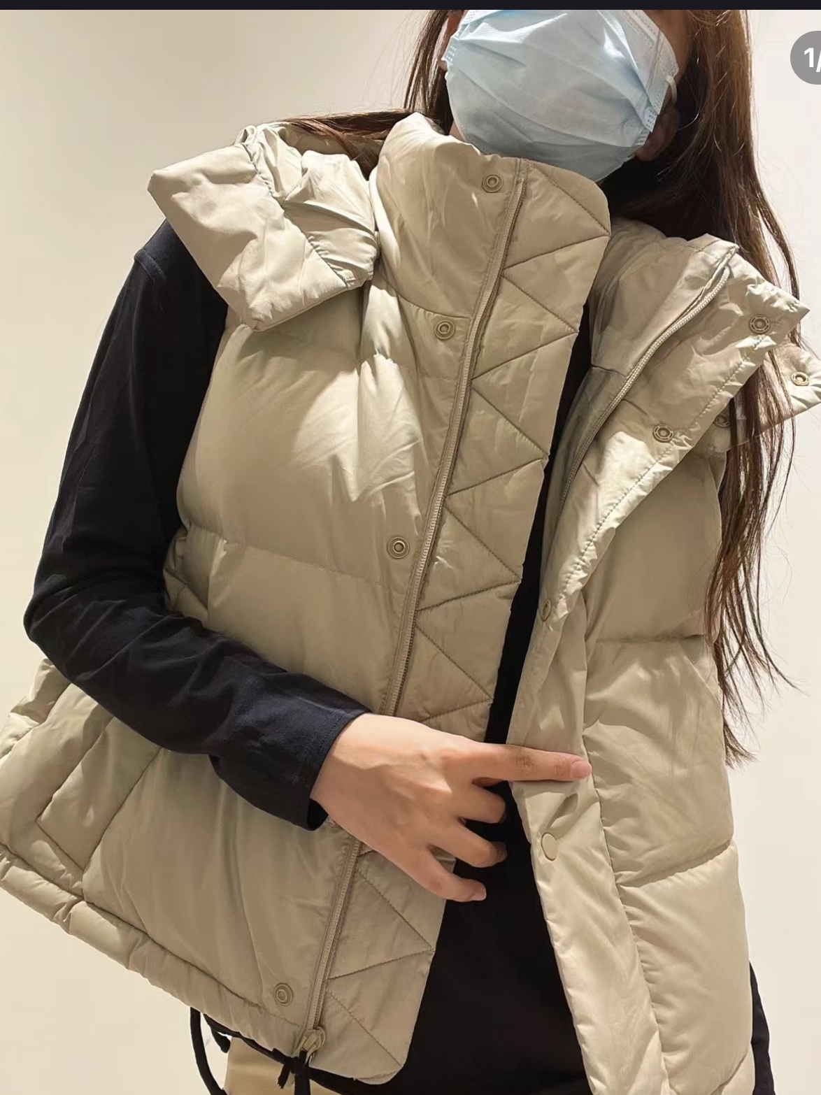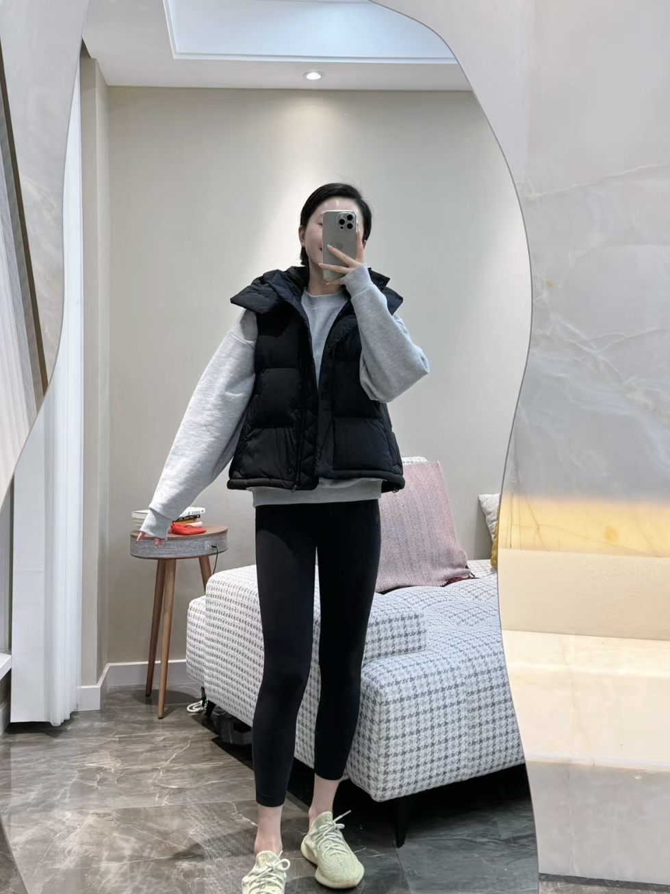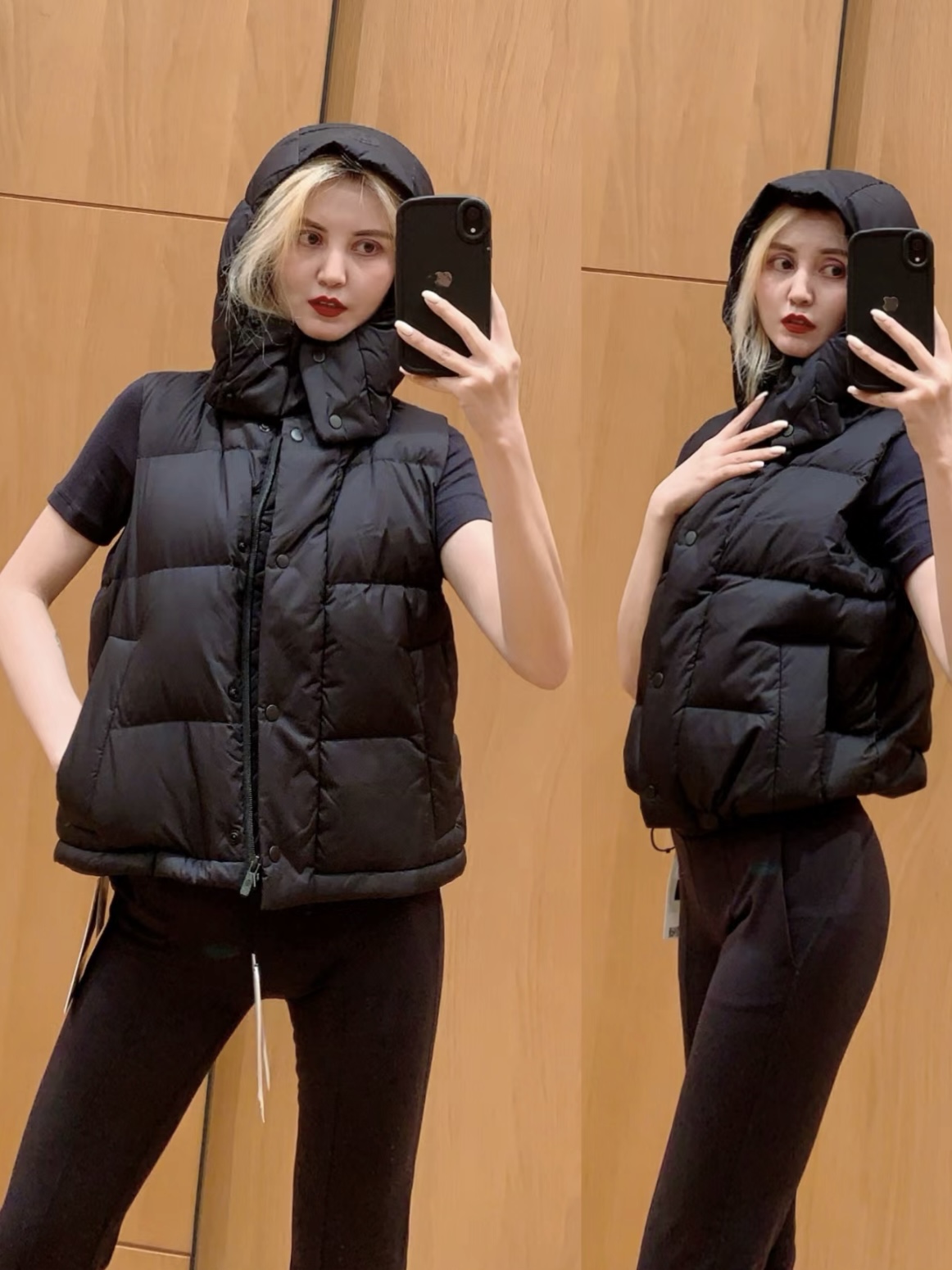 独家!!青岛订单,80鹅绒!!LULU 泡芙4格80绒鹅绒短款马甲 帽子可拆卸 泡芙马甲