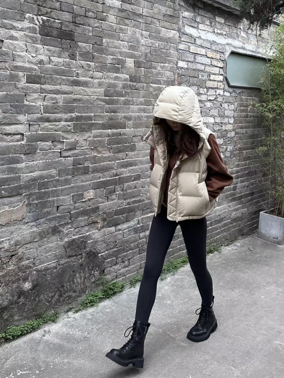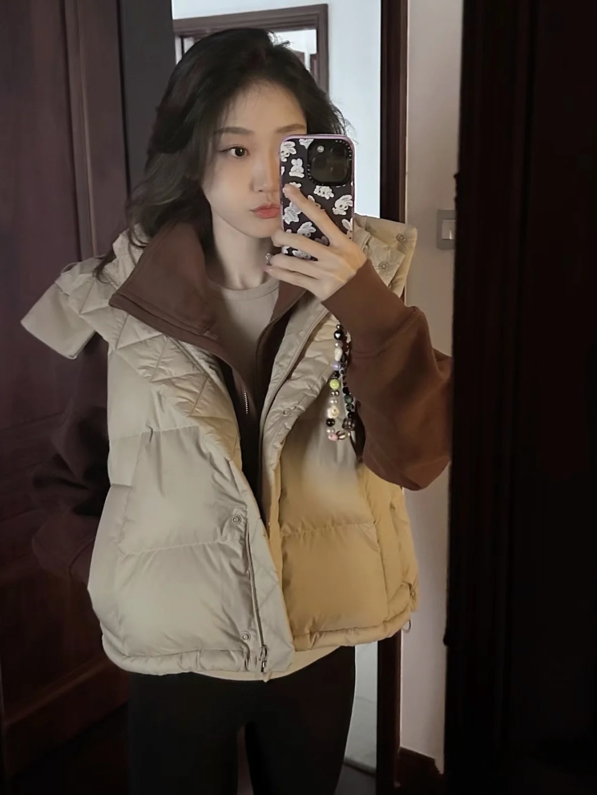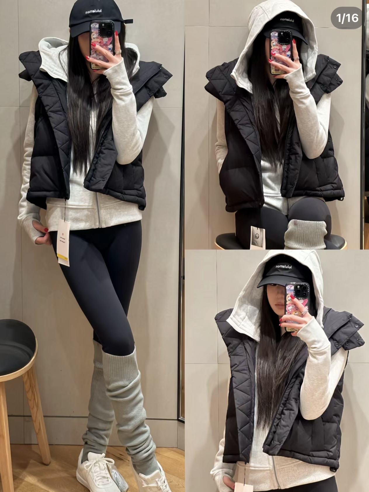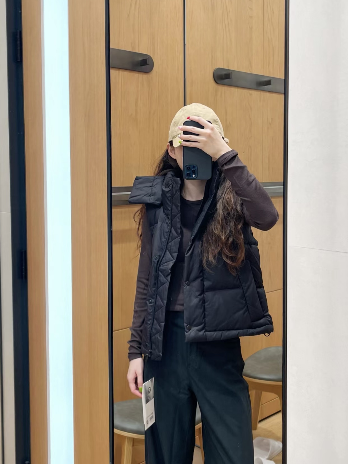 独家!!青岛订单,80鹅绒!!LULU 泡芙4格80绒鹅绒短款马甲 帽子可拆卸 泡芙马甲