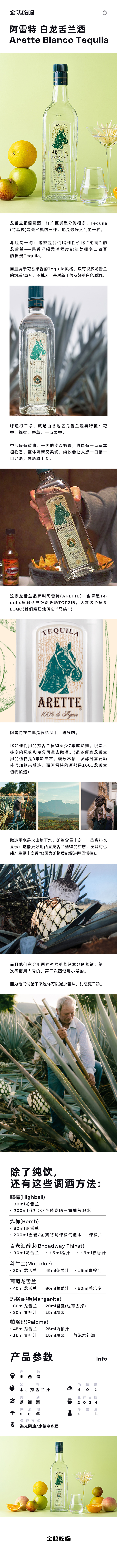 企鹅市集|墨西哥 阿雷特 白龙舌兰酒1L(Tequila)果香花香 清新柔润