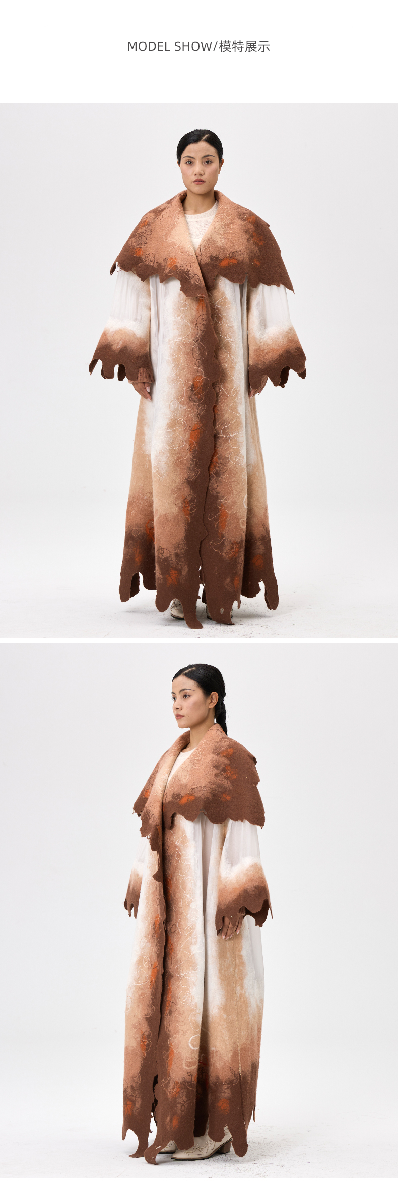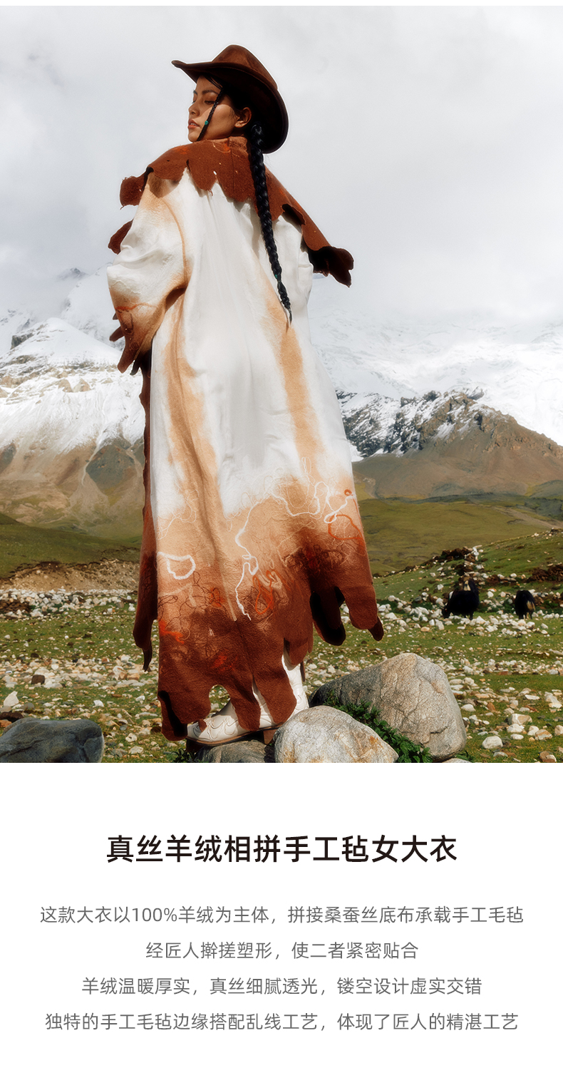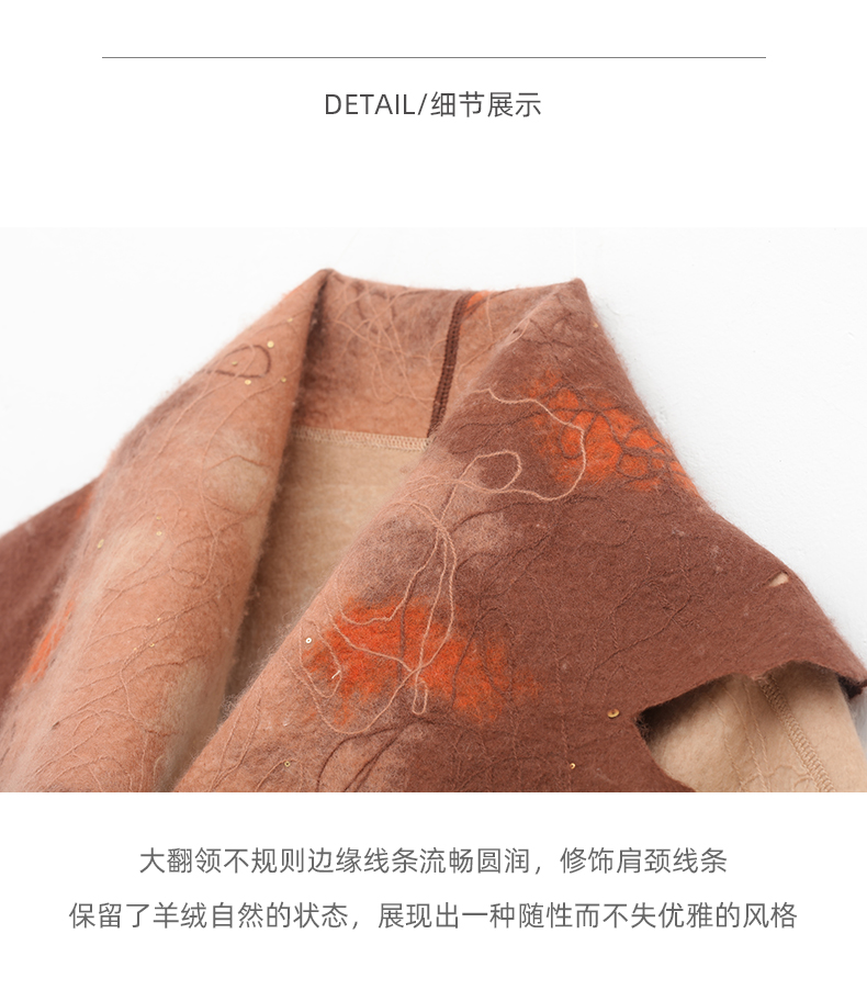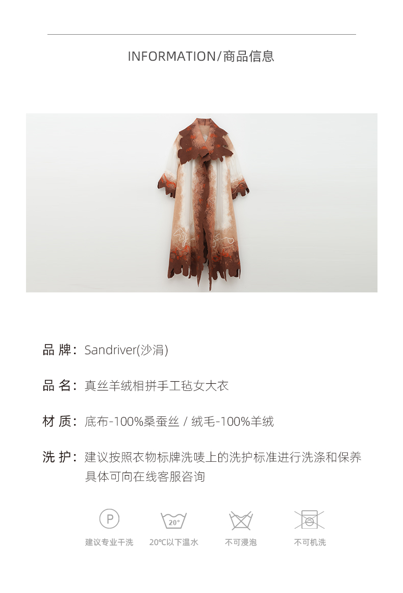 真丝羊绒相拼手工毡女大衣 SJF97W326N