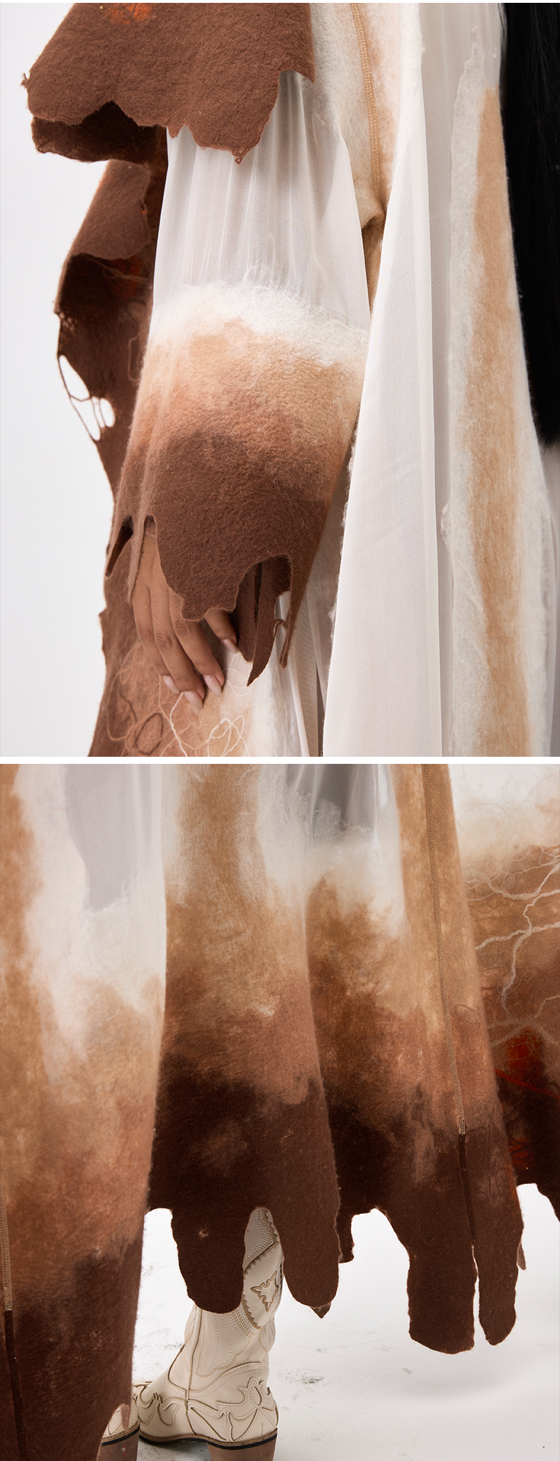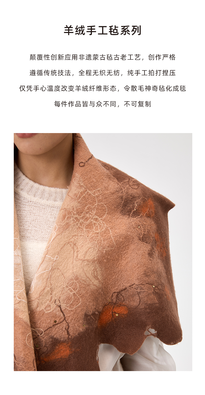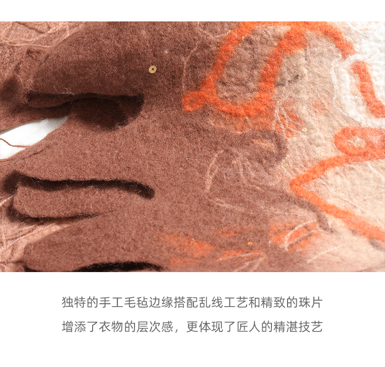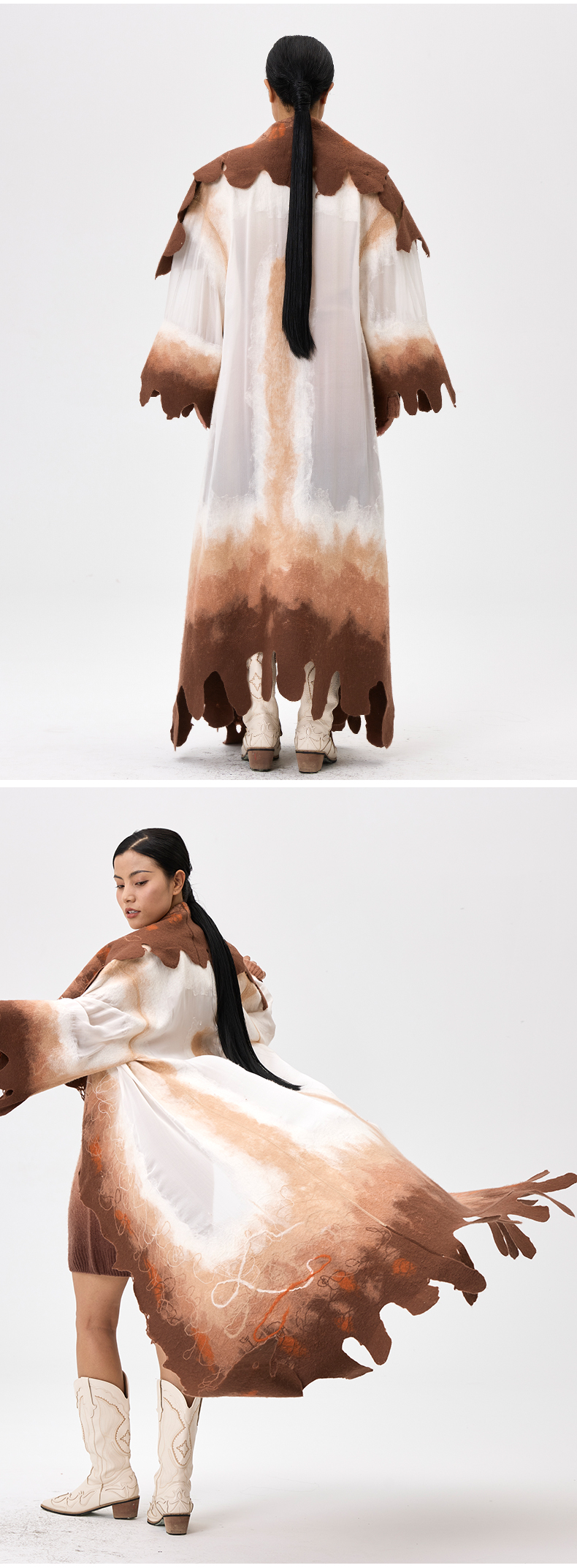 真丝羊绒相拼手工毡女大衣 SJF97W326N