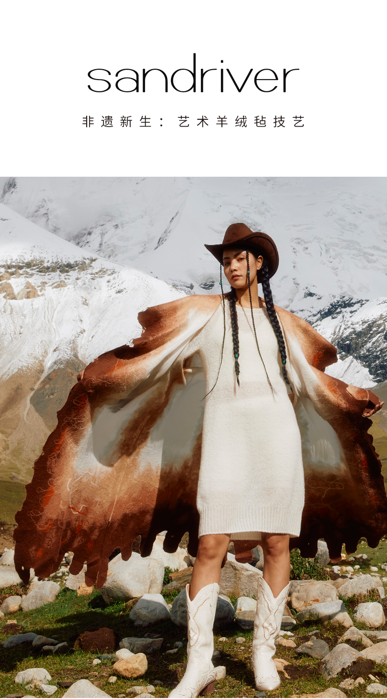 历年在巴黎时装周亮相,享誉世界的艺术羊绒品牌[Sandriver 沙涓]由羊绒布道者郭秀玲女士创立。阿拉善自有牧场纯种羔羊绒,日本国宝设计师小筱顺子,上海自有基地精工细作。承载羊绒情怀,坚持匠人品质。