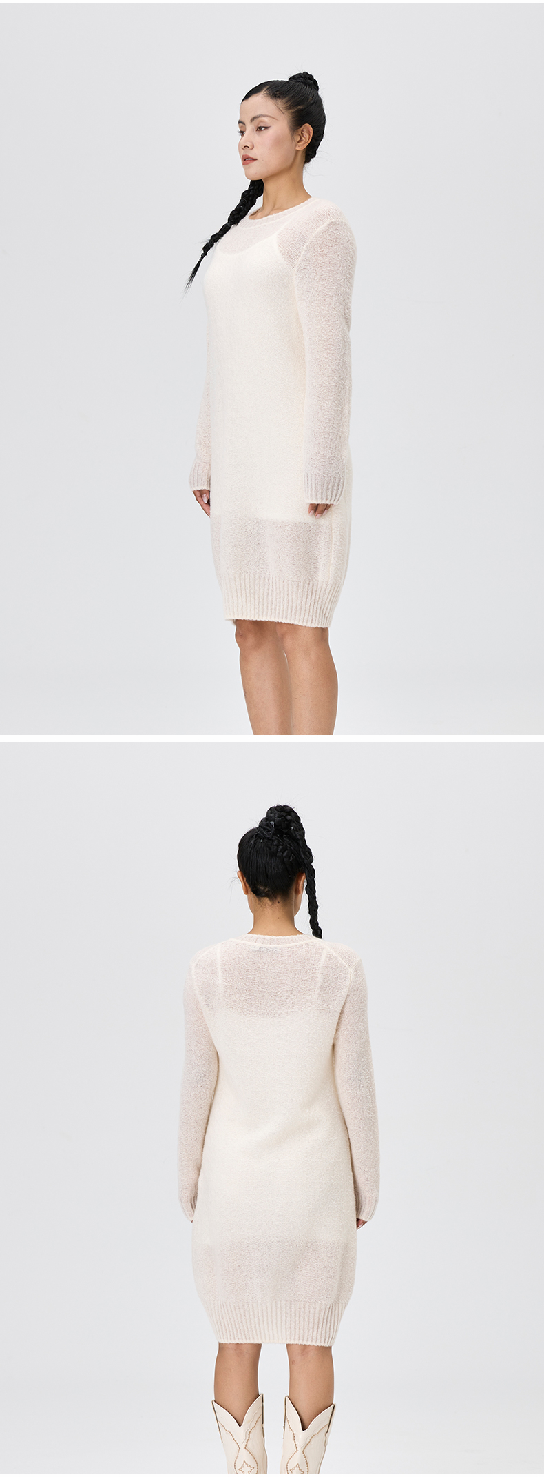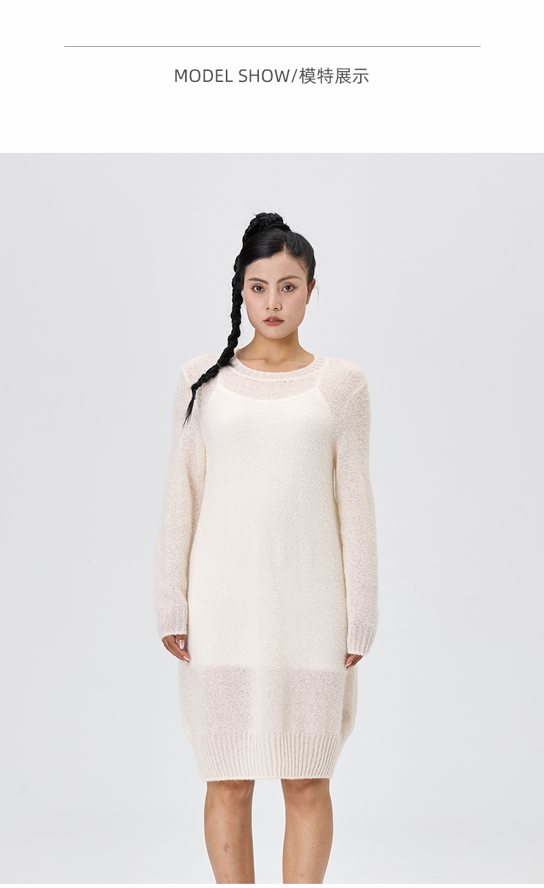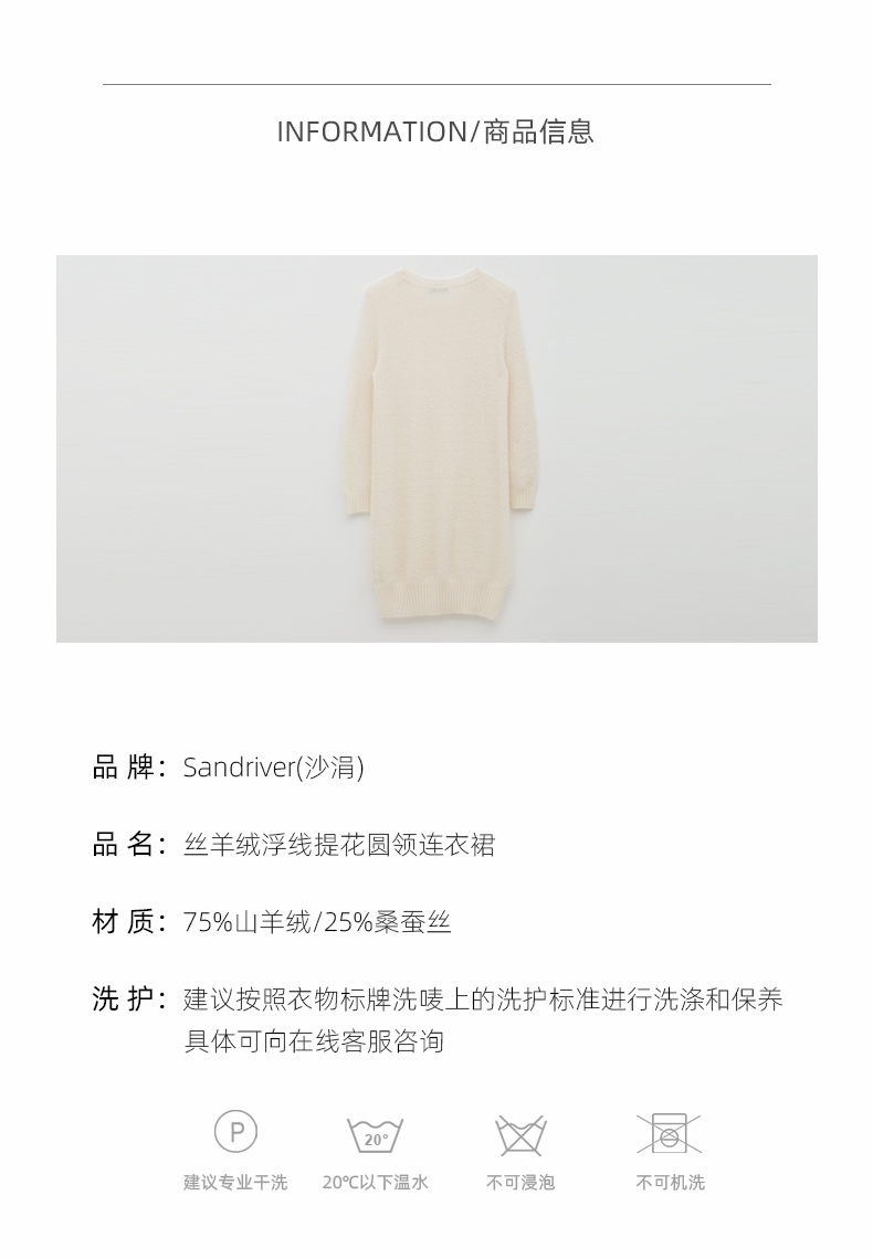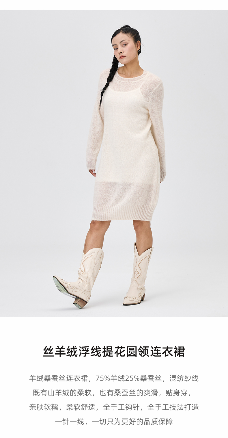 丝羊绒浮线提花圆领连衣裙 SJF97W373N