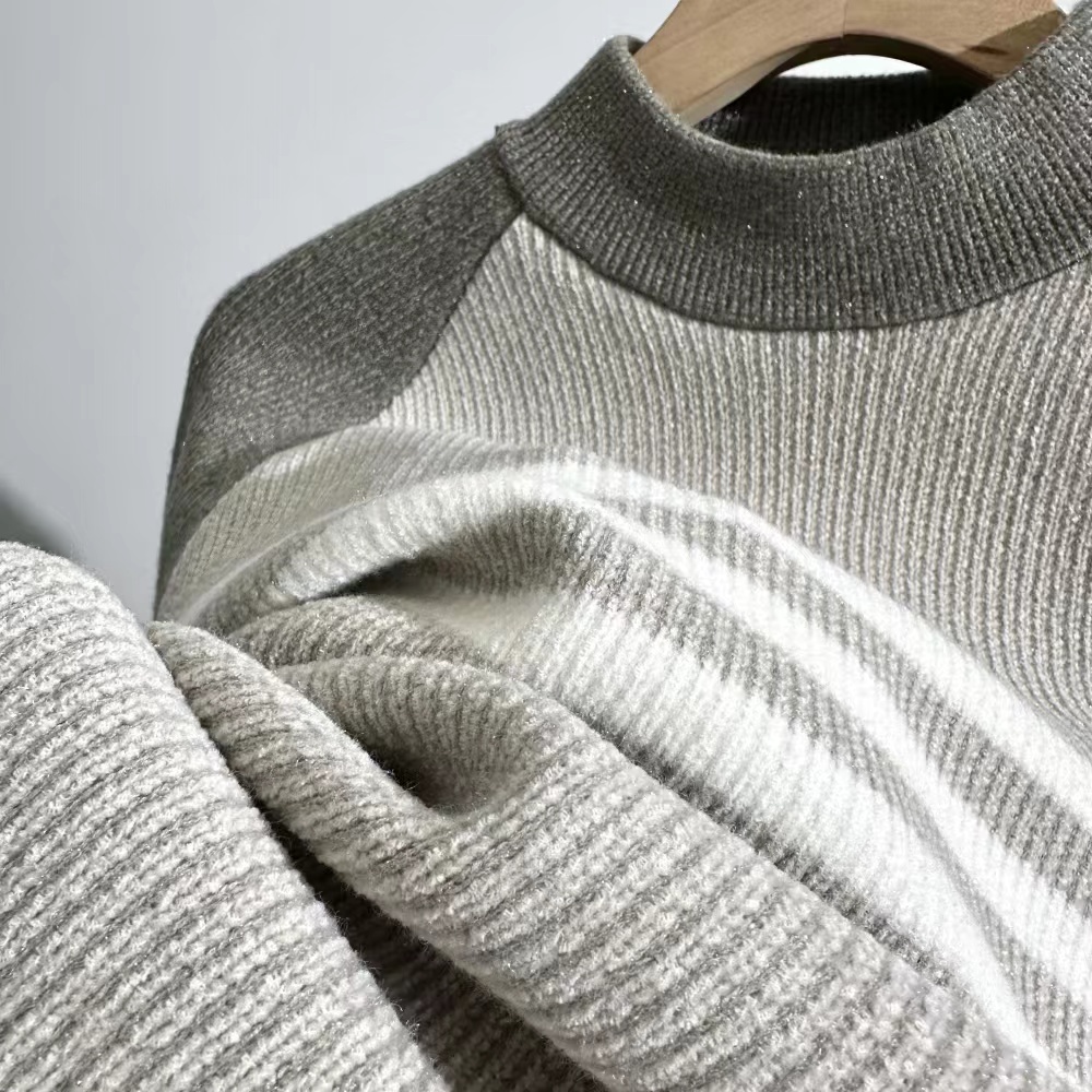 将慵懒与学院风穿进冬日。这款加厚条纹拼接针织衫,以精典撞色重构青春定义。羊绒级触感内里,锁住体温不臃肿。落肩设计与微阔版型,赋予自在活动空间。无论是课堂还是假日,一件轻松叠穿出层叠暖意与率性态度