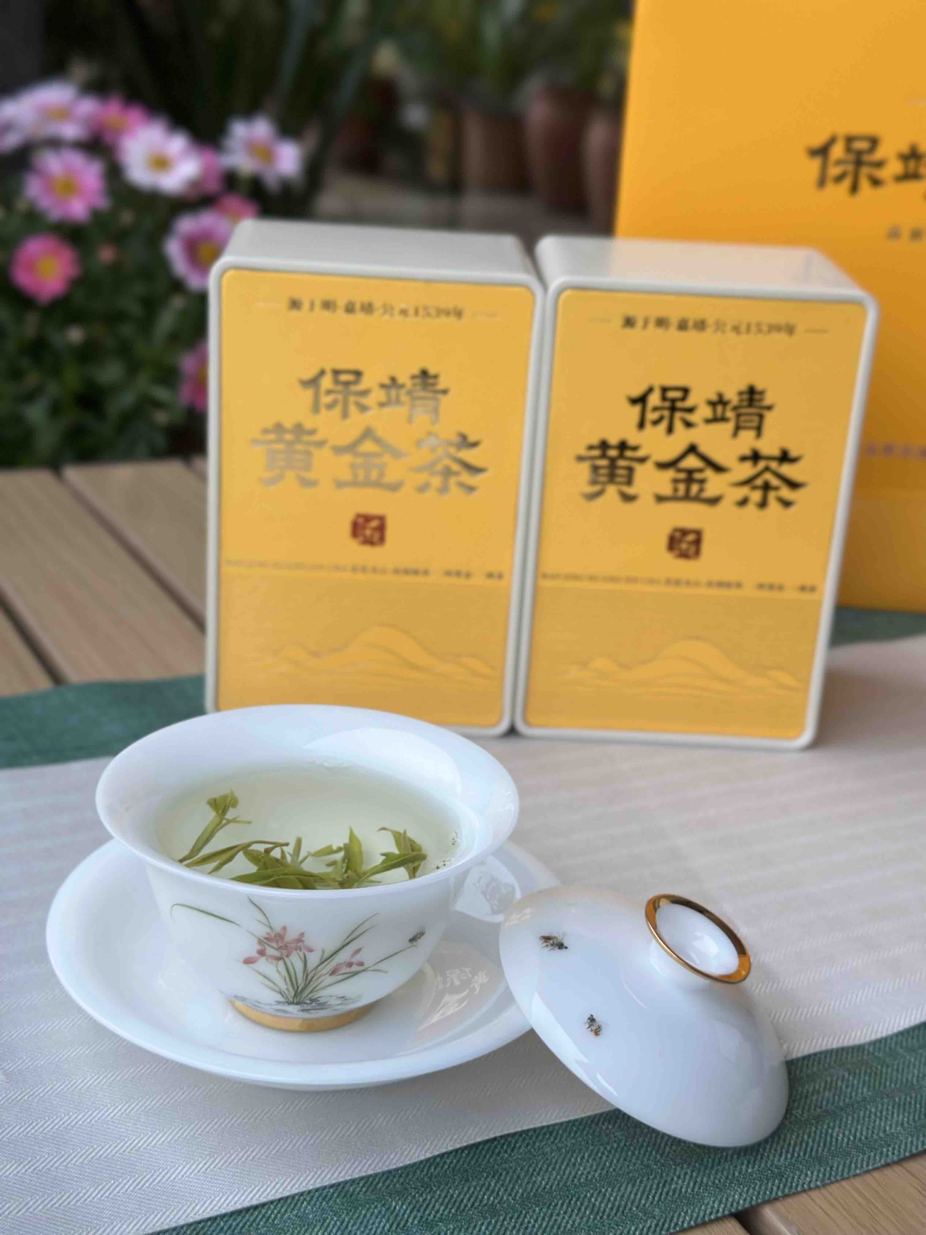 乙巳春茶上市|保靖黄金茶(头采好时节·明前特级)以“高氨基酸、高茶多酚、高叶绿素和高水浸出物质”和“香、绿、爽、醇”四高四绝品质特点享誉全球,一两黄金一两茶,馈赠自饮佳品,规格:50g*2罐*1盒