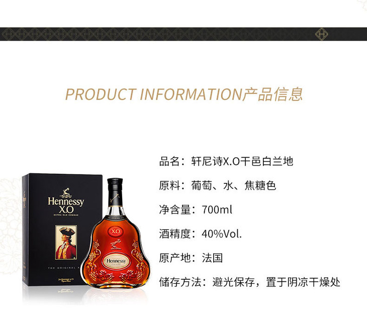 【行货】法国Hennessy 轩尼诗XO 干邑白兰地 700ml*1瓶