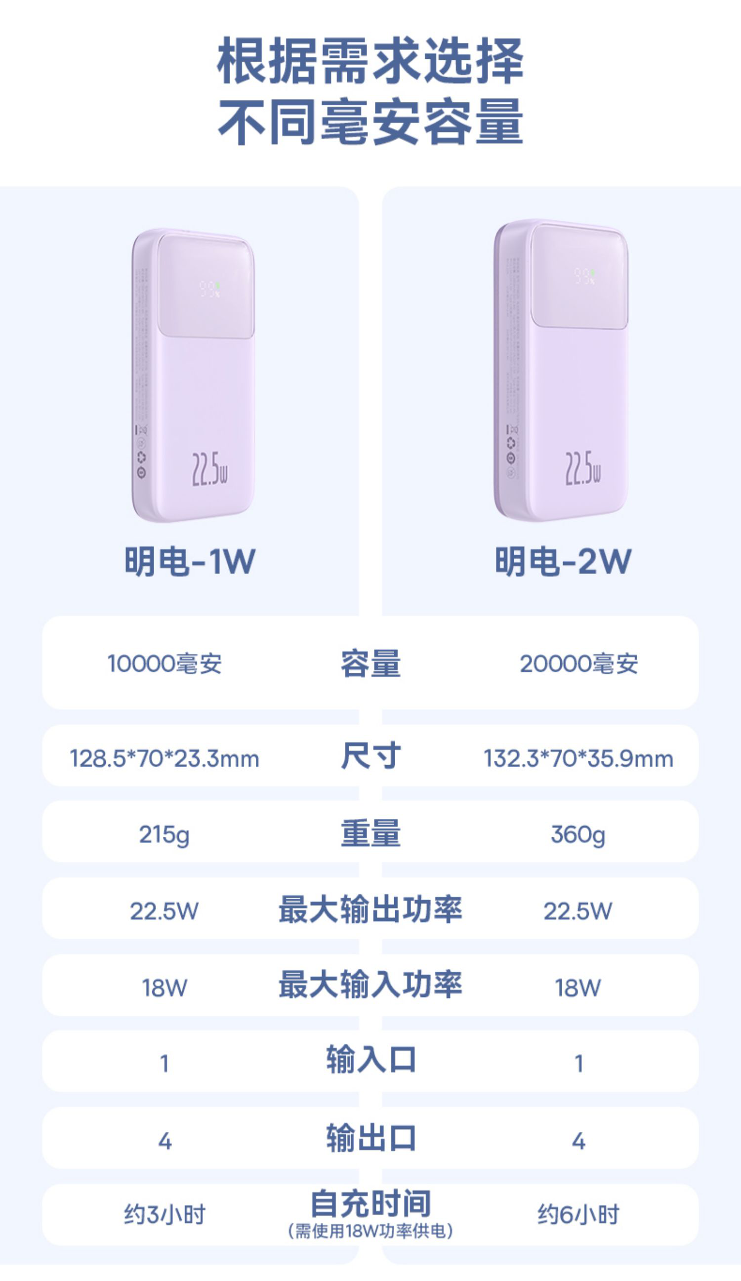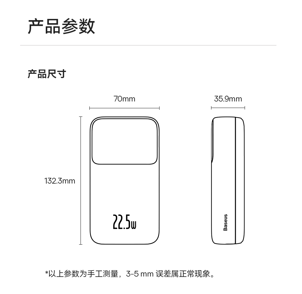 倍思明电数显快充移动电源双线版 10000/20000mAh 22.5W
