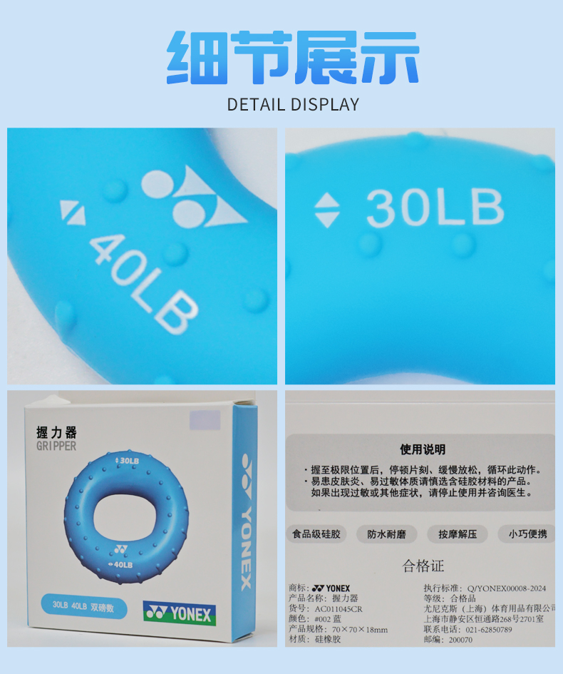 YONEX尤尼克斯羽毛球训练握力器AC011045CR 力量练习握力圈