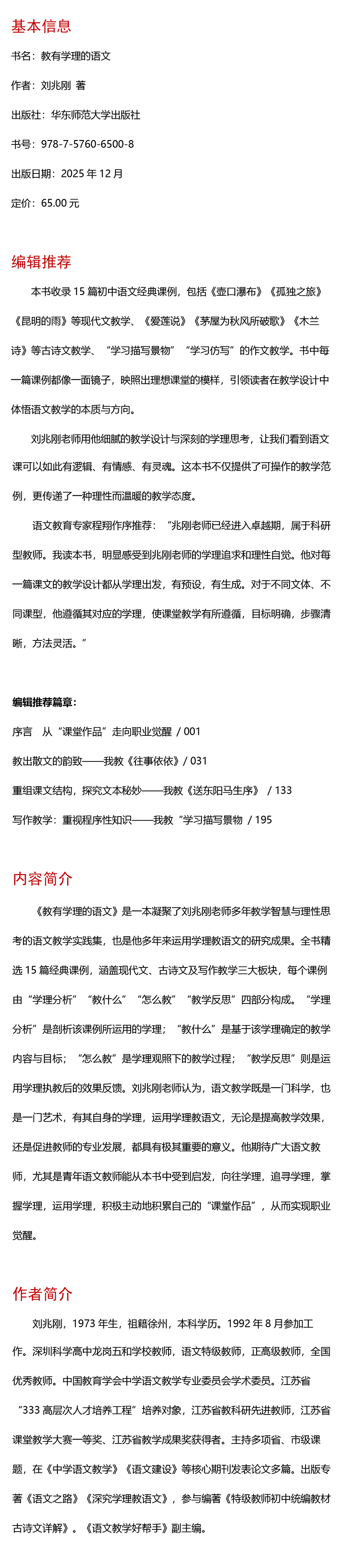 教有学理的语文 大夏书系 语文之道 刘兆刚 初中语文经典课例