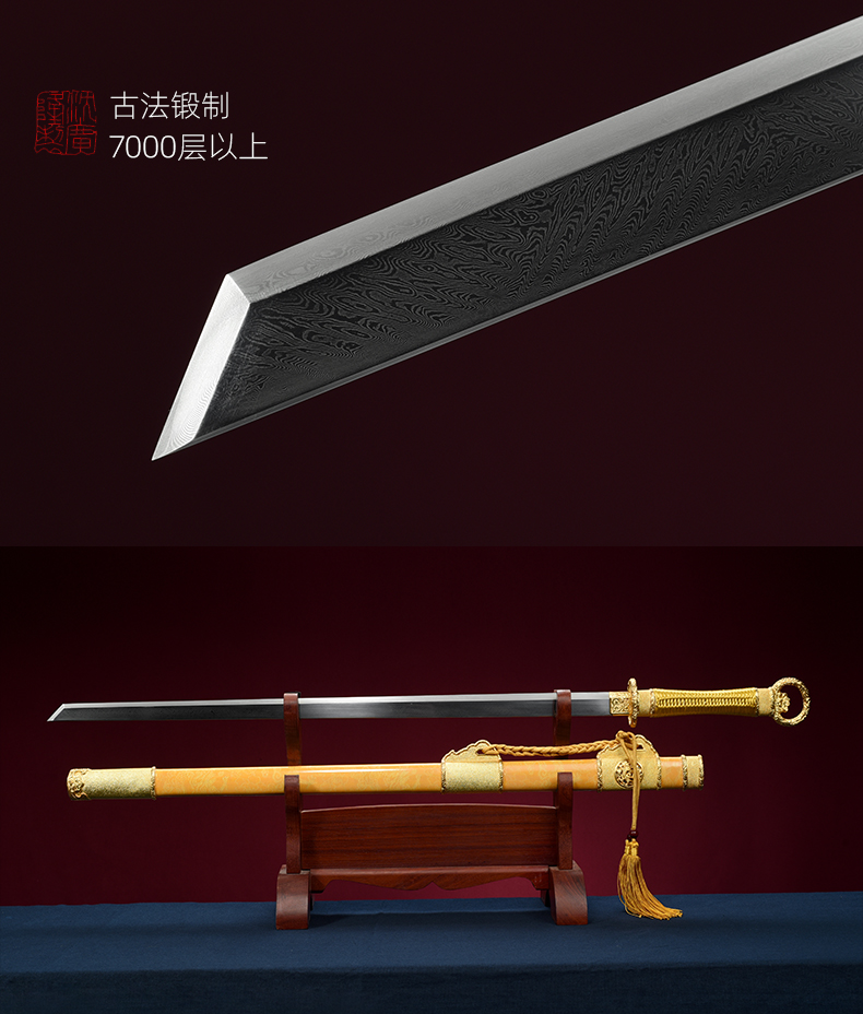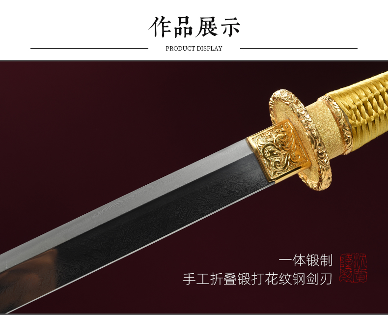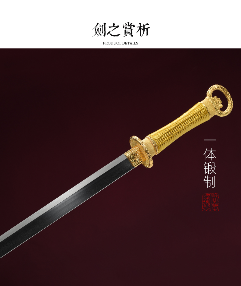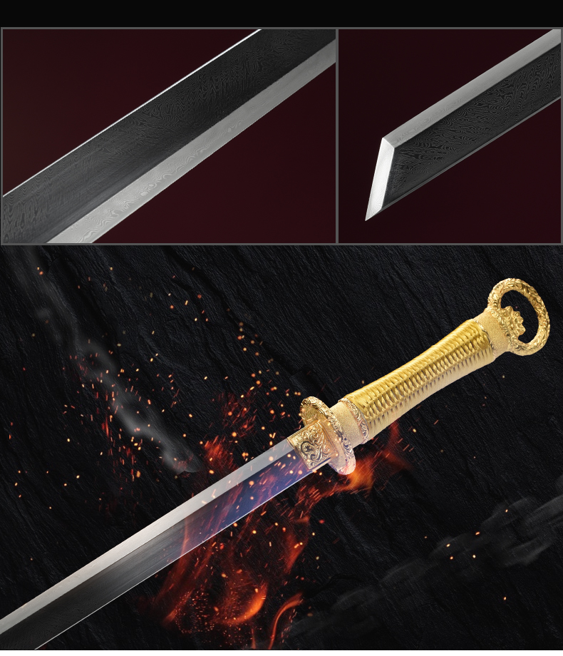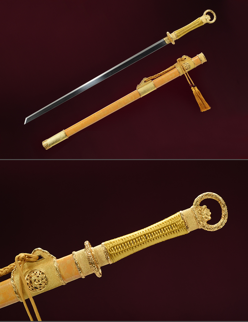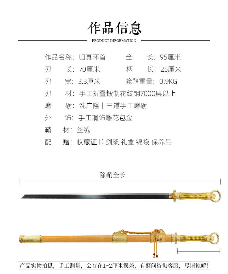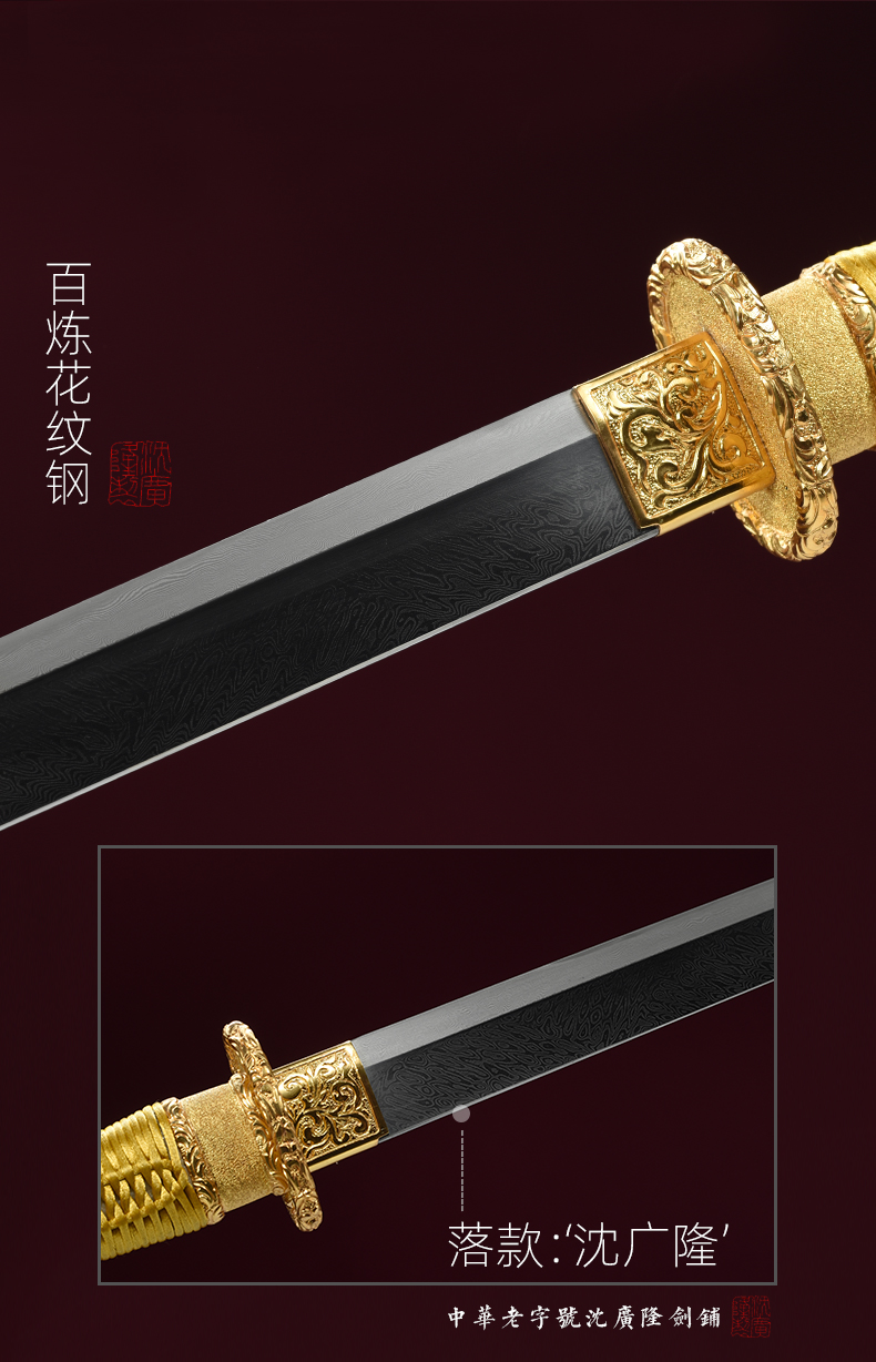 包金丝绒归真环首刀剑手工传统一体刀剑花纹钢刀剑龙泉沈广隆宝剑 未开刃