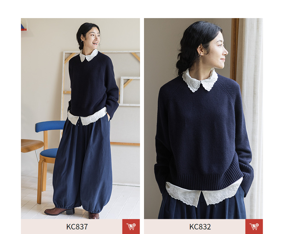 绽放862朵/纯羊毛毛衫女纯色老钱风套头毛针织衫新款百搭圆领毛衣