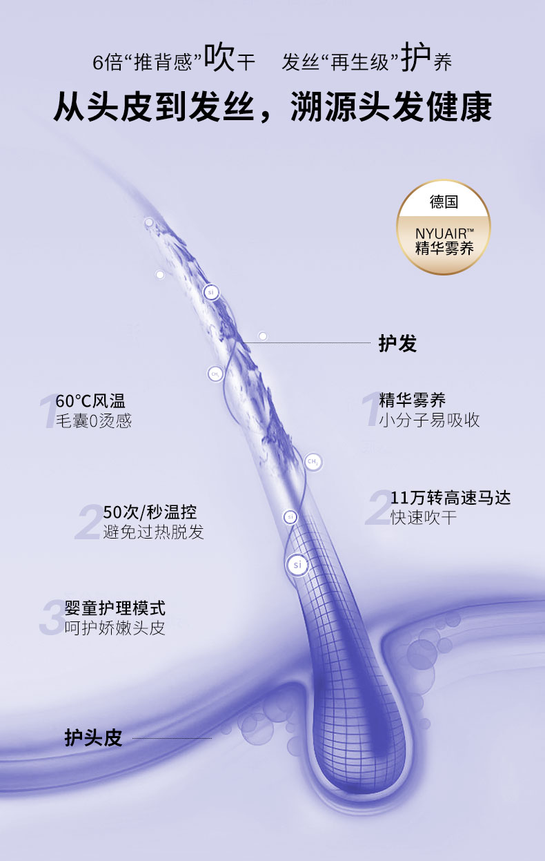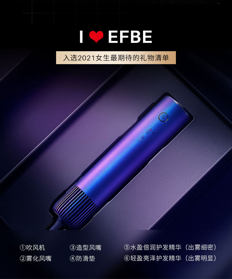 efbe飞舶 二代德国电吹风机 负离子护发精油不伤发家用大功率吹风筒