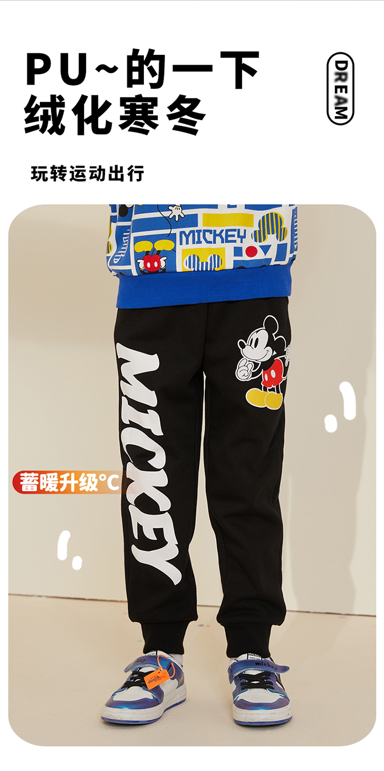 迪士尼童装男童裤子秋冬新款儿童裤子加绒加厚长裤休闲裤潮213K1196