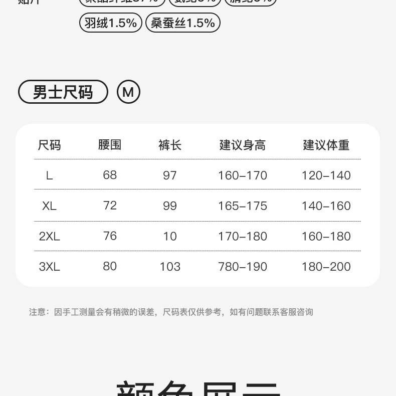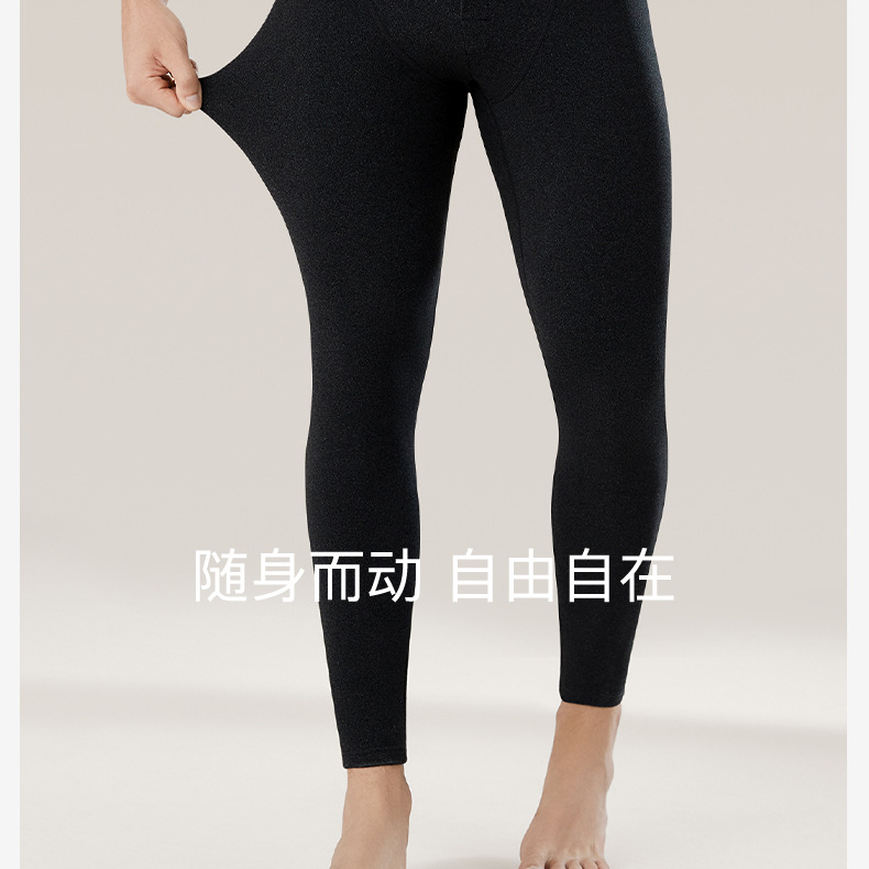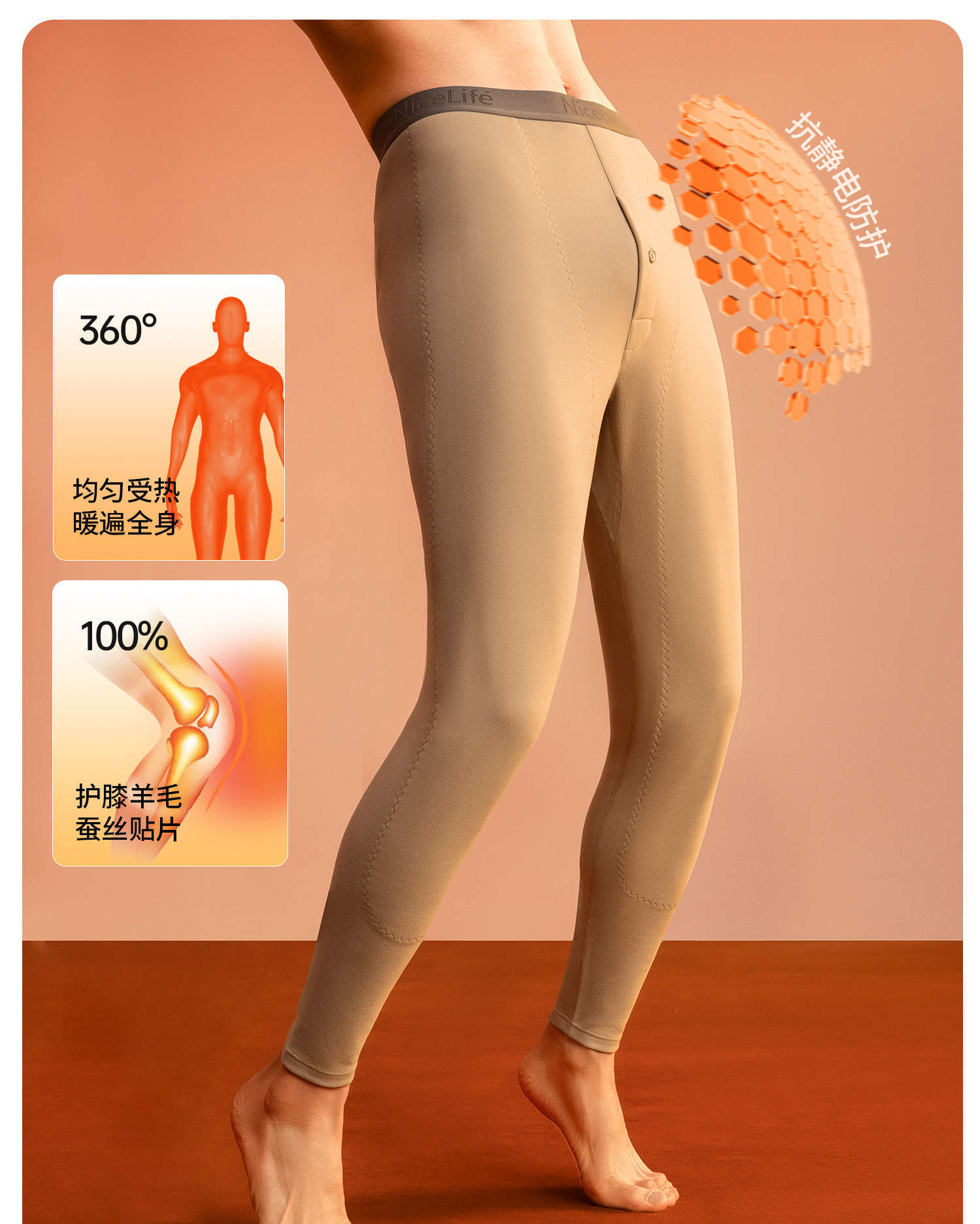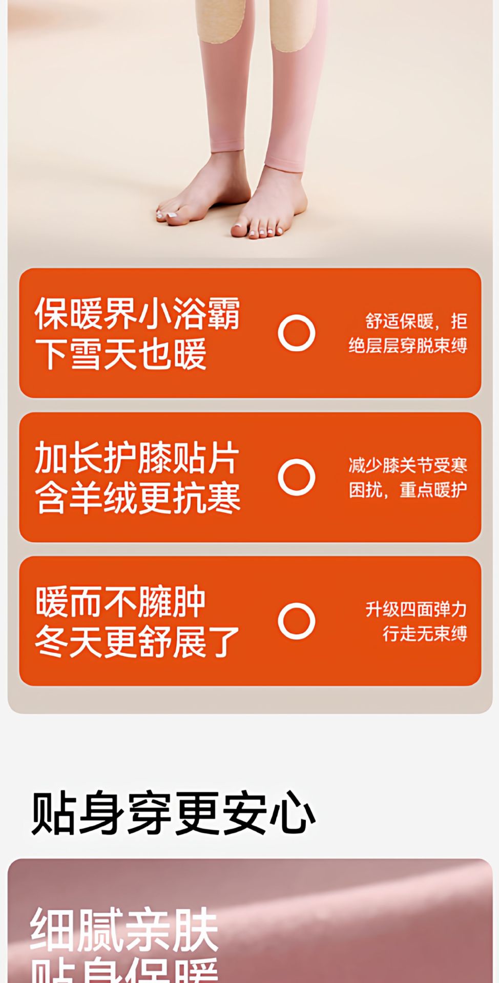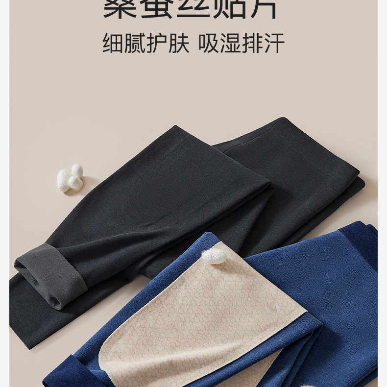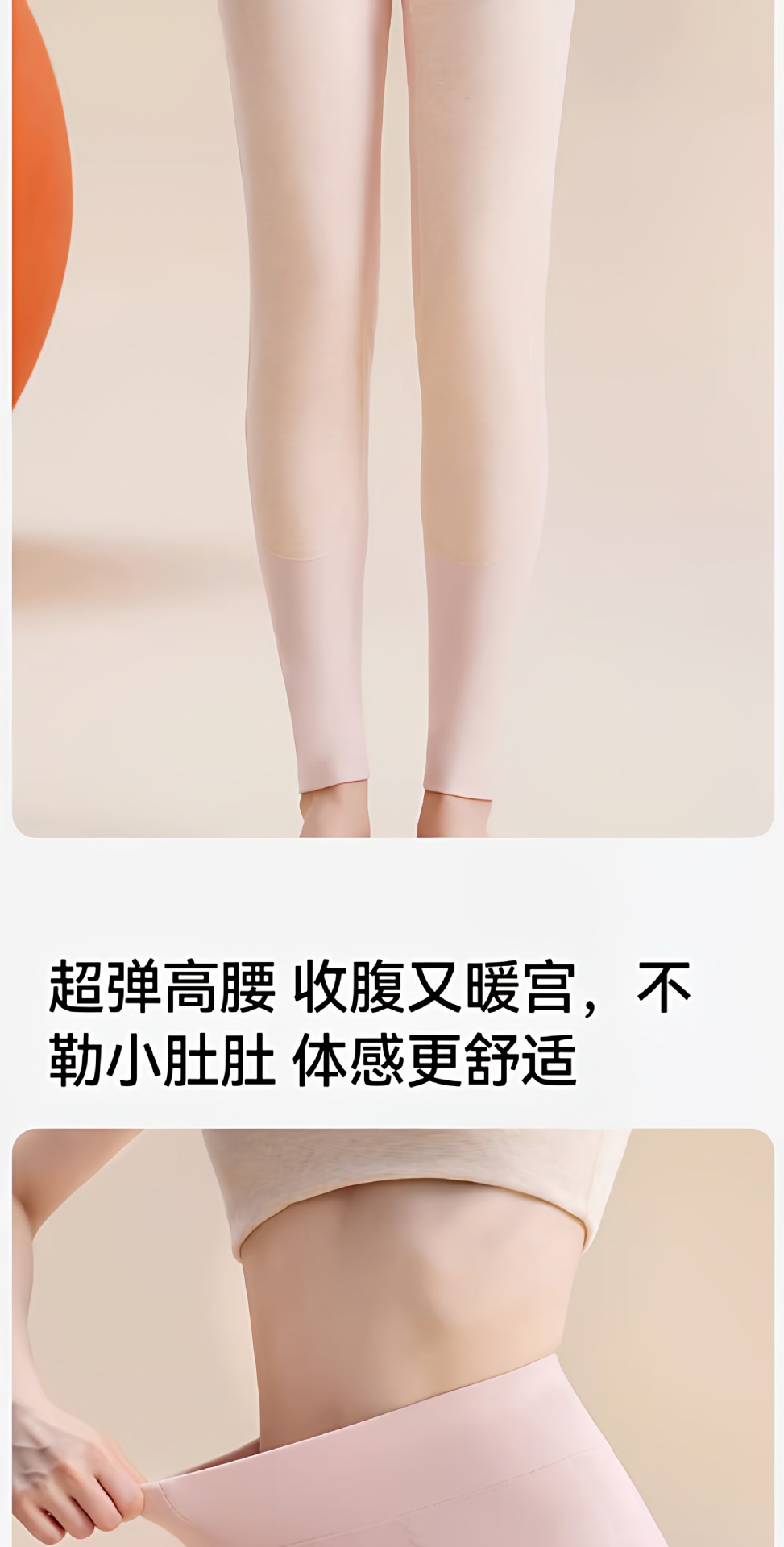 【冬装新品 】情侣款高腰羽绒蚕丝贴片护膝保暖裤女修身打底裤收腹提臀钢琴裤男士秋裤