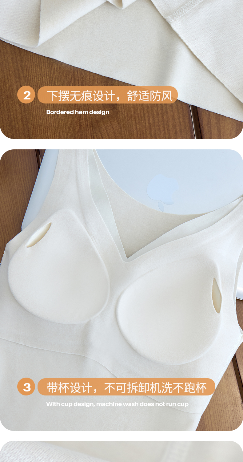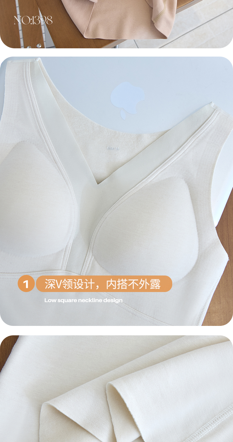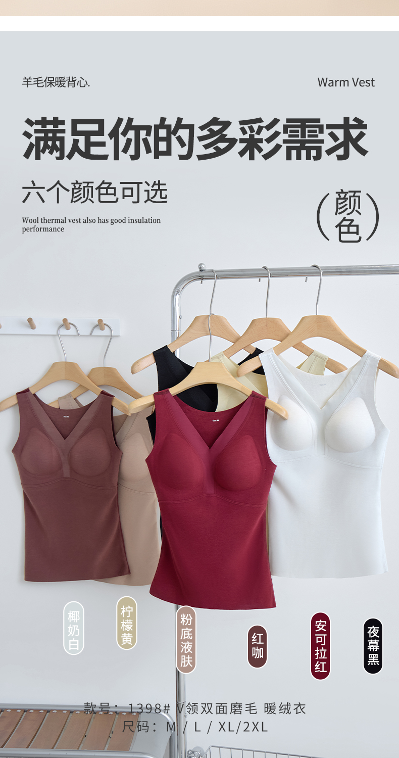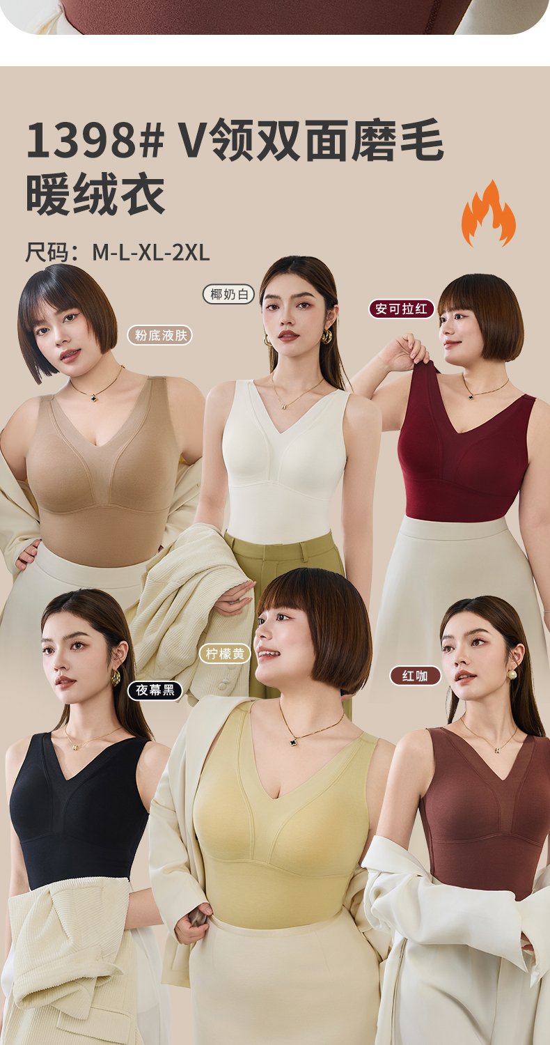 雅客优途25秋冬新款女V领双面磨毛保暖免穿文胸打底背心Y2511398