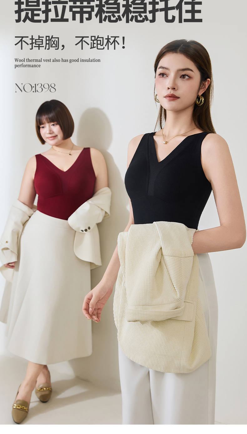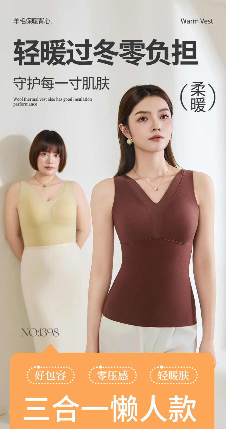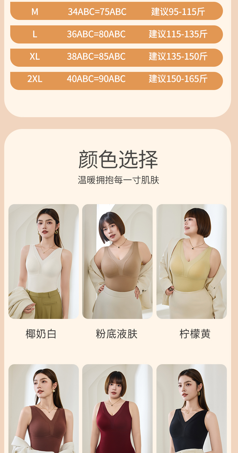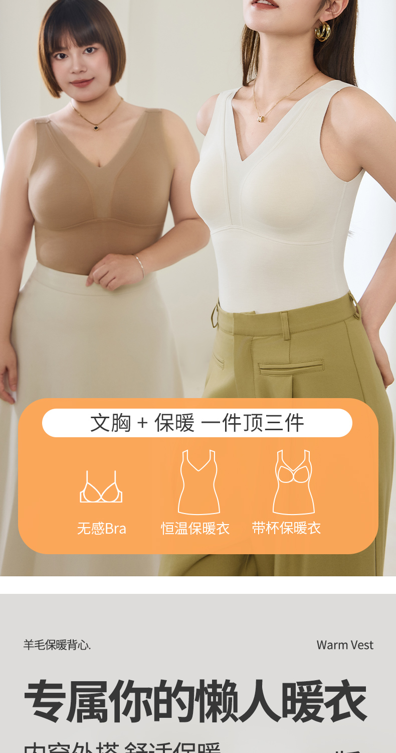雅客优途25秋冬新款女V领双面磨毛保暖免穿文胸打底背心Y2511398