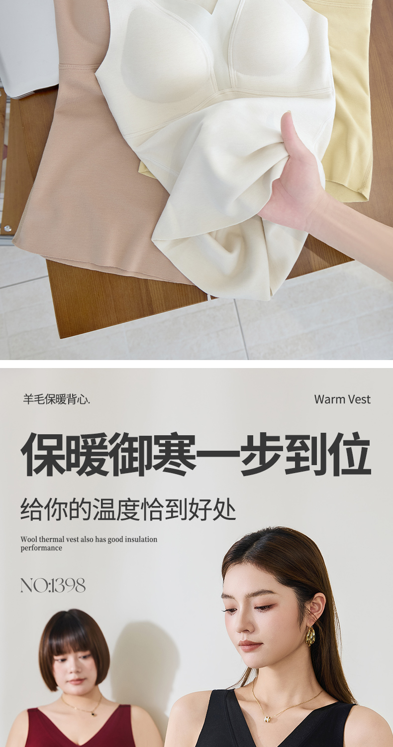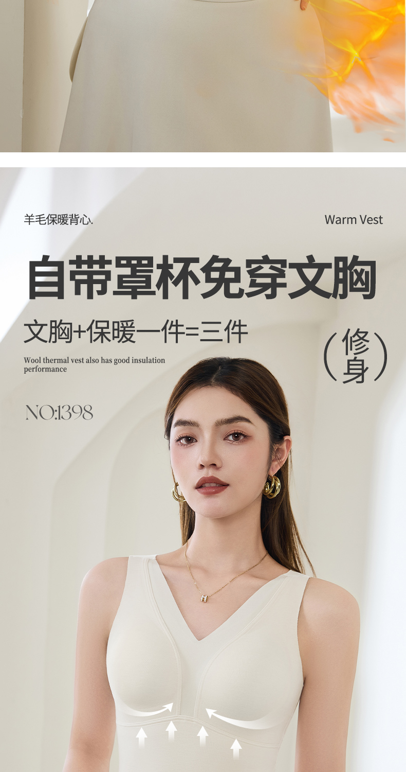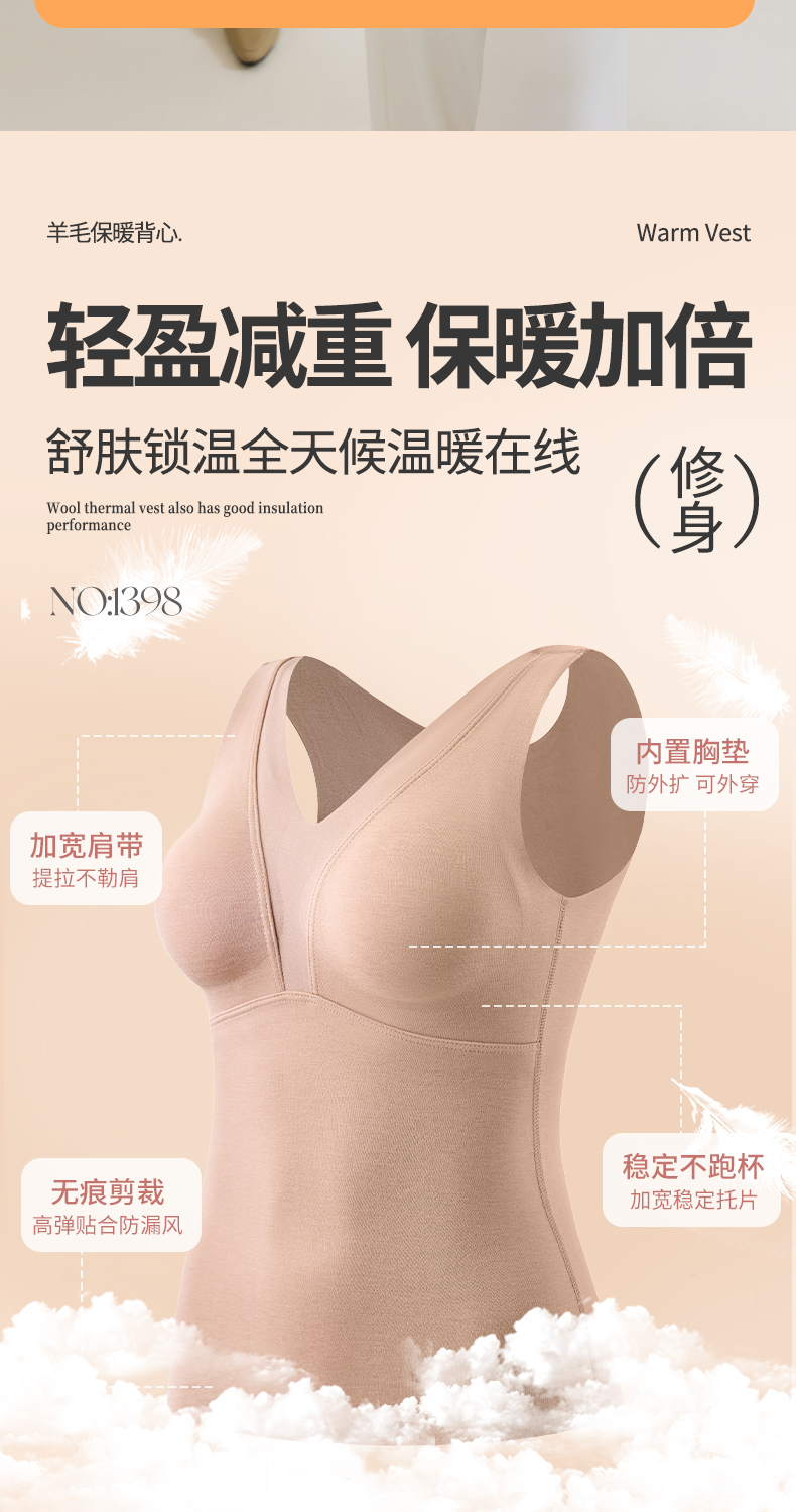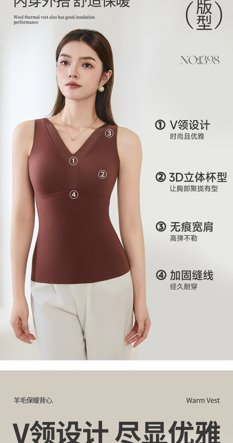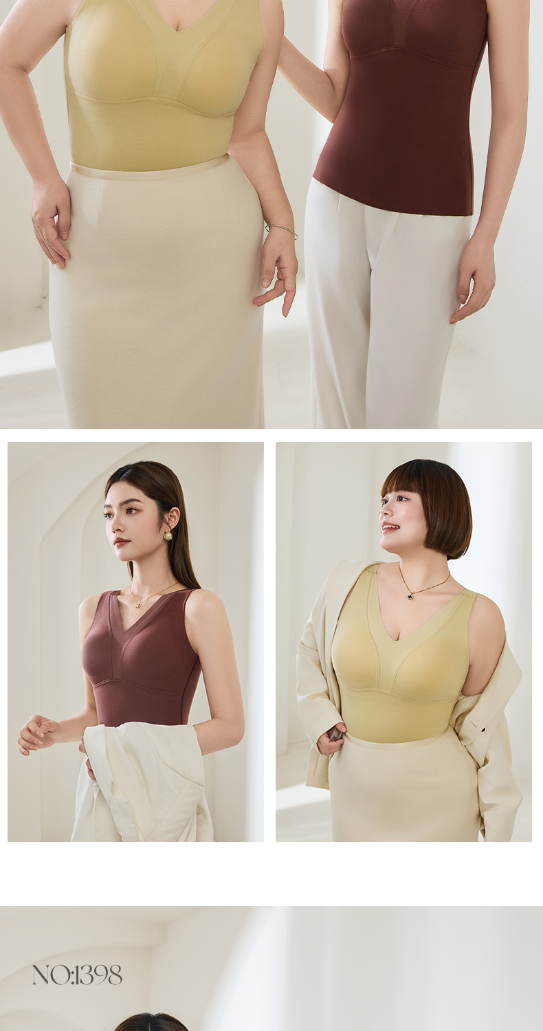 雅客优途25秋冬新款女V领双面磨毛保暖免穿文胸打底背心Y2511398