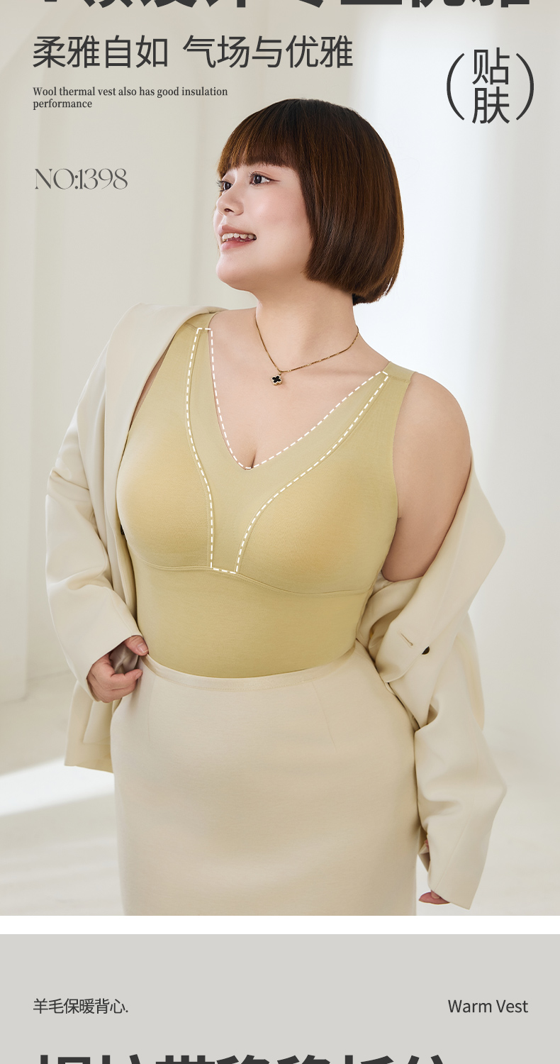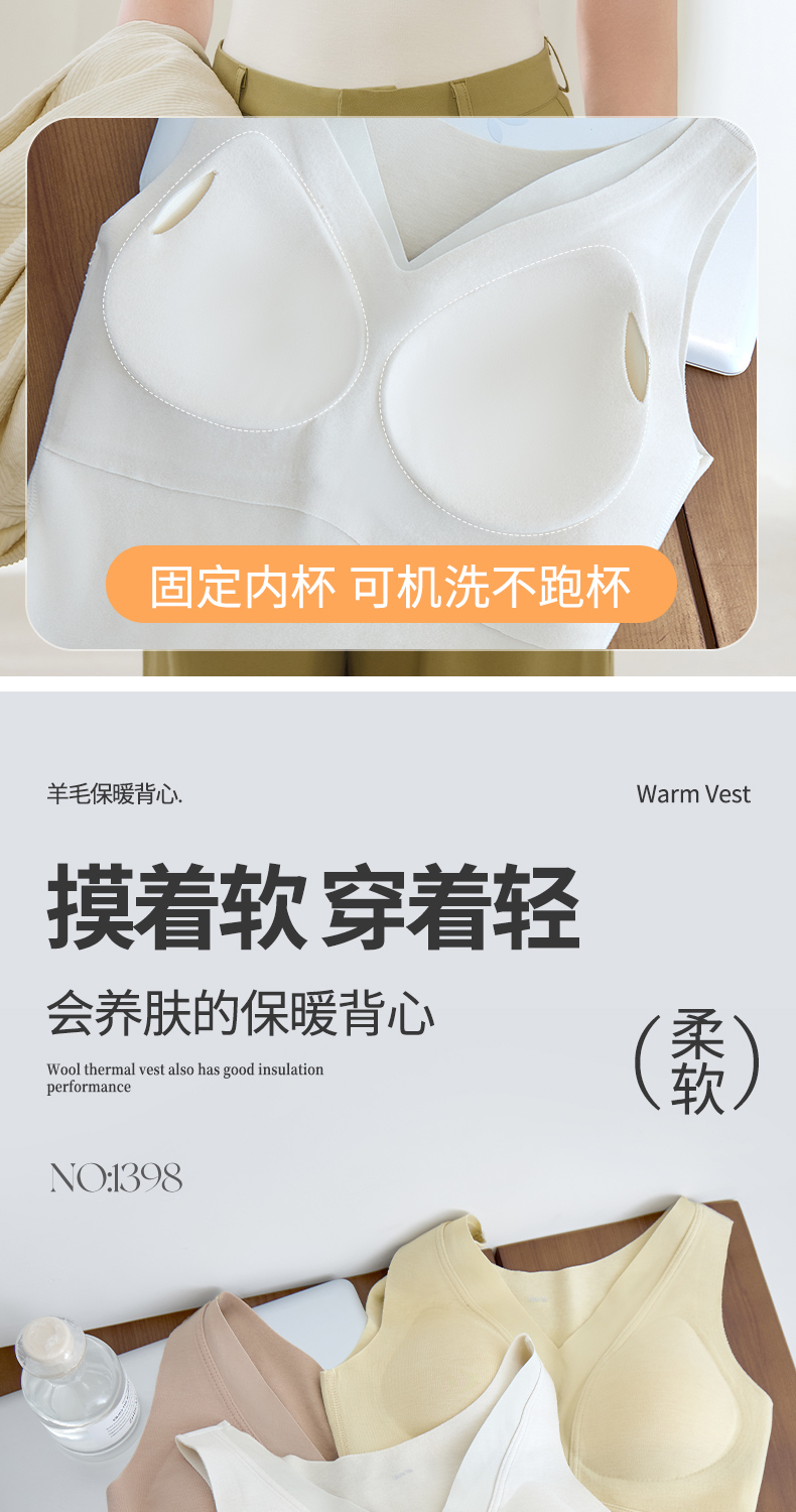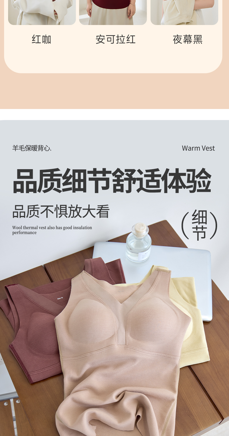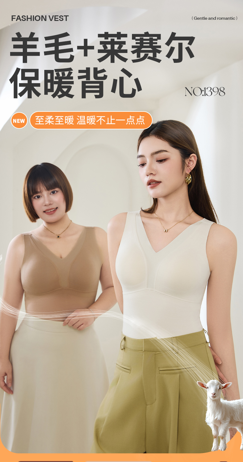 雅客优途25秋冬新款女V领双面磨毛保暖免穿文胸打底背心Y2511398