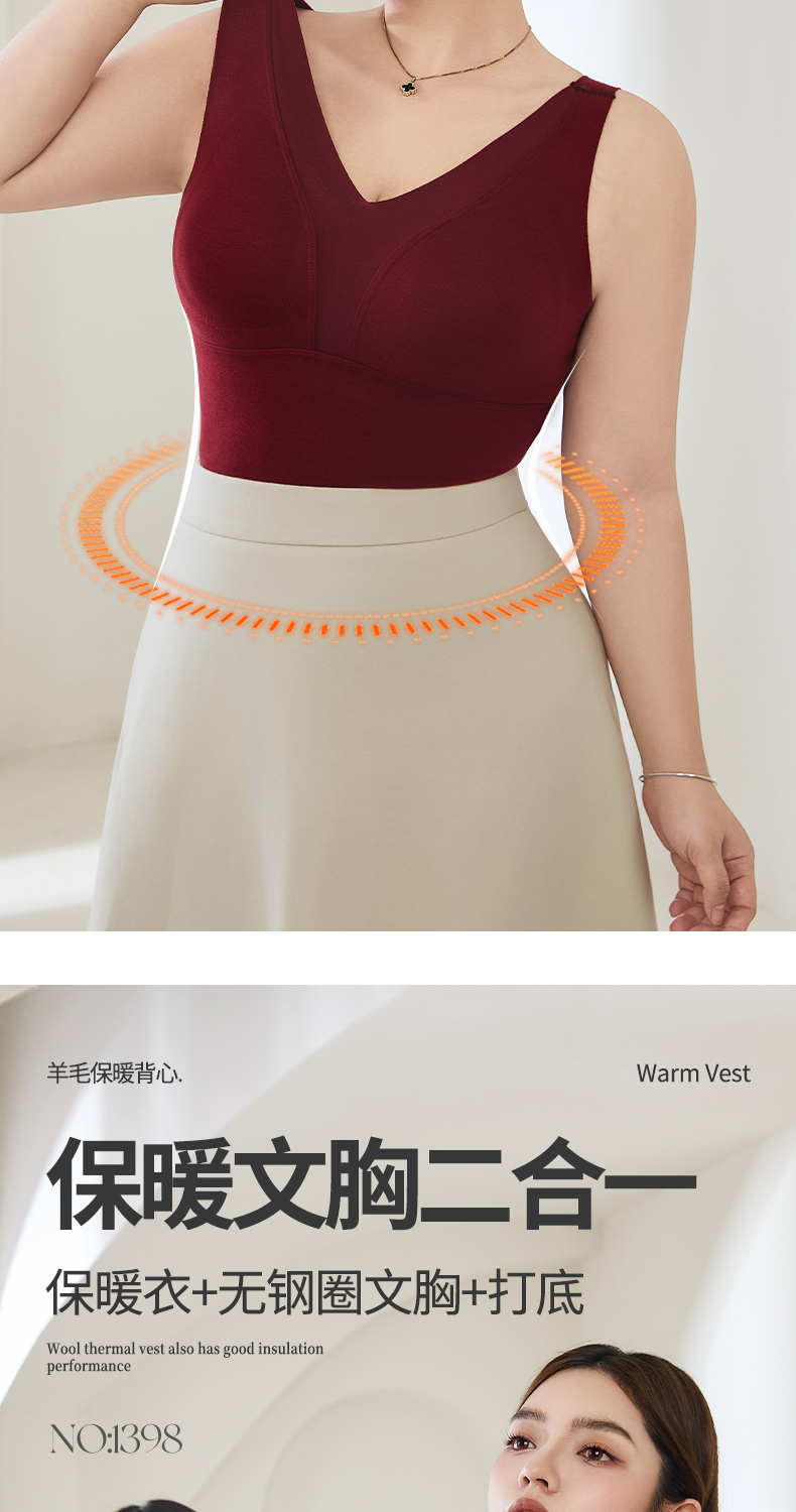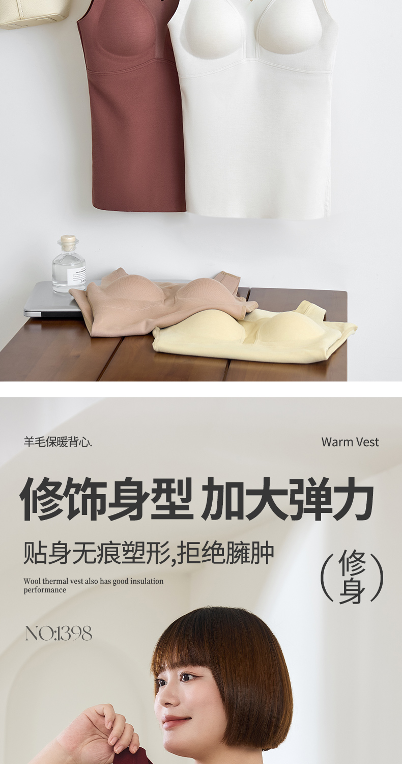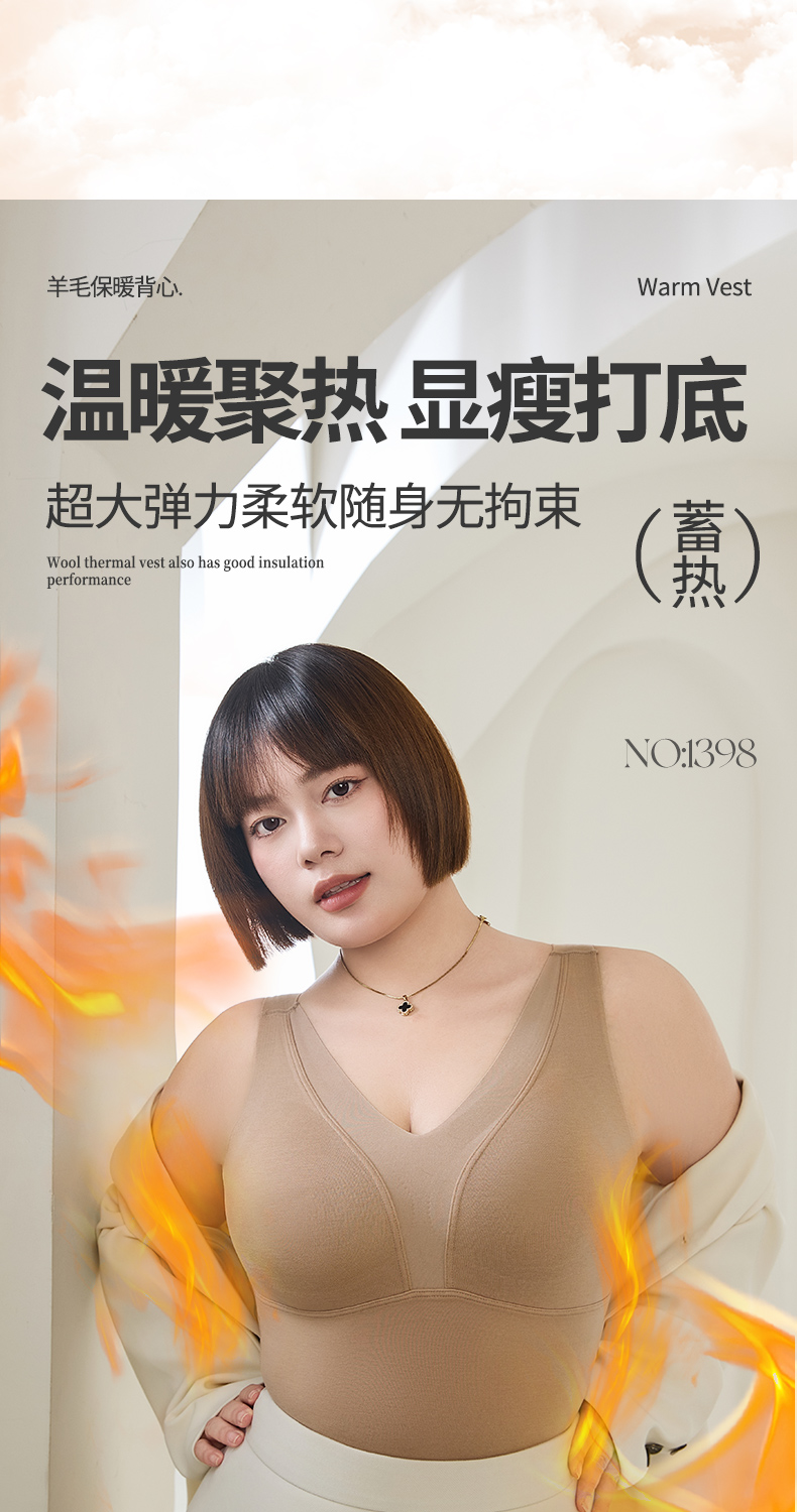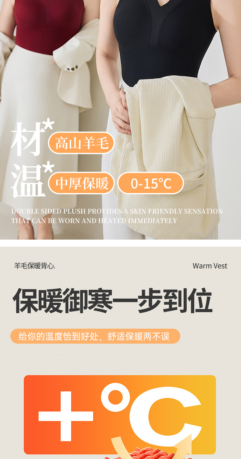 雅客优途25秋冬新款女V领双面磨毛保暖免穿文胸打底背心Y2511398