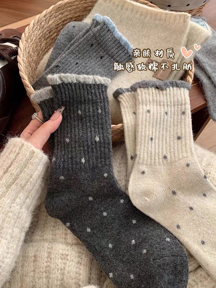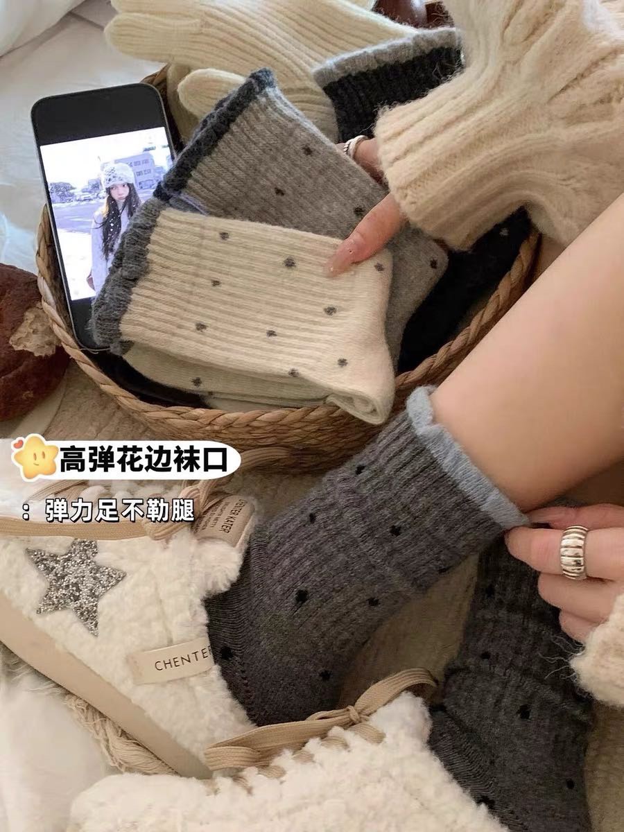 太绝了吧?真的无法拒绝!糕级感满满~秋冬穿好韩啊?奶油风波点花边袜】这波“花边袜”杀疯了!软乎乎花边氛围感谁能拒绝这种自带温柔滤镜的袜子啊!