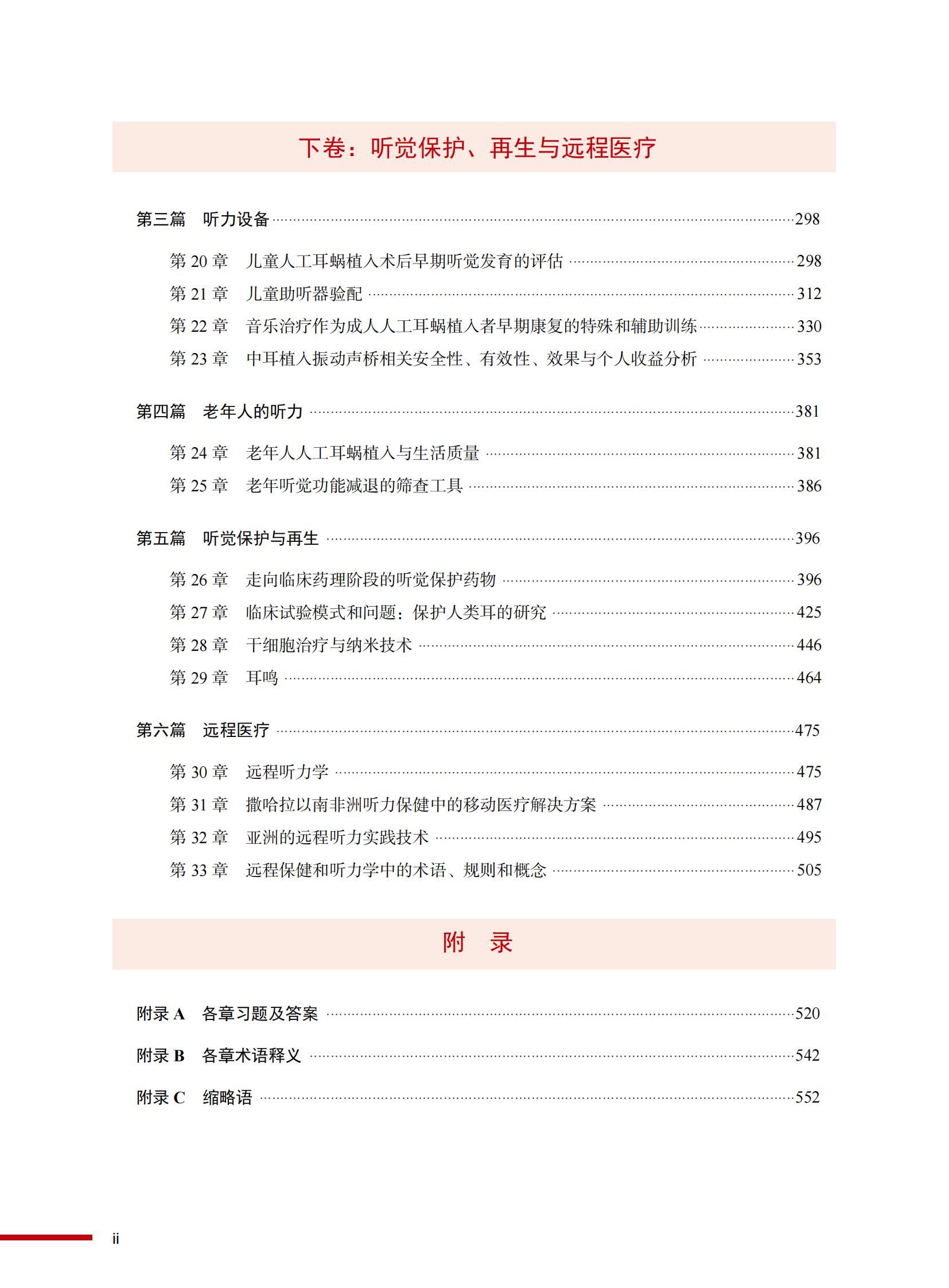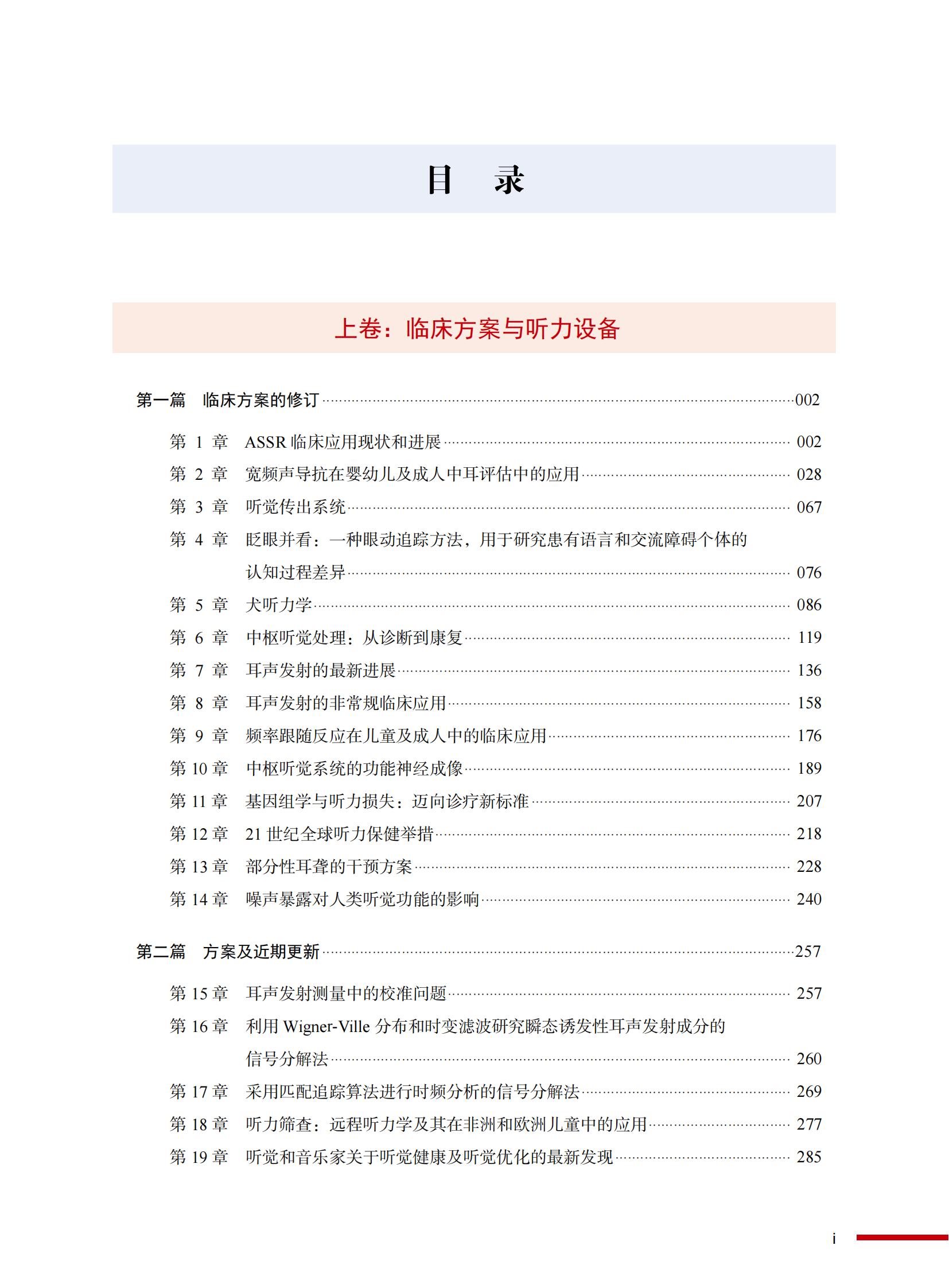 本书由众多业内知名专家共同编写,他们在听力学检测技术、听力与言语病理学、内耳生理学、遗传学、公共卫生学等方面均有较深造诣。全书分上、下两卷。上卷主要关注临床测试技术的进步和最新进展,介绍了近些年听觉传出通路、中枢听觉处理方面的研究进展,以及听觉稳态诱发电位、宽频声导抗、耳声发射、频率跟随反应等听力学测试方法的进展。此外,还对听觉研究动物模型及世界听力健康应对方案等内容进行了介绍。下卷则关注听觉保护、再生及远程医疗等方面的新进展,主要有听力设备、老年人的听力、听觉保护与再生等。其中,对人工耳蜗、助听器、振动声桥各类听觉干预装置的最新进展进行了细致介绍,对老年人听力损失的筛查和干预策略也进行了探讨。同时,还对听觉保护与再生中比较引人关注的干细胞治疗、耳鸣干预等技术进展,以及与听力学相关的远程医疗模式在世界范围内的现状进行了介绍。